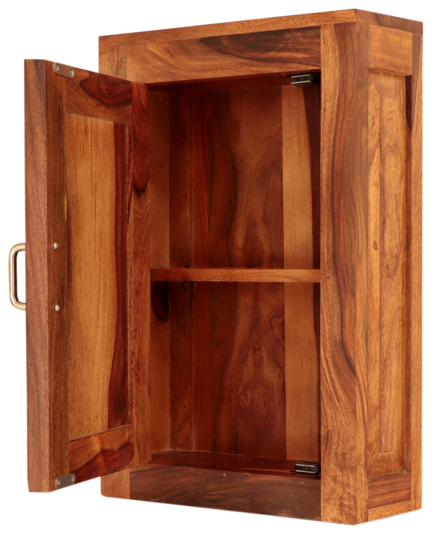 Tato závěsná skříňka nabízí praktické úložné řešení pro každou koupelnu, ať už moderní nebo tradiční. Díky pevným materiálům je velmi odolná a má dlouhou životnost, což z ní činí výhodnou investici do vašeho interiéru. Původem z Indie, každá skříňka nese otisk řemeslné zručnosti místních výrobců, což ji činí výjimečnou.