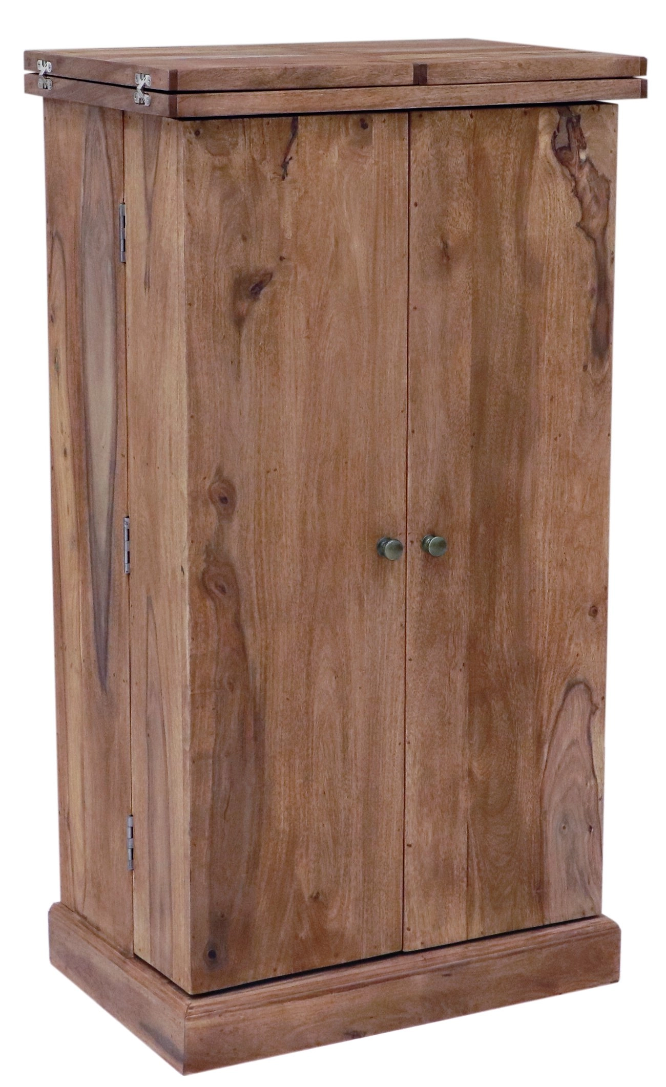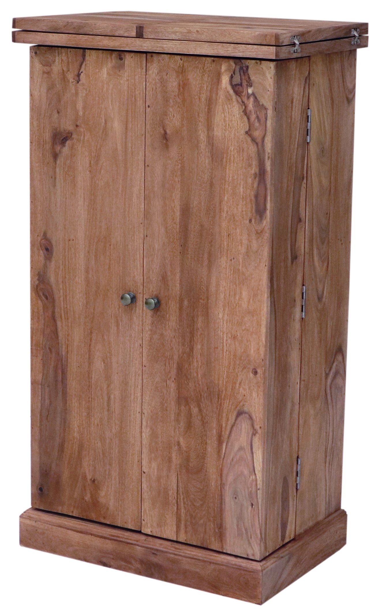 Objevte jedinečnou eleganci a exotický styl s domácím barem v obýváku o rozměrech 55x110x40 cm, vyrobeným z prémiového indického palisandru. Tento rozkládací barový pult nejenže dodá vašemu prostoru sofistikovanost, ale také nabízí praktický úložný prostor pro vaše oblíbené nápoje a skleničky. Díky pečlivému zpracování a vysoce kvalitnímu materiálu, který je znám svou odolností a nádhernou texturou, poskytne vaše barová skříň dlouhotrvající krásu do jakéhokoliv obývacího pokoje.