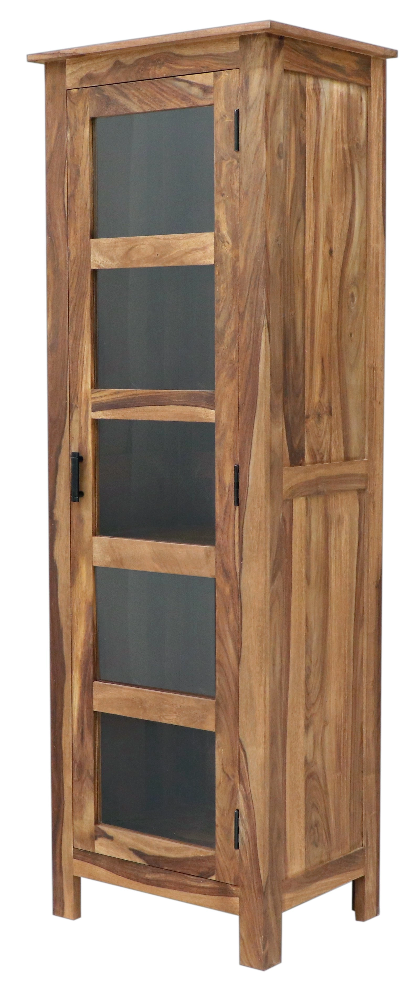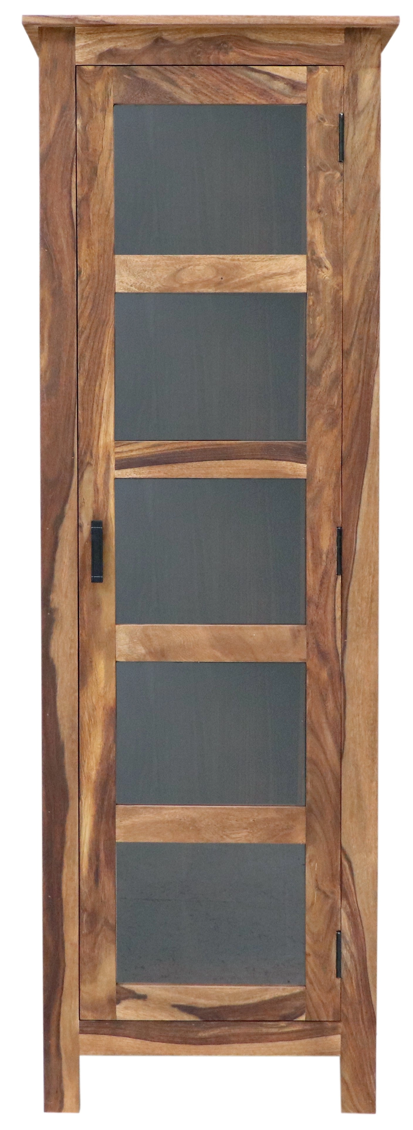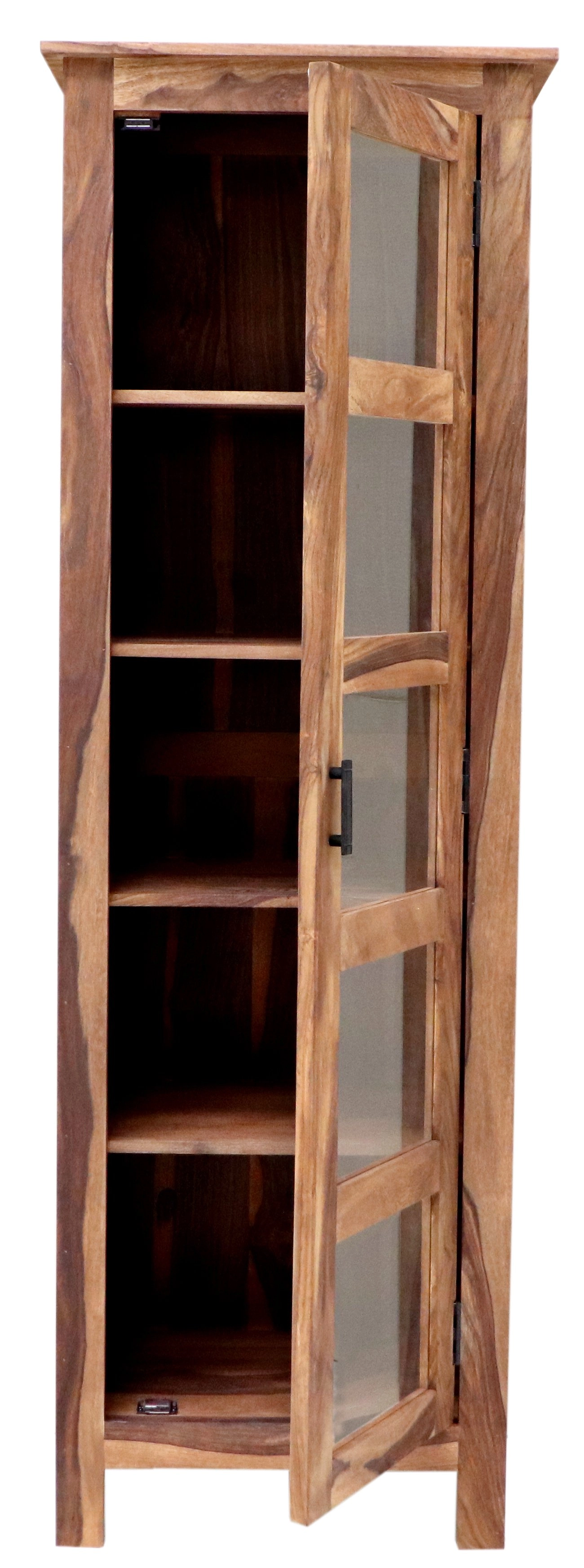 Vysoká vitrína z masivu palisandr 60x180x45 je dokonalým příkladem spojení elegance a funkčnosti ve vašem obyvacím pokoji. Když se rozhodnete pro nábytek z masivu, zvolíte kousek, který nejenže skvěle vypadá, ale také vydrží po generace. Tato vitrína, vyrobená z vysoce kvalitního palisandru, přináší do vašeho domova nádech exotiky přímo z Indie. Se svojí šířkou 60 cm, hloubkou 45 cm a výškou 180 cm, nabízí dostatek prostoru pro vystavení vašich cenných předmětů, knih či dekorací. Skleněné dvířka s kovovým úchytem elegantně odhalují vnitřní prostorné police, kde vaše sbírky vyniknou v plné kráse.
