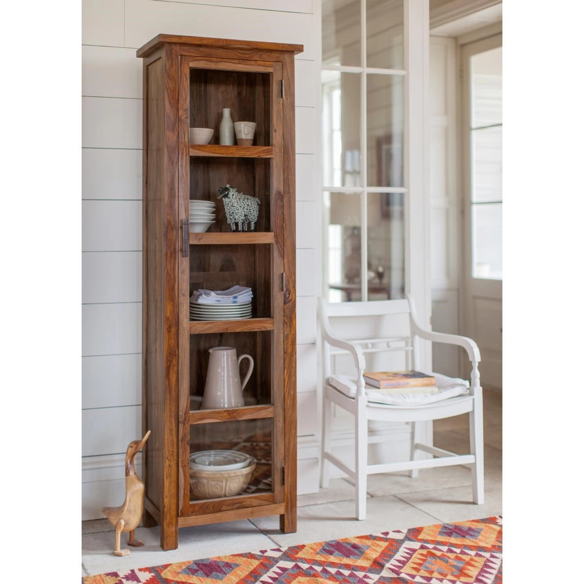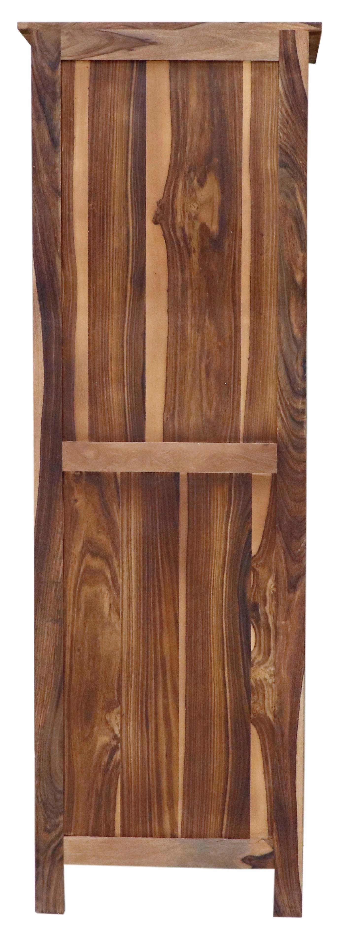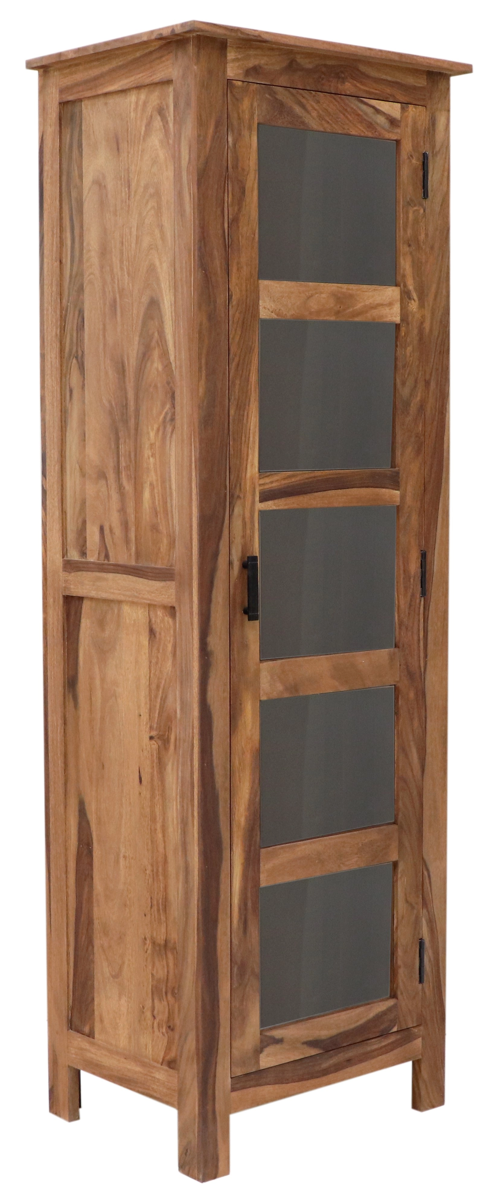 Vysoká vitrína z masivu palisandr 60x180x45 je dokonalým příkladem spojení elegance a funkčnosti ve vašem obyvacím pokoji. Když se rozhodnete pro nábytek z masivu, zvolíte kousek, který nejenže skvěle vypadá, ale také vydrží po generace. Tato vitrína, vyrobená z vysoce kvalitního palisandru, přináší do vašeho domova nádech exotiky přímo z Indie. Se svojí šířkou 60 cm, hloubkou 45 cm a výškou 180 cm, nabízí dostatek prostoru pro vystavení vašich cenných předmětů, knih či dekorací. Skleněné dvířka s kovovým úchytem elegantně odhalují vnitřní prostorné police, kde vaše sbírky vyniknou v plné kráse.