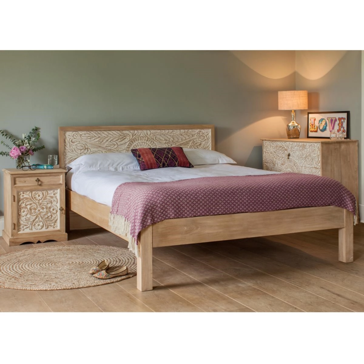 Součástí postele je pevný lamelový rošt, který získáte ZDARMA, což zajišťuje správnou podporu matrace a vašeho těla během spánku. Postel se dodává bez matrace. K dřevěné posteli z manga si lidé často pořizují další dřevěný nábytek, který doplňuje celkový vzhled ložnice, jako jsou noční stolky, komody, šatní skříně a zrcadla v dřevěném rámu.