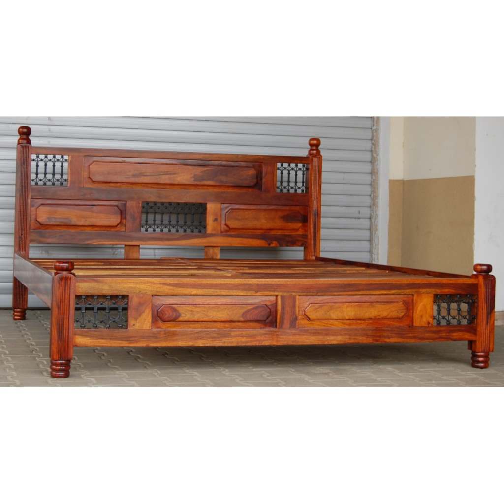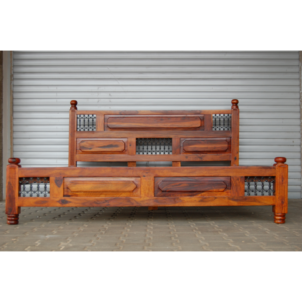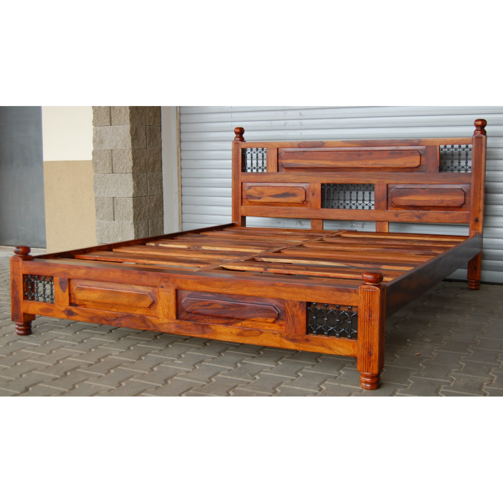 Objevte kouzlo a eleganci exotického dřevěného nábytku z masivu s naší dřevěnou postelí 200x200 z masivu palisandr. Tato dřevěná postel 200x200 je vyrobena z vysoce kvalitního indického palisandru, jenž je známý svou pevností a jedinečnou kresbou dřeva, která dodává každému kusu nábytku unikátní vzhled. S rozměry 206 cm na šířku, 238 cm na délku a s výškou 100/40 cm je tato postel nejen majestátní, ale také komfortní. Vysoké čelo a ozdobné sloupy jsou hlavními prvky, které dodávají posteli z masivu její osobitý charakter a luxusní vzhled. Elegantní zdobné kování podtrhuje unikátní styl a řemeslné zpracování. Součástí postele je laťový rošt, který je poskytován zdarma, čímž zajišťuje maximální pohodlí a podporu vaší matraci o rozměru 200x200 cm. Tato postel z palisandru je skvělou volbou pro ty, kdo hledají kombinaci kvality, komfortu a tradičního designu s dotekem exotiky. Vzhledem k původu a použití masivního dřeva je každá postel jedinečná a přináší do vašeho domova teplou a příjemnou atmosféru.