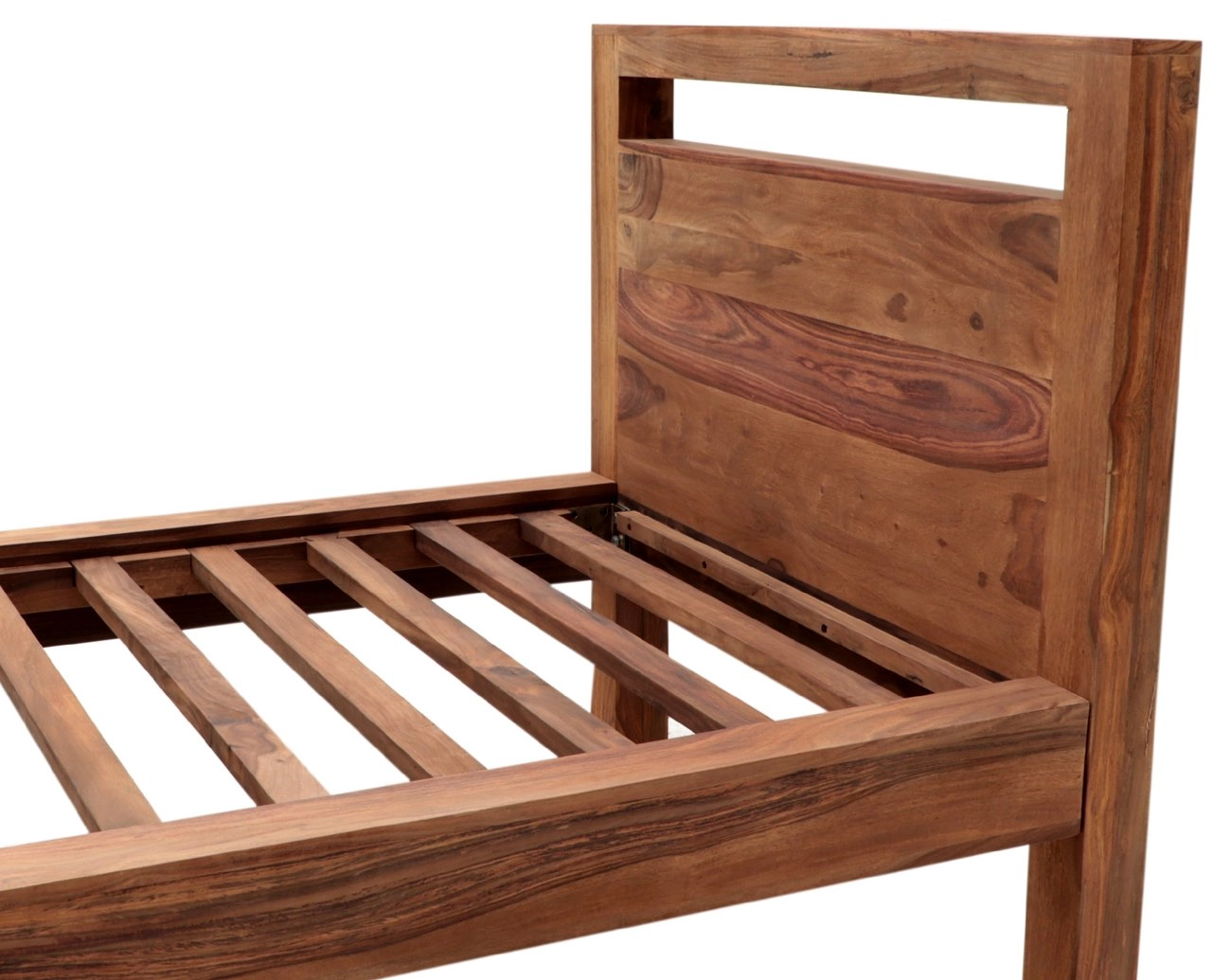 Představujeme vám elegantní a trvanlivou Dřevěnou postel 90x200 s roštem, která vás okouzlí svým přírodním vzhledem a rustikálním stylem. Tato postel je vyrobena z kvalitního indického palisandru, který je známý svou pevností a odolností. Díky těmto vlastnostem zaručuje postel dlouhou životnost a estetický vzhled, který snadno zapadá do různých interiérů. Palisandr dodává posteli přirozenou eleganci a zcela jedinečný vzhled, který je zvýrazněn texturou dřeva.