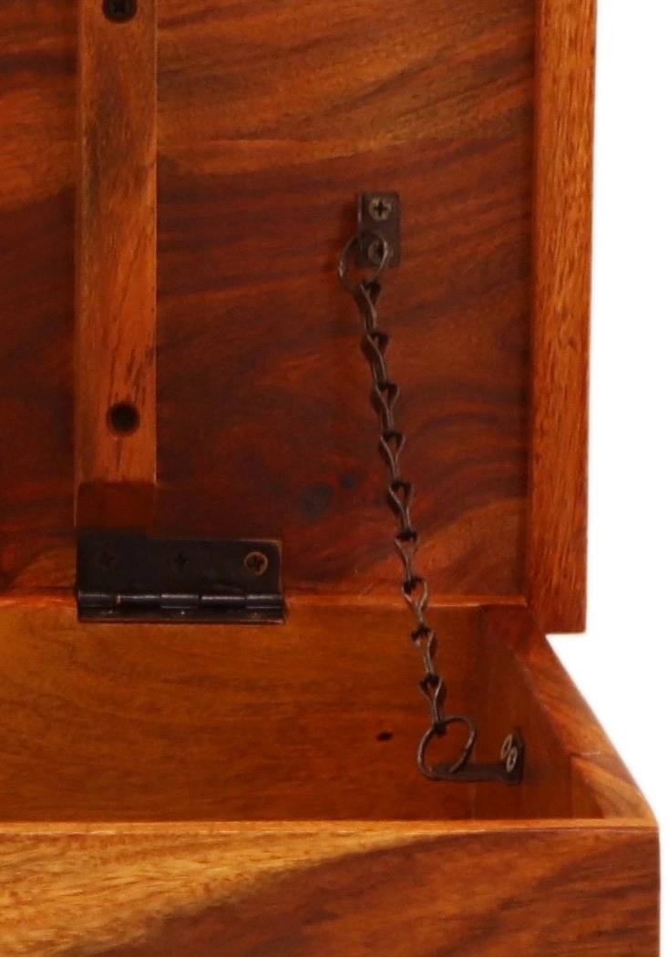 Estetiku této truhlice podtrhuje exotický původ z Indie, kde je každý kus pečlivě ručně zpracován, čímž je zaručen její unikátní charakter. Kolekce JALI, do které tento kousek náleží, je známá svým stylovým a tradičním zpracováním, které se harmonicky snoubí s moderními designovými prvky. Dřevěná truhlice z masivu z této kolekce je ideální pro milovníky přírodních materiálů a autentického řemeslného umění.