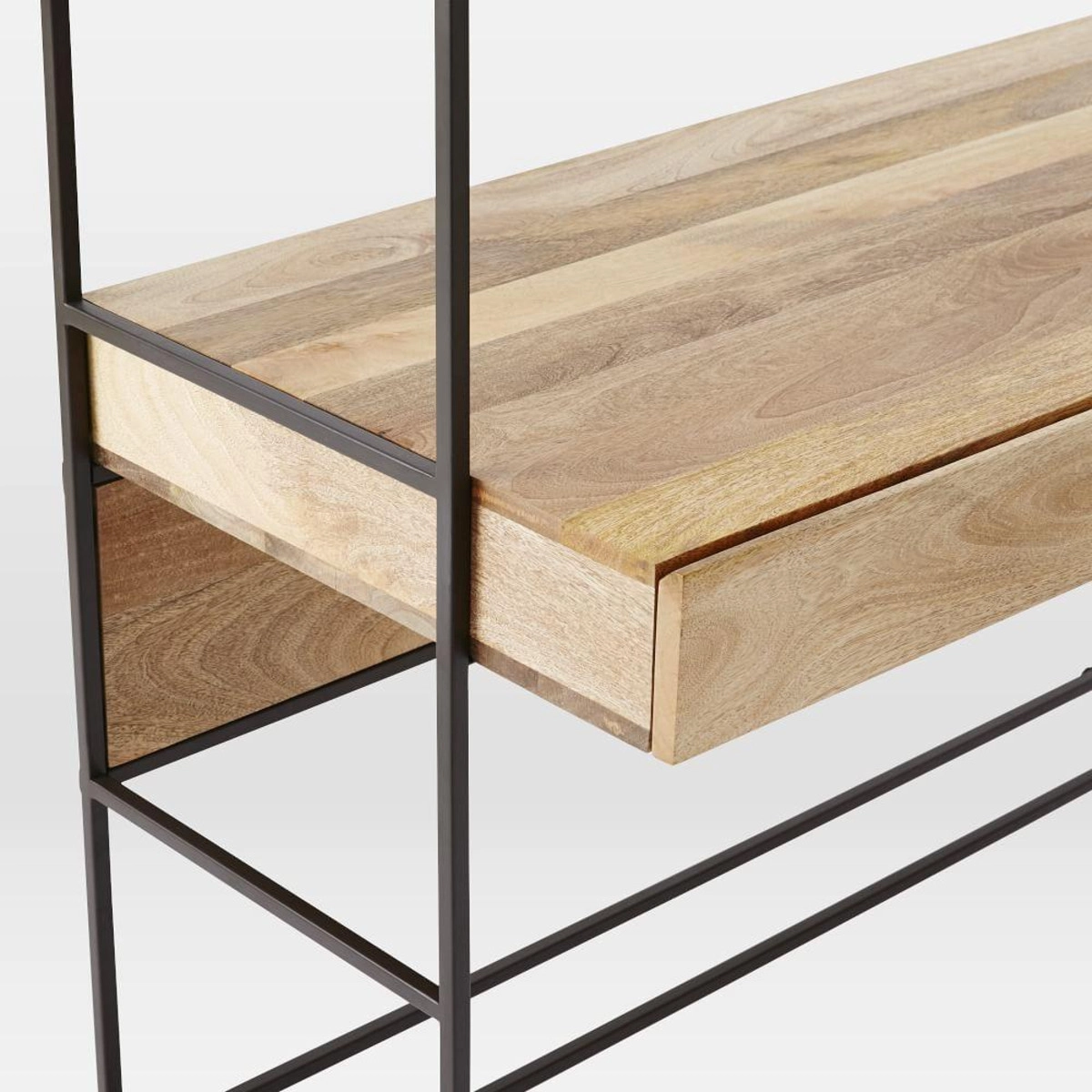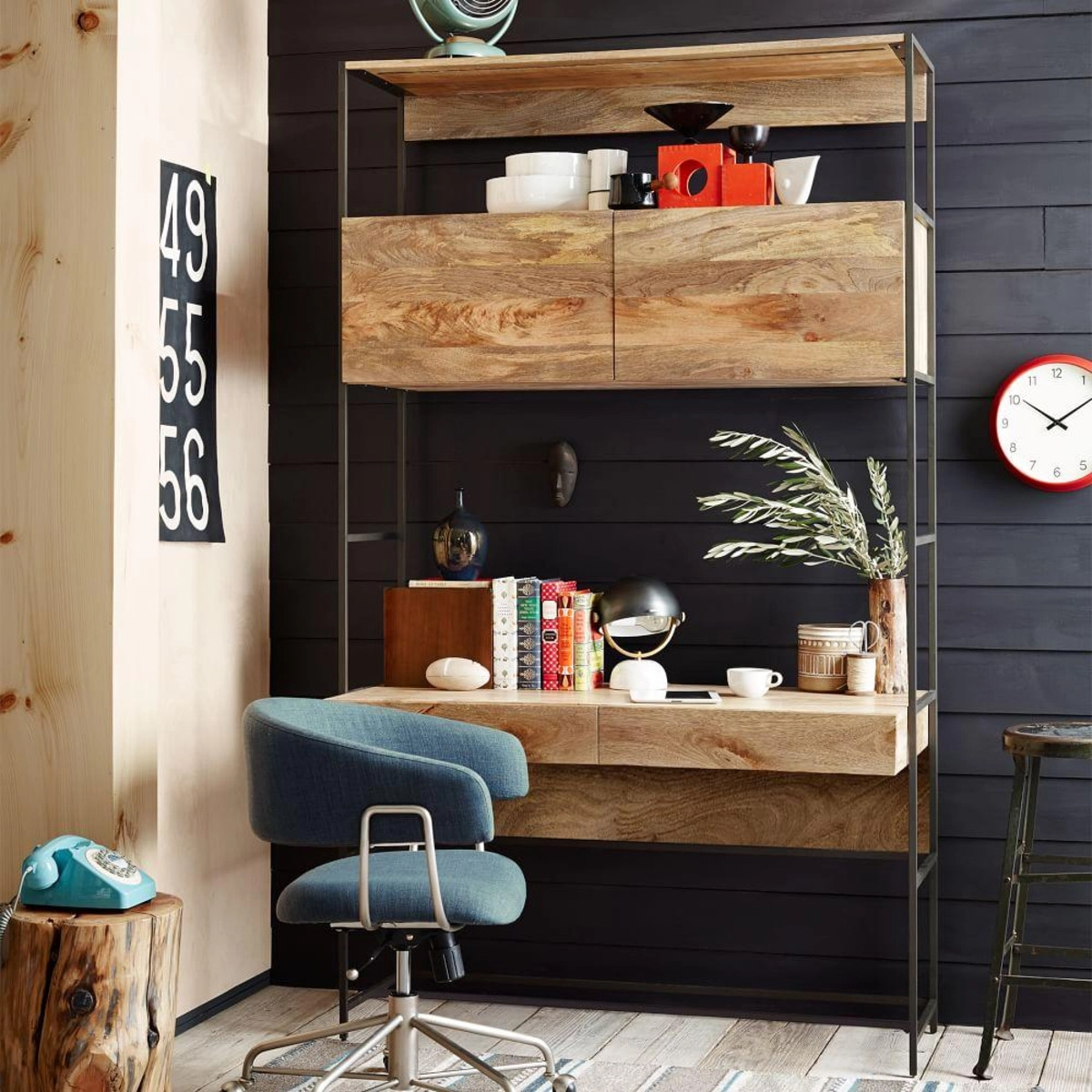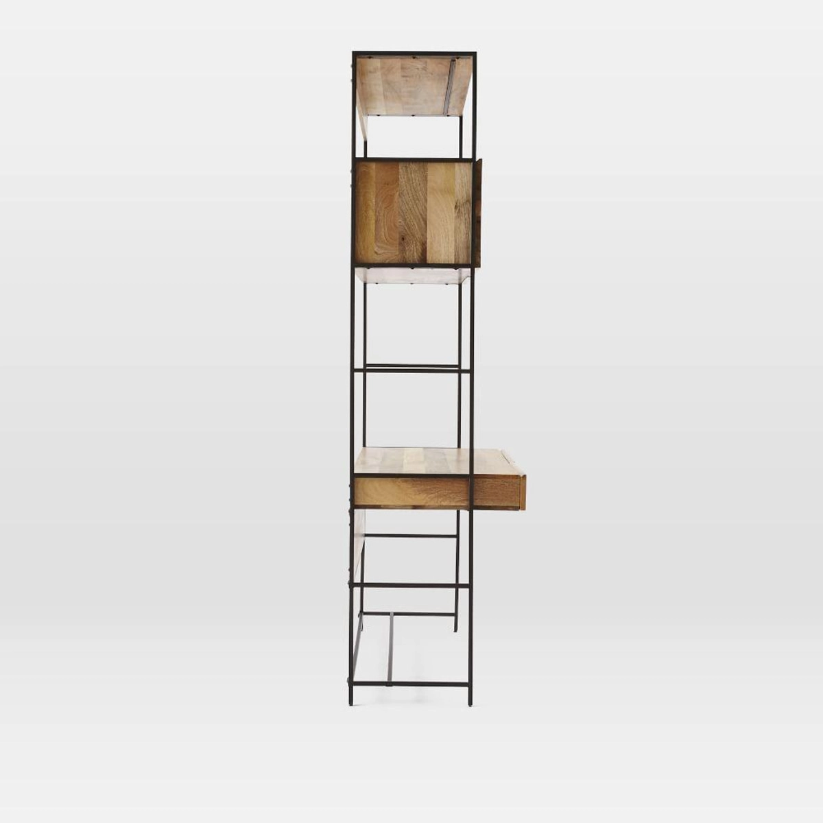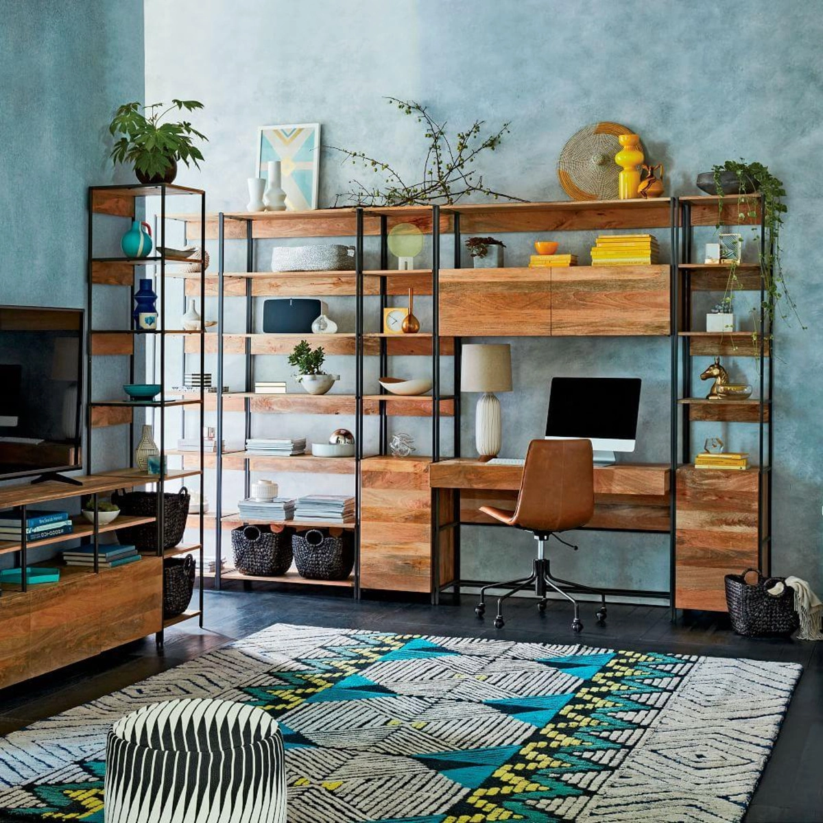 Tento dřevěný stůl s kovovou podnoží je ideální pro prostory, kde chcete vytvořit úchvatný dojem s nádechem exotiky a elegance. Díky své výšce 216 cm a promyšlené konstrukci nabízí praktické úložné možnosti, včetně psacího stolu se dvěma zásuvkami a úložného prostoru v horní části, který se skládá ze skříňky a police. Dokonalost a funkčnost tohoto kusu nábytku z něj činí nepřehlédnutelný prvek každé domácnosti.
