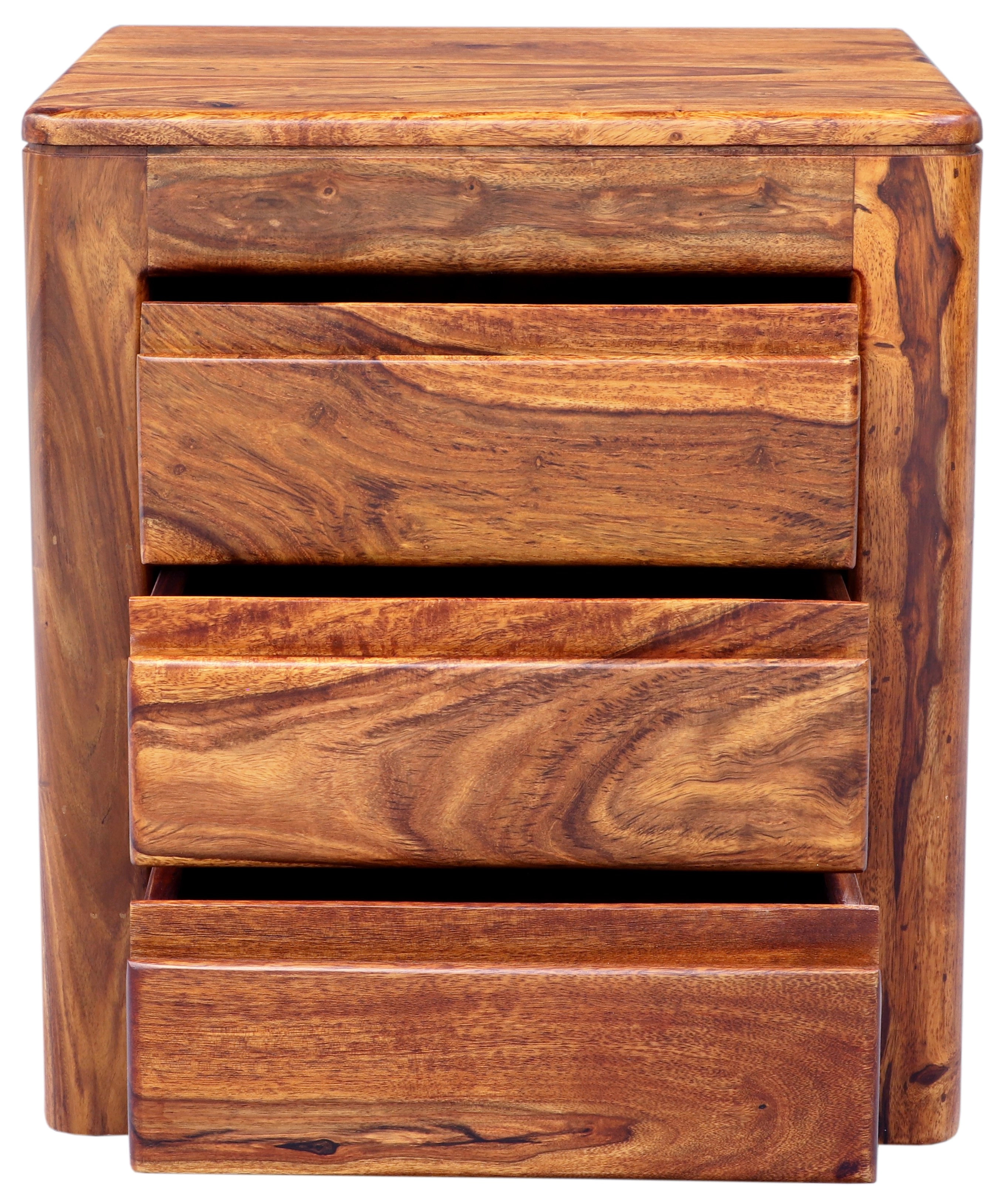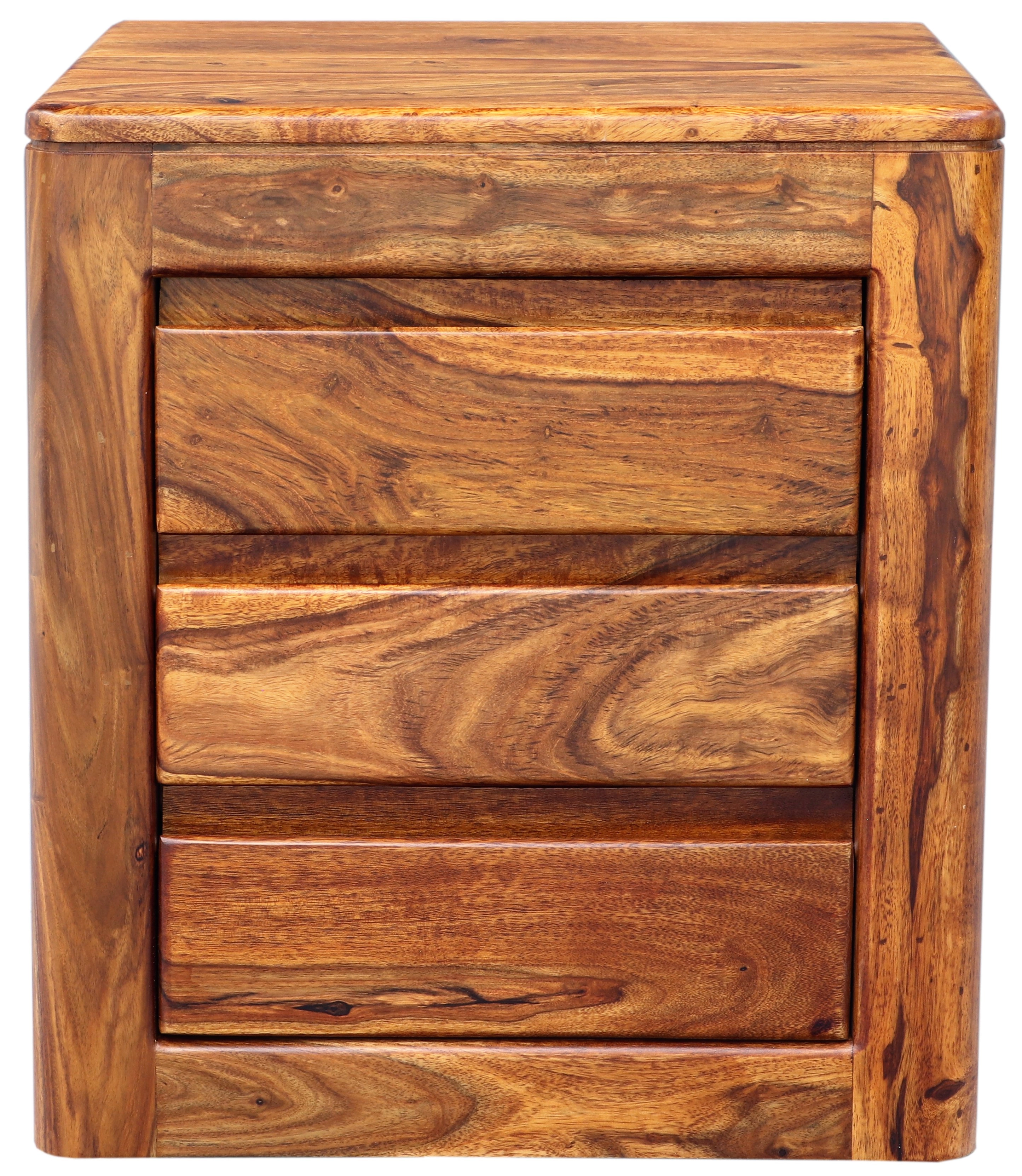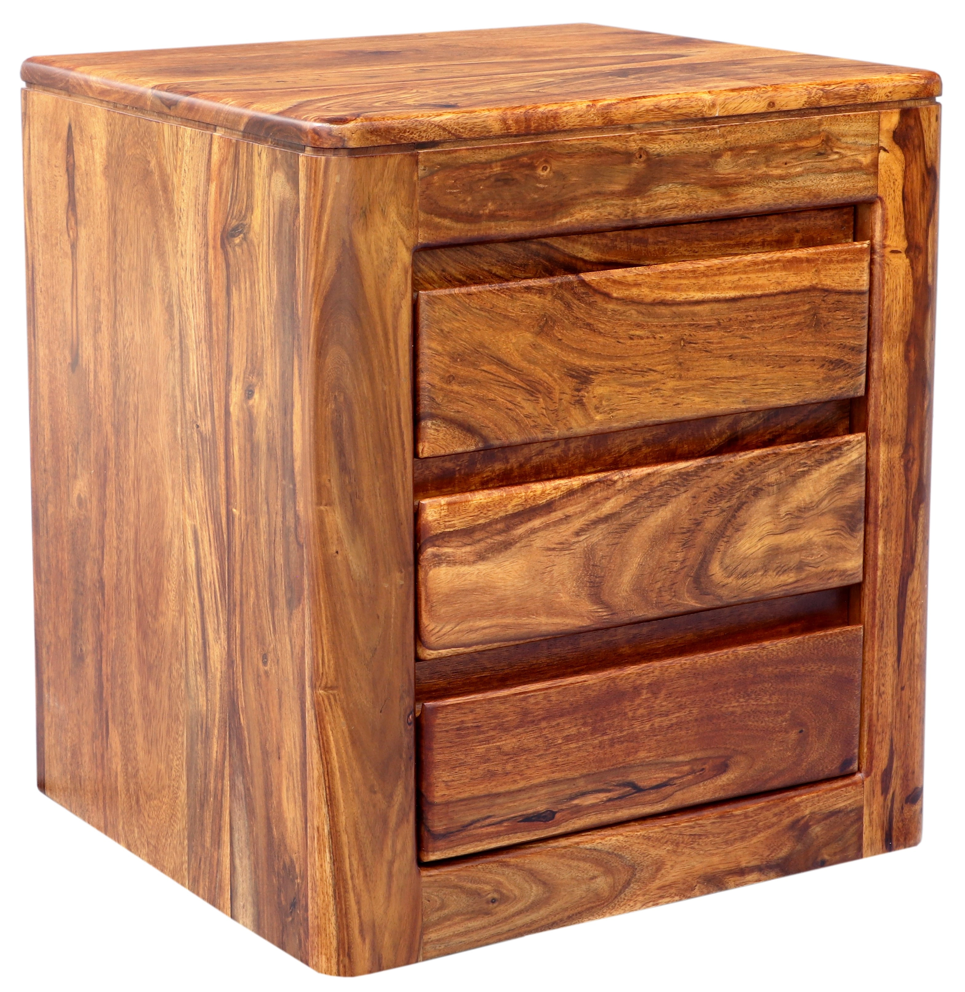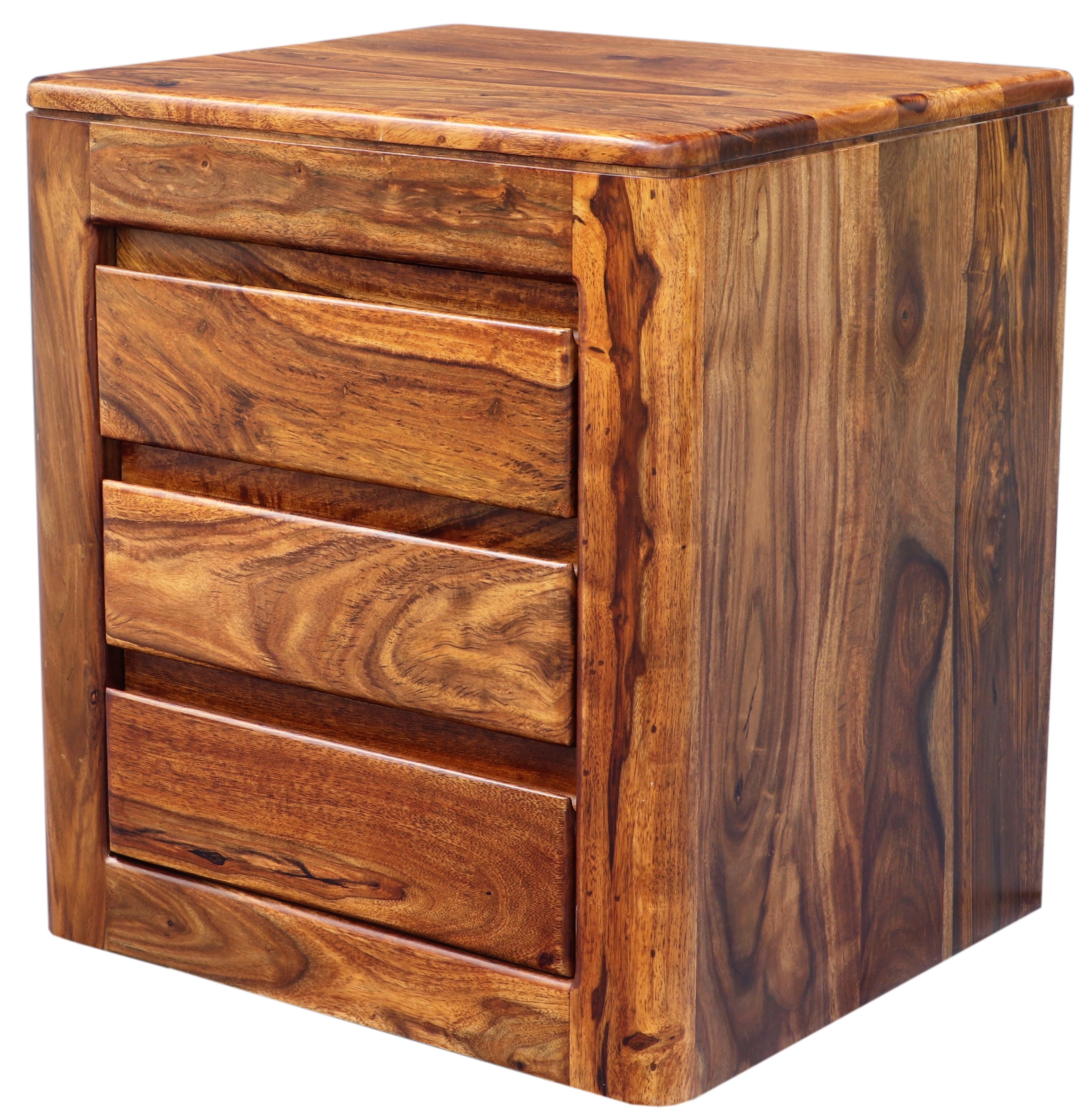Jedinečný dřevěný noční stolek z masivu palisandru přinese do vašeho interiéru kousek exotiky a elegance. Vyrobený z kvalitního indického palisandru, tento masivní nábytek je známý svou odolností, přirozenou krásou a působivým barevným odstínem. Rozměry 45 cm na šířku, 40 cm na hloubku a 50 cm na výšku poskytují ideální proporce pro umístění do vaší ložnice. Dřevěný noční stolek je vybaven třemi prostornými zásuvkami, které nabízejí dostatek úložného prostoru pro všechny vaše noční potřeby, knihy nebo menší osobní předměty. Tato kombinace funkčnosti a estetického provedení dodá vaší ložnici jedinečný styl. Původně z Indie, tento kousek vás upoutá jedinečnou kresbou dřeva a teplými tóny, které snadno zapadnou do jakéhokoli interiéru.
