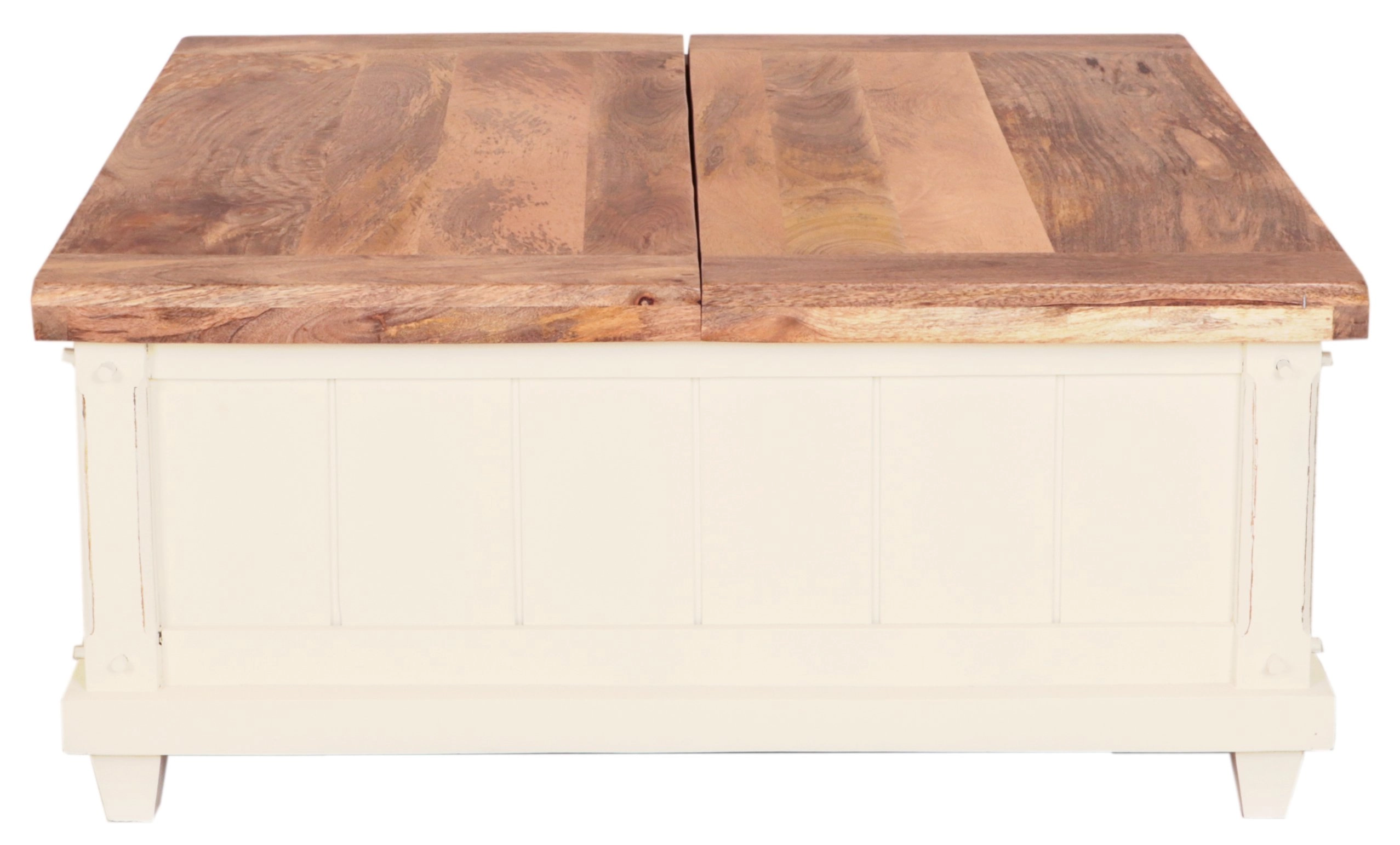 Jedním z klíčových rysů tohoto stolku je velký úložný prostor, který se hladce otevírá ve dvou částech na vrchní straně stolu. Tento prostor je ideální pro uschování časopisů, knih či jiných potřebností, které chcete mít po ruce, ale zároveň mimo dohled. Navíc, jeho funkčnost nekončí jen u stolku. Může být využit i jako truhlice, což z něj činí velmi univerzální kus nábytku.