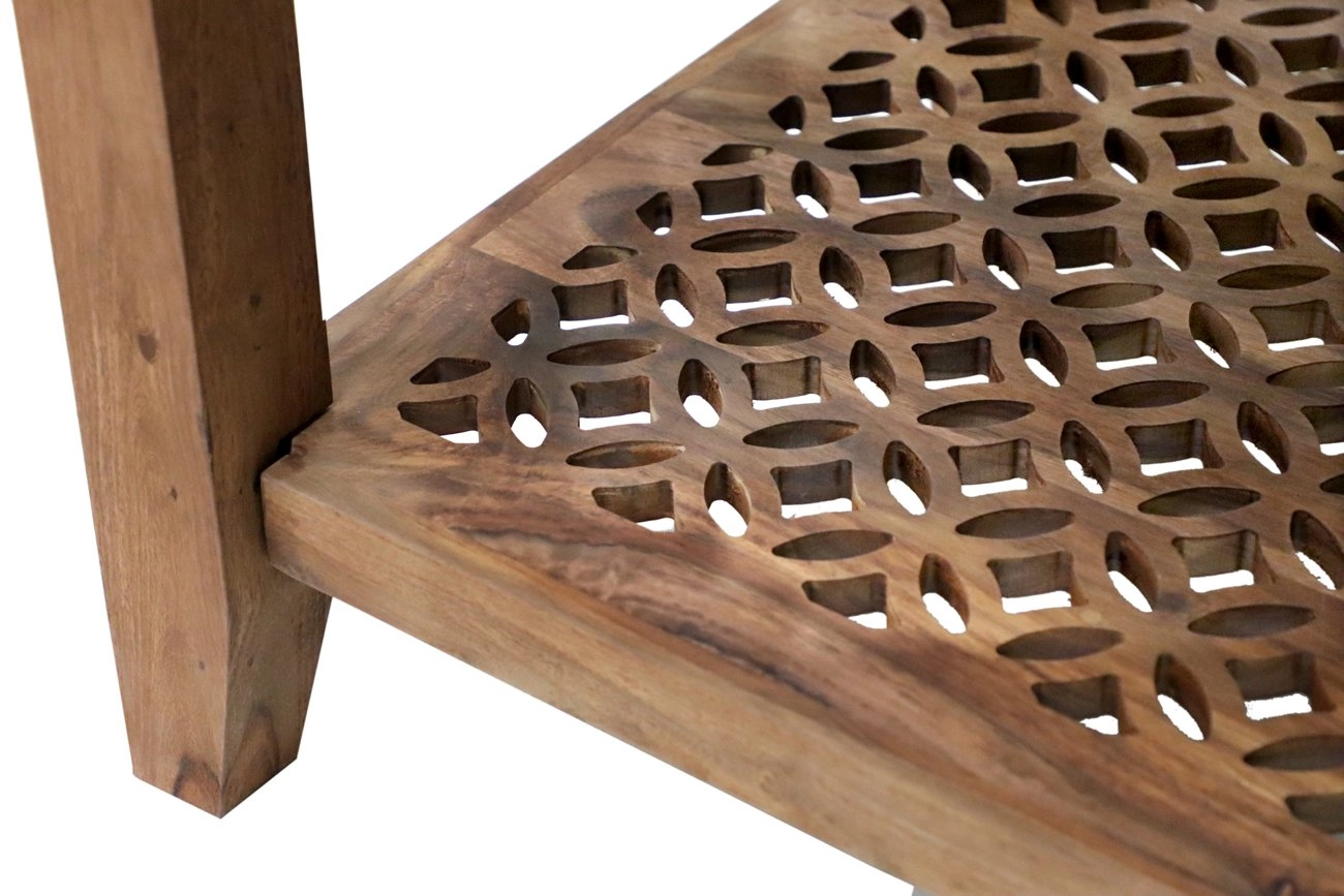 Objevte kouzlo exotického designu s naším konferenčním stolkem z masivu palisandr o rozměrech 90x60x60 cm. Tento unikátní kus nábytku přináší do vašeho interiéru kousek Indie, země, kde byl s pečlivostí vyroben. Konferenční stolek výška 60 cm poskytuje ideální pohodlí nejen pro vaše setkání s přáteli, ale také jako působivý doplněk vaší obývací místnosti.