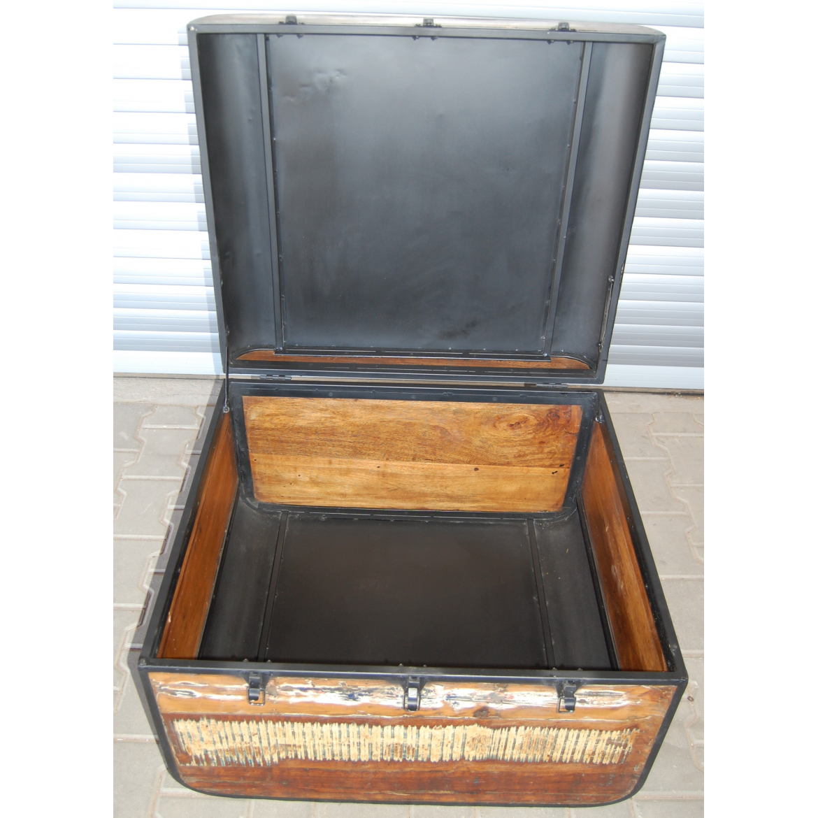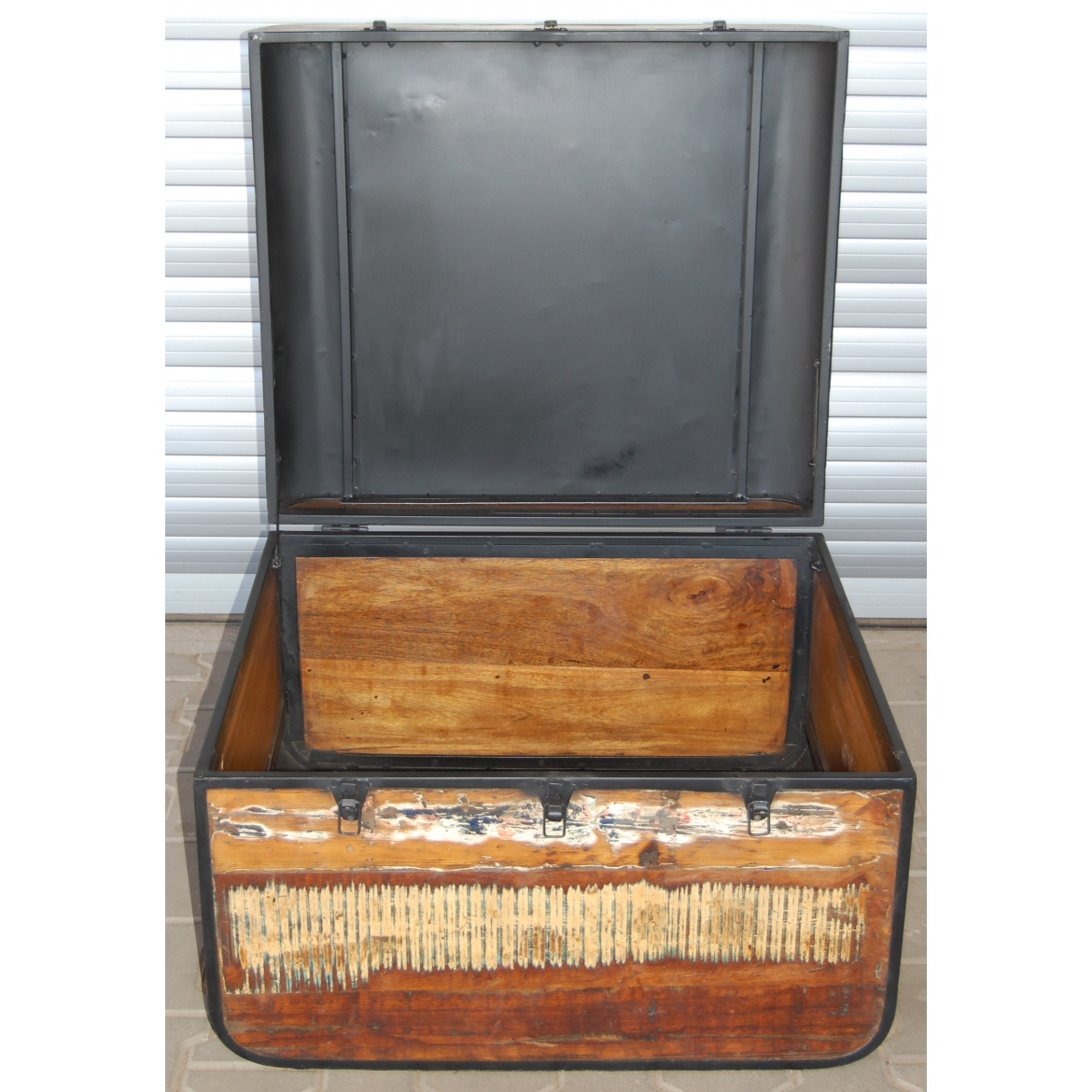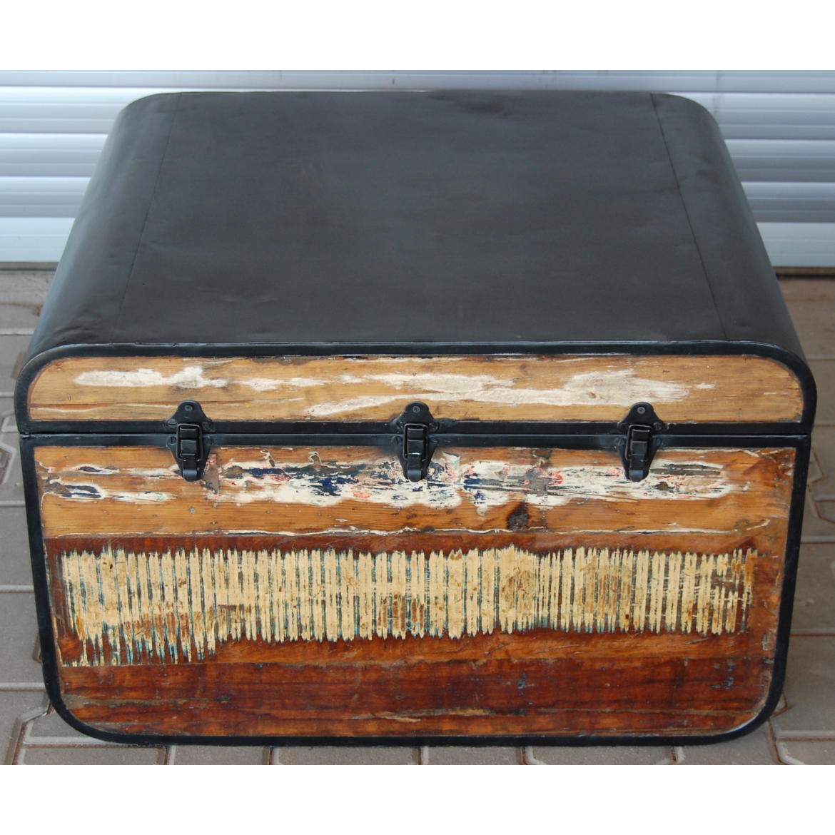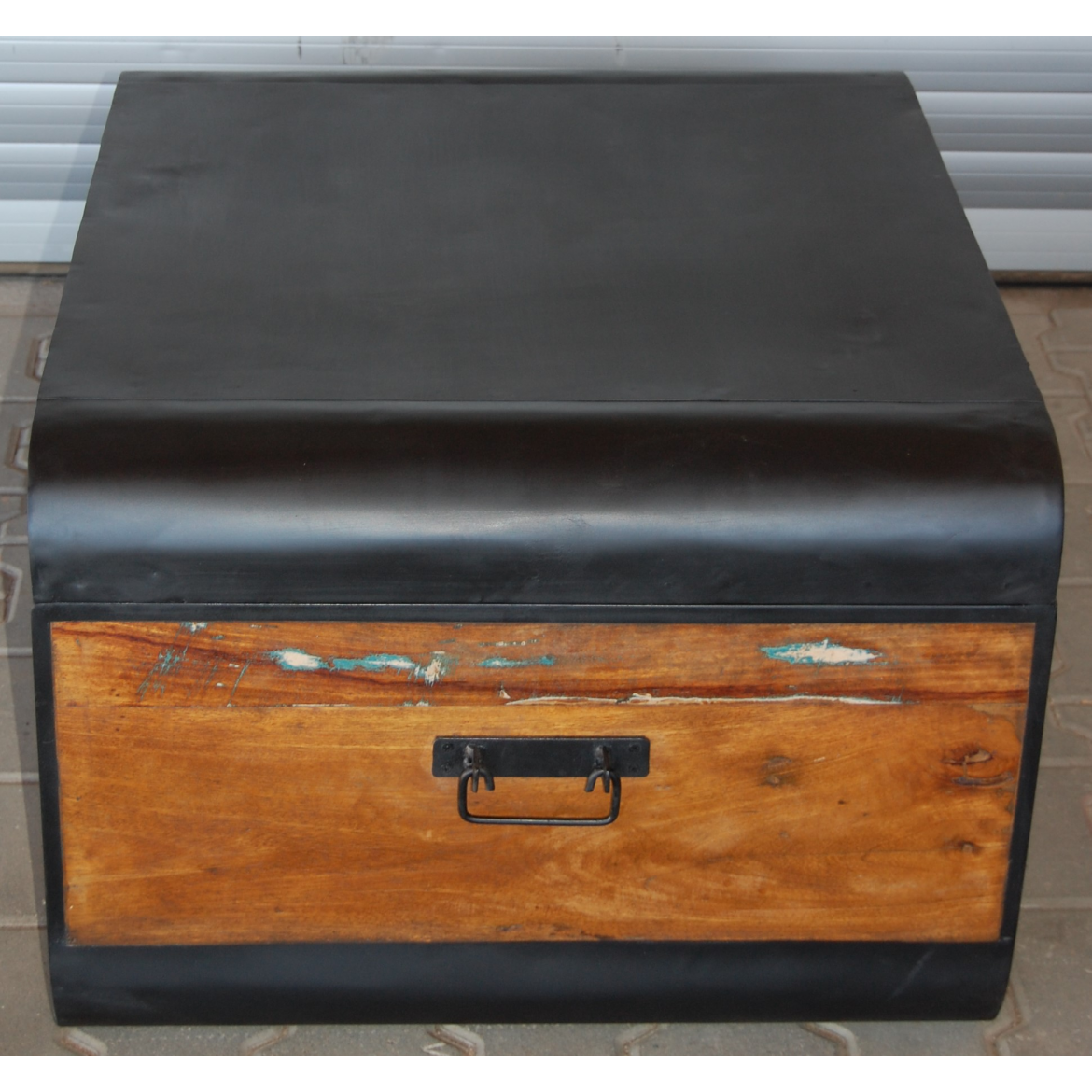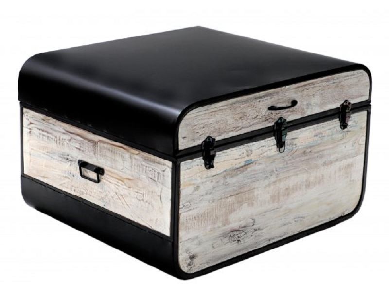 Konferenztisch oder Truhe aus recyceltem Massivholz von Mango und Metall.