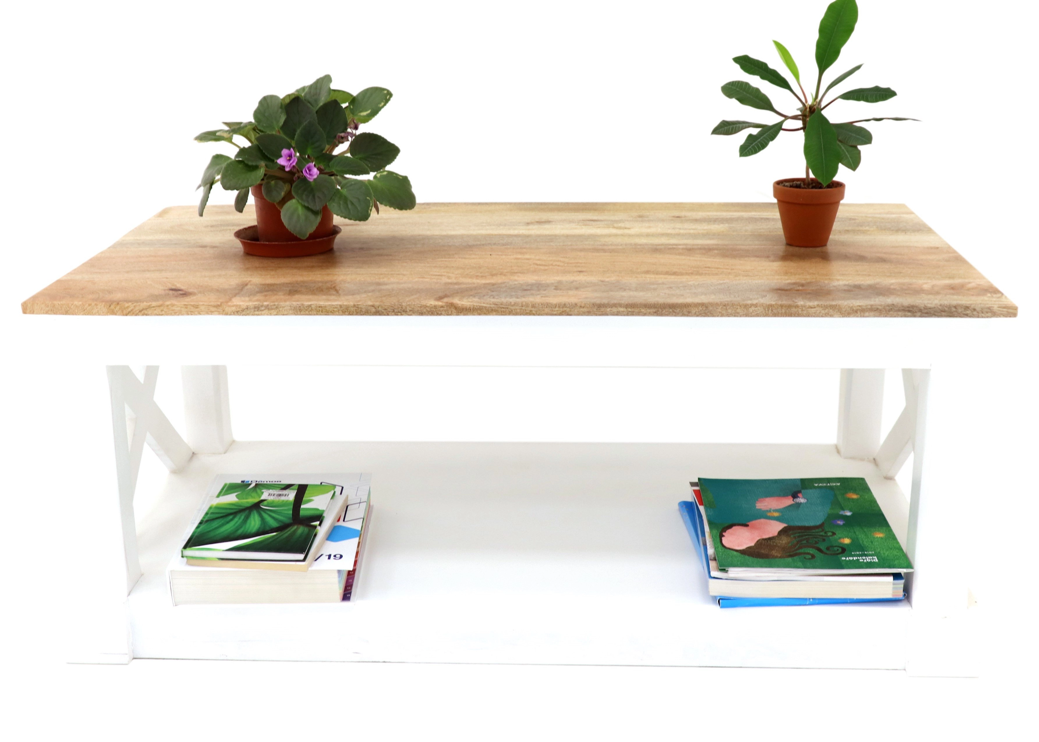 Tento konferenční stolek rustikální je více než jen praktický kus nábytku. Díky své odkládací desce poskytuje dostatek prostoru pro vaše knihy, časopisy nebo kávu. Mango dřevo, ze kterého je stolek vyroben, je známé svou jedinečnou kresbou a dlouhou životností, což zaručuje, že tento stolek bude krásný i po letech používání.