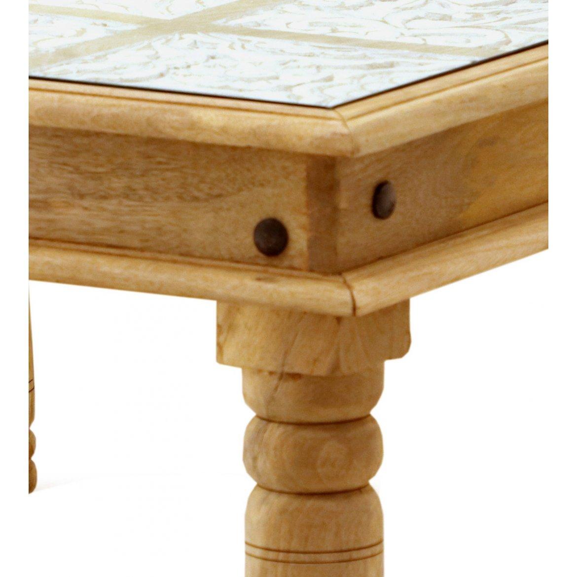 Der Massivholz-Couchtisch Sita ist aus hochwertigem, massivem Mangoholz (unlackiert) gefertigt. Die bei uns vorrätigen Massivholz-Couchtische können persönlich besichtigt oder nach Maß bestellt werden. Indische Kolonialmöbel aus massivem Mango.