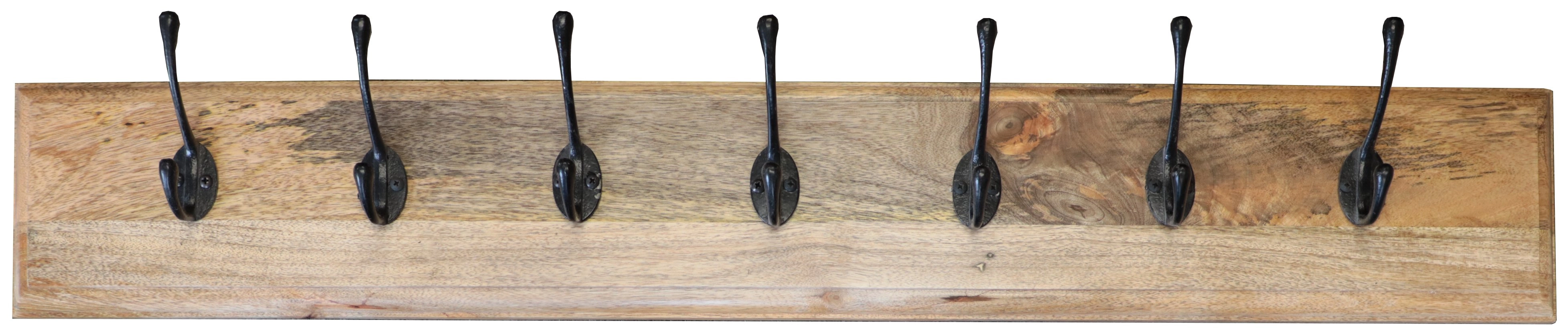 Věšák z masivu s 7 háčky je vyroben z indického manga. Věšáky na zeď z masivu, které máme skladem, si můžete prohlédnout v našem showroomu. Indický koloniální nábytek mango masiv.
