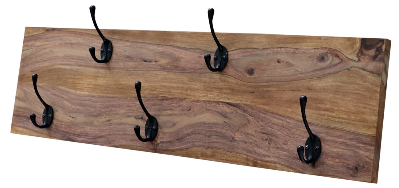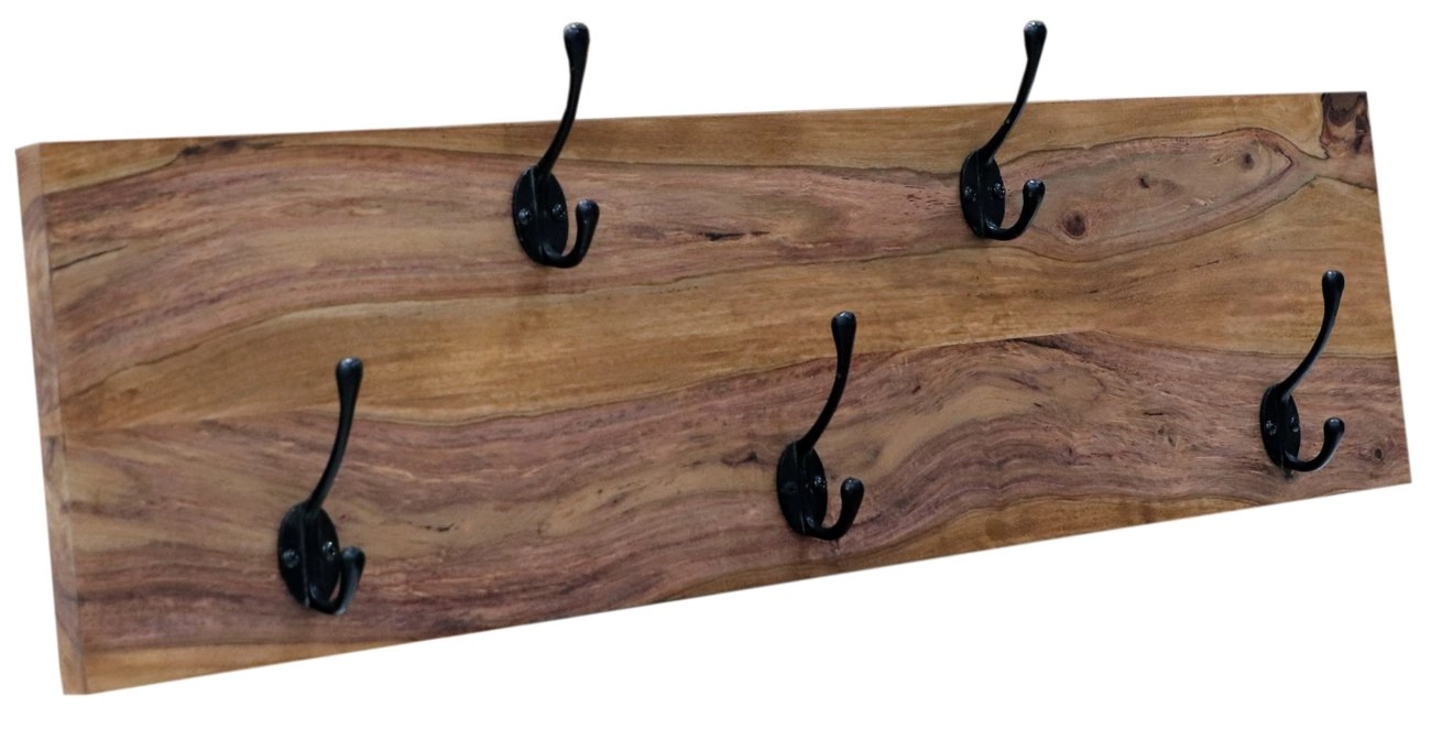 Věšák z masivu s 5 háčky je vyroben z indického palisandru. Věšáky na zeď z masivu, které máme skladem si můžete prohlédnout v našem showroomu. Indický koloniální nábytek palisandr (sheesham) masiv.