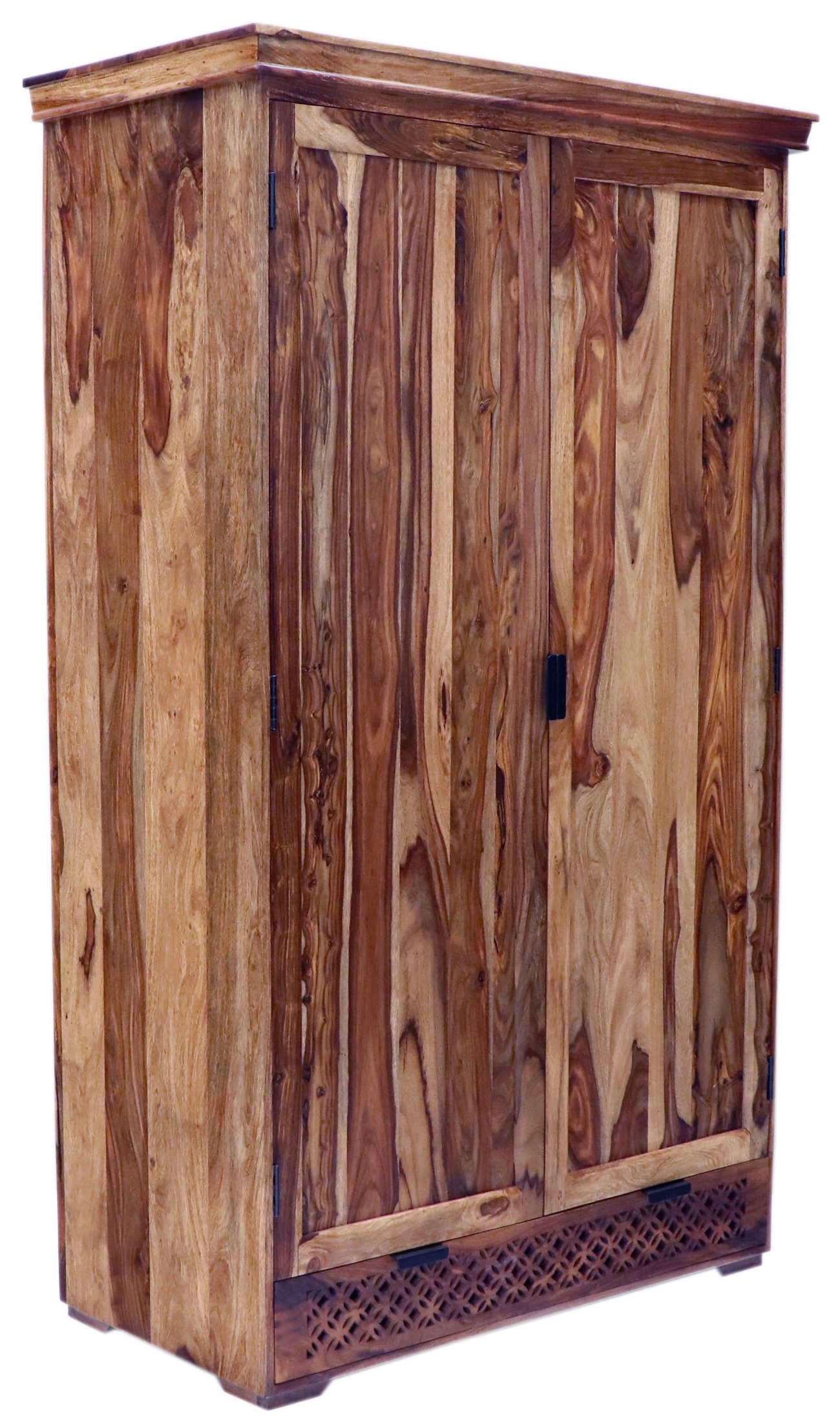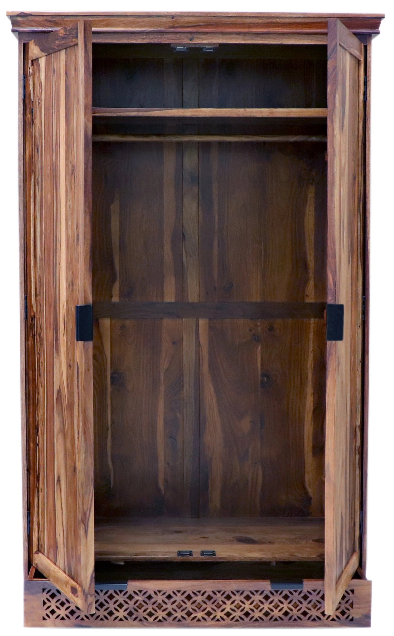 Díky svému původu z Indie a použití trvanlivého palisandru kombinuje skříň pevnost s krásou přírodních vzorů dřeva. Vynikající konstrukce zajišťuje, že vám tato šatní skříň bude sloužit po dlouhé roky. Lidé si k ní často pořizují také postele z masivu, noční stolky z masivu, komody z masivu a police z masivu, aby si vytvořili harmonický domov v jednotném stylu.