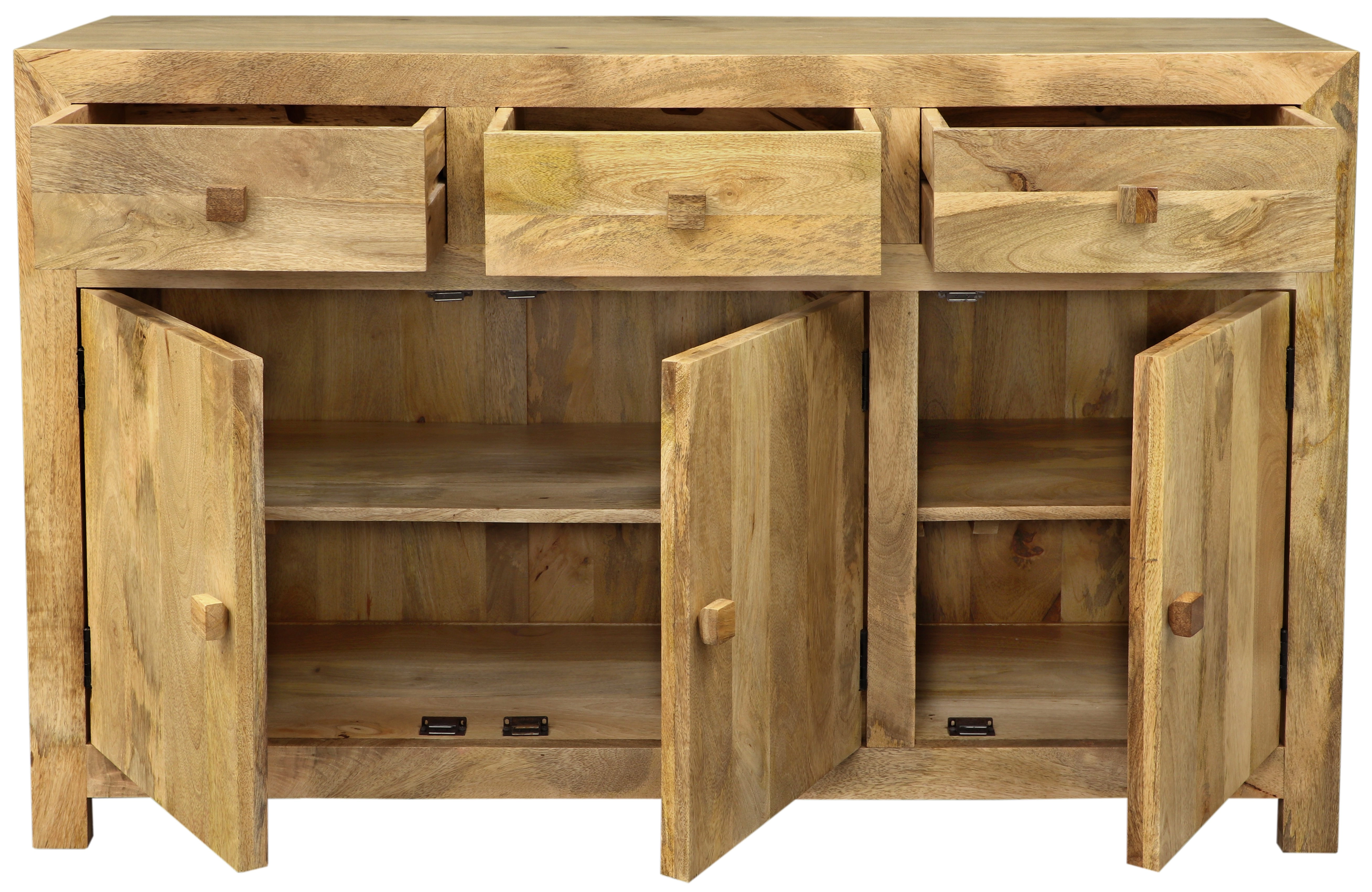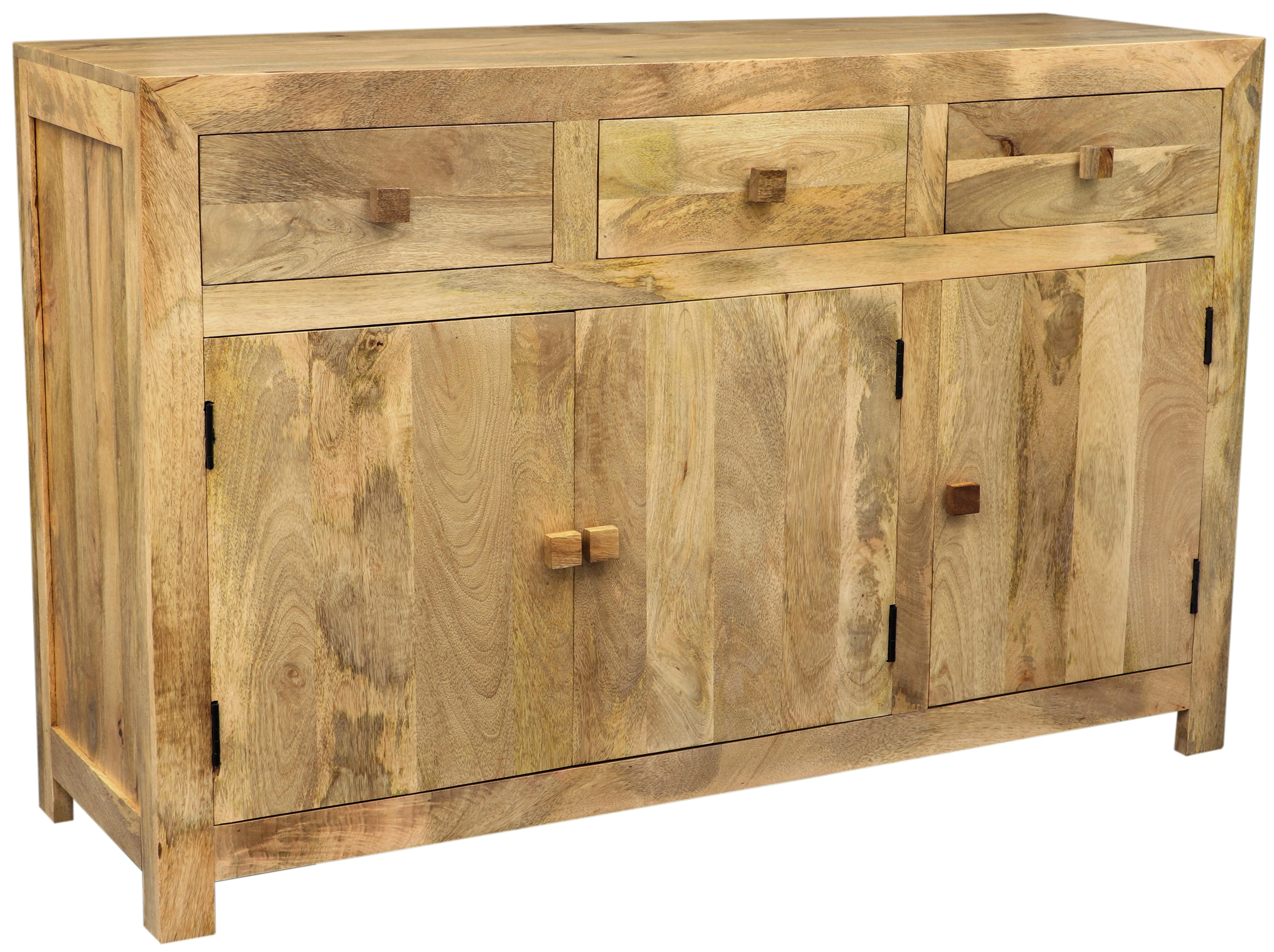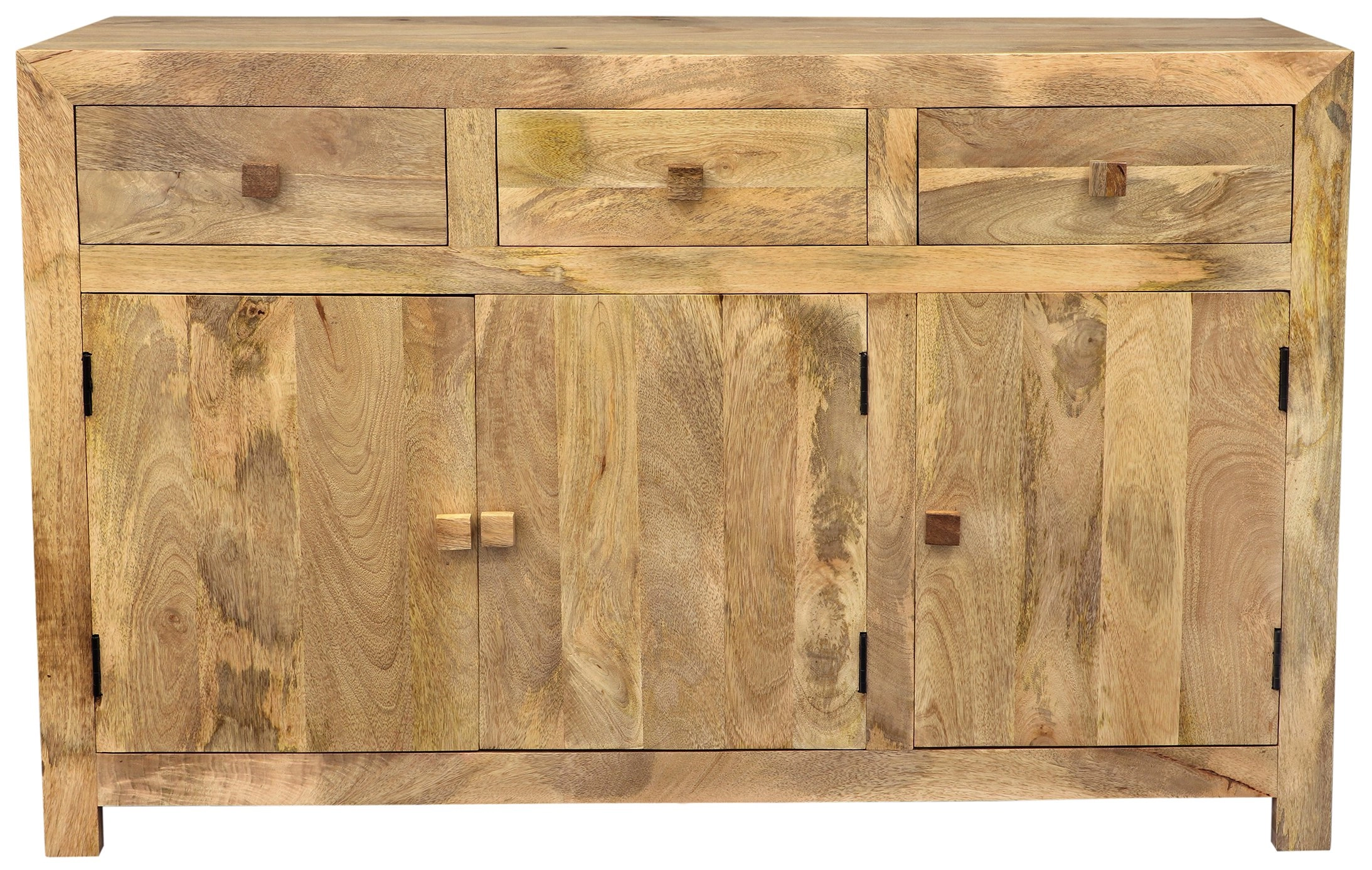 Komoda 160 z masivu mango 160x90x45 je dokonalou volbou pro ty, kteří hledají kvalitní a stylový úložný prostor do své ložnice. Tato masivní komoda je vyrobena z pečlivě vybraného indického manga, které je známé svou odolností a jedinečnou strukturovanou kresbou dřeva. Díky své šířce 160 cm, hloubce 45 cm a výšce 90 cm nabízí tato komoda dostatek úložného prostoru s trojími dvířky a třemi šuplíky, takže poskytuje možnost optimálního uspořádání vašeho oblečení, povlečení či dalších drobných předmětů.