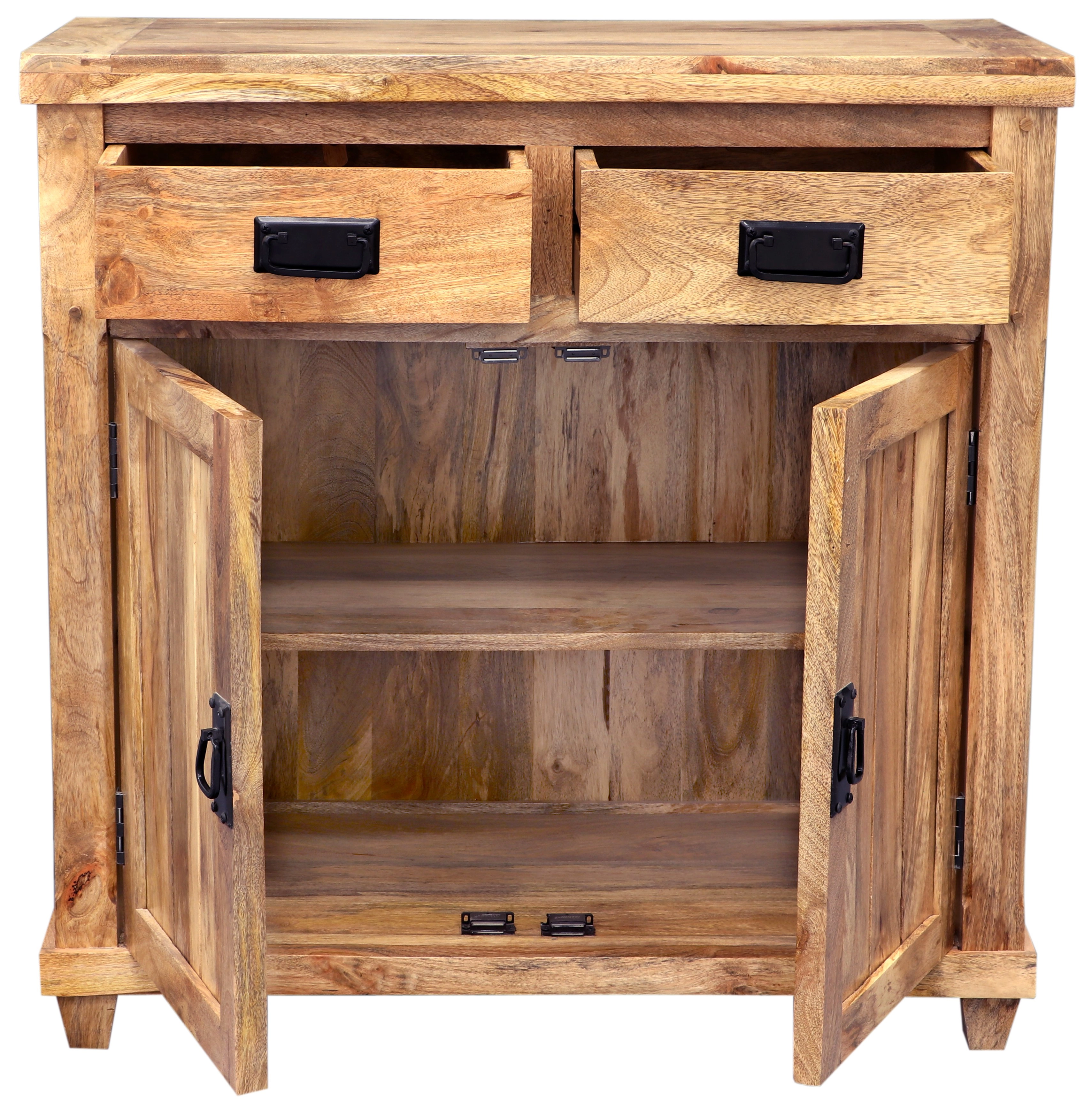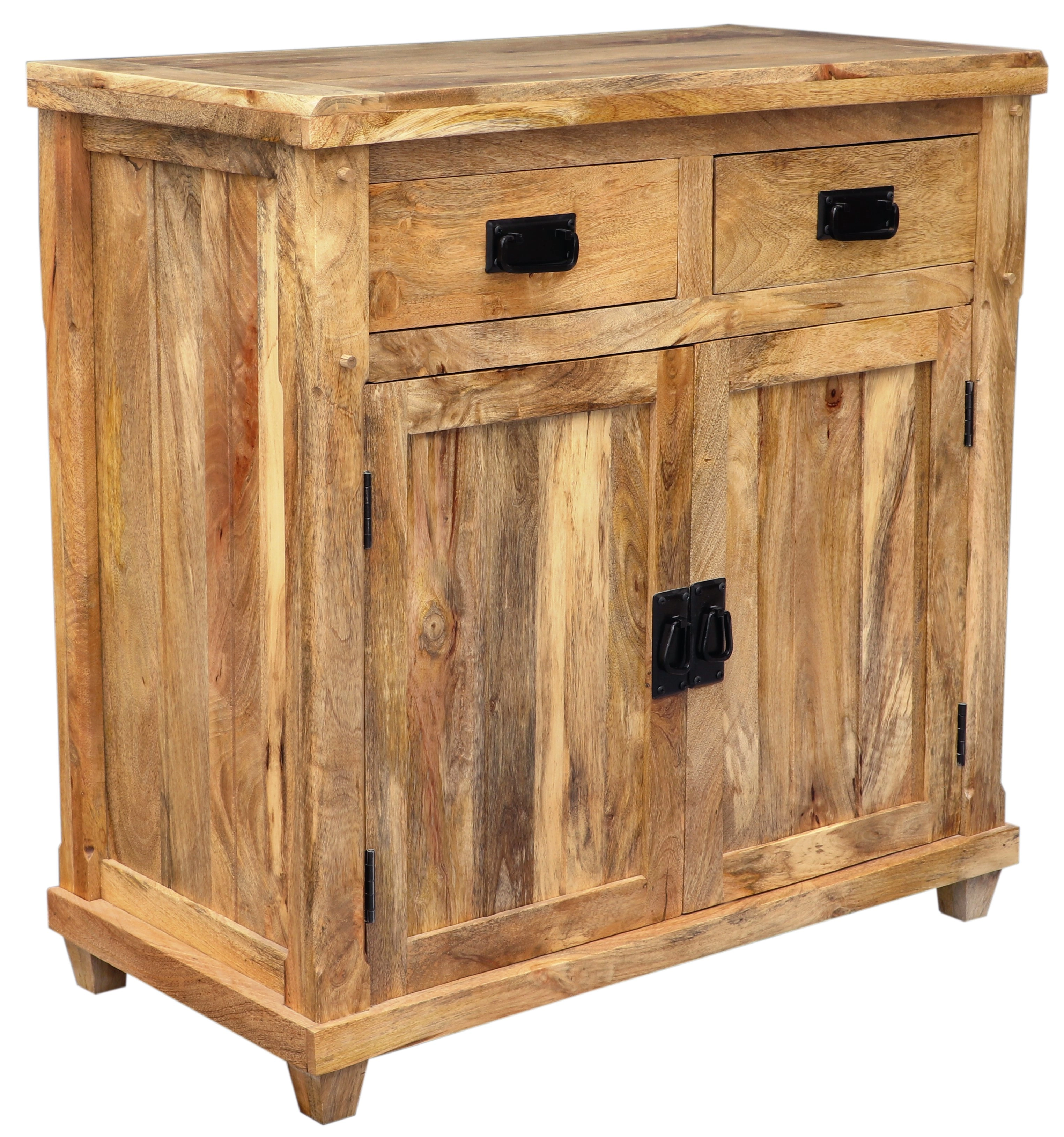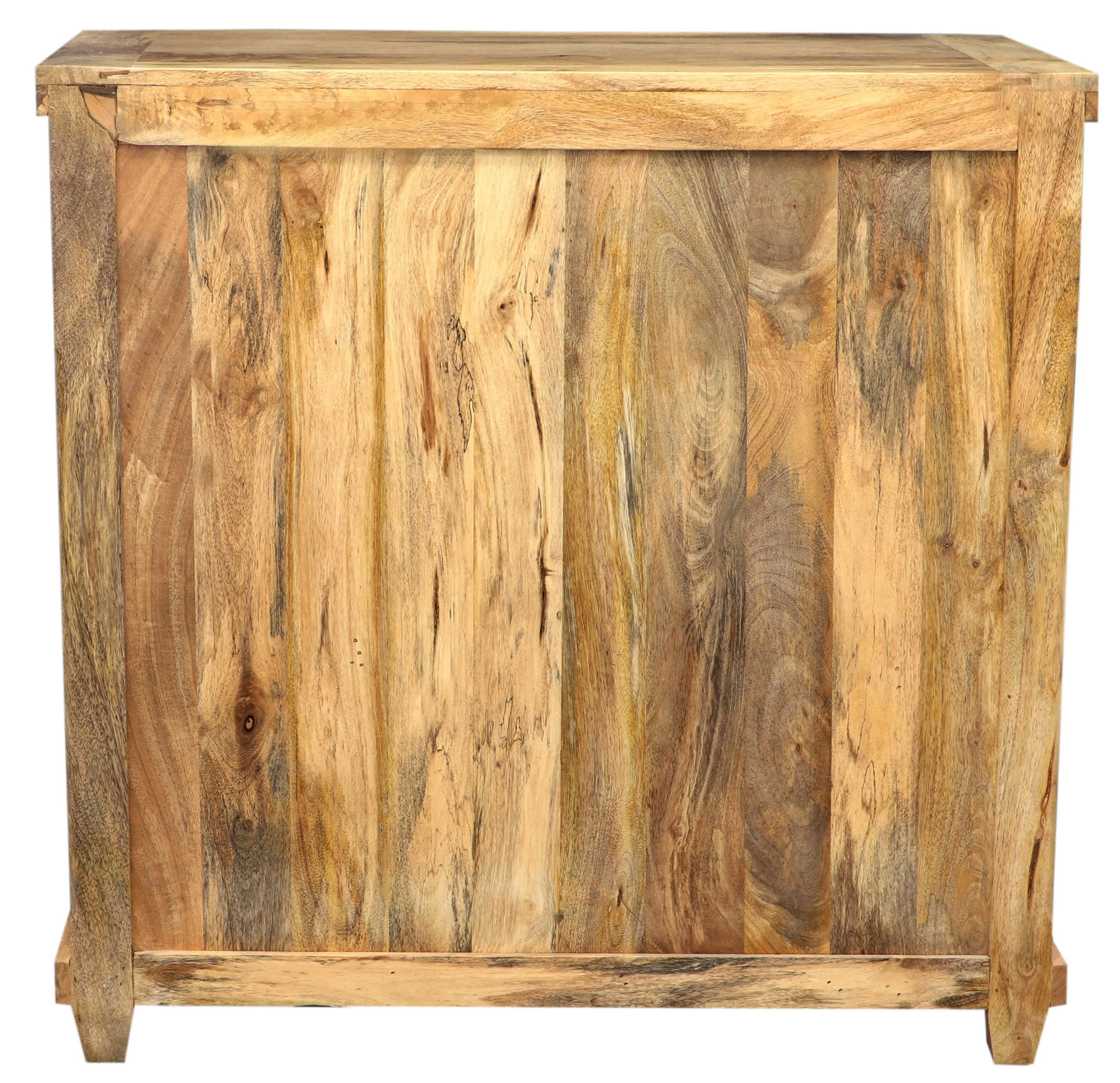 Komoda z mangového dřeva o rozměrech 90x45x90 cm je výjimečným kouskem nábytku, který přináší do vašeho domova kousek exotické Indie. Tato komoda je mistrovsky vyrobena z kvalitního mangového dřeva, které je známé svou pevností a odolností. Tento jedinečný nábytek z masivu se hodí především do předsíní, kde plně využijete jeho praktické rozměry – šířka 90 cm, hloubka 45 cm a výška 90 cm. Komoda z masivu je vybavena dvěma prostornými zásuvkami v horní části a dvěma spodními dvířky s elegantními kovovými úchyty, což poskytuje dostatek úložného prostoru pro všechny vaše potřeby.