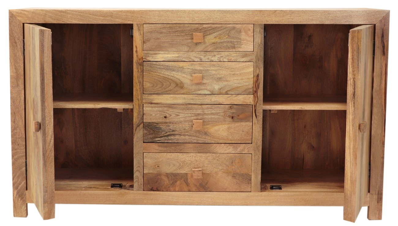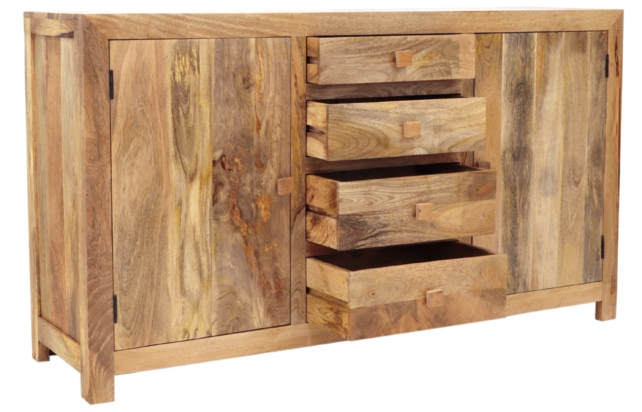 Díky čtyřem prostorným zásuvkám a dvěma dvířkům nabízí komoda z manga dostatek úložného prostoru pro vaši domácnost. Můžete v ní ukládat klíče, drobnosti, dokumenty či sezónní doplňky, což ji činí ideální volbou pro organizaci a uspořádání prostoru. Mangový nábytek se stává čím dál populárnější volbou v moderních interiérech díky své trvanlivosti a univerzálnímu designu, který se hodí jak do rustikálních, tak do moderních prostor.