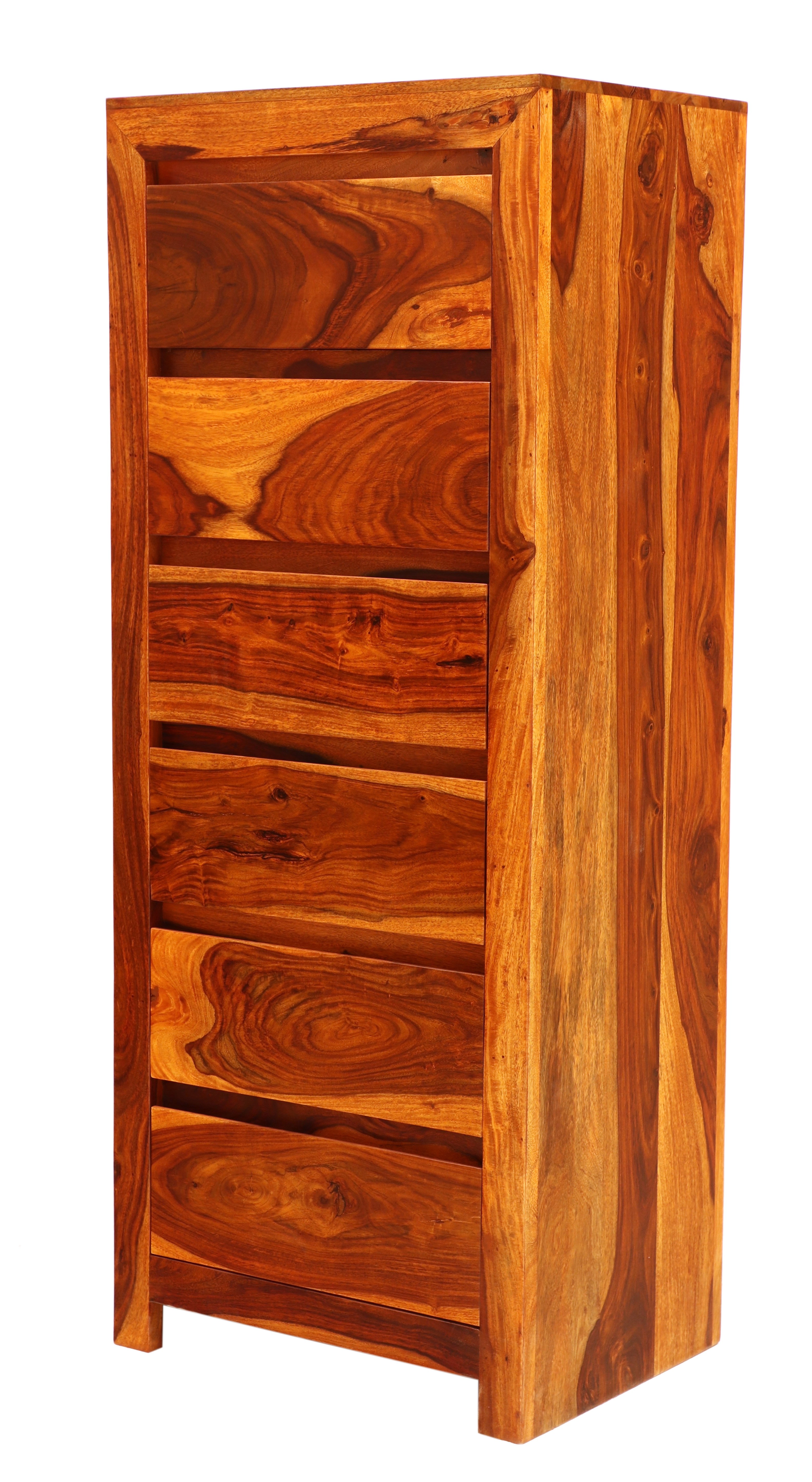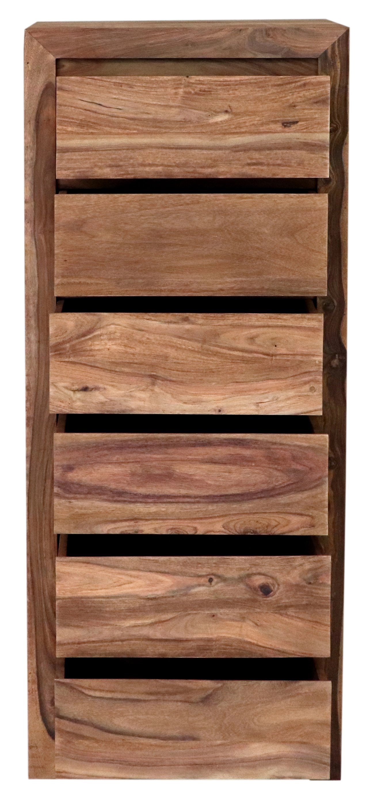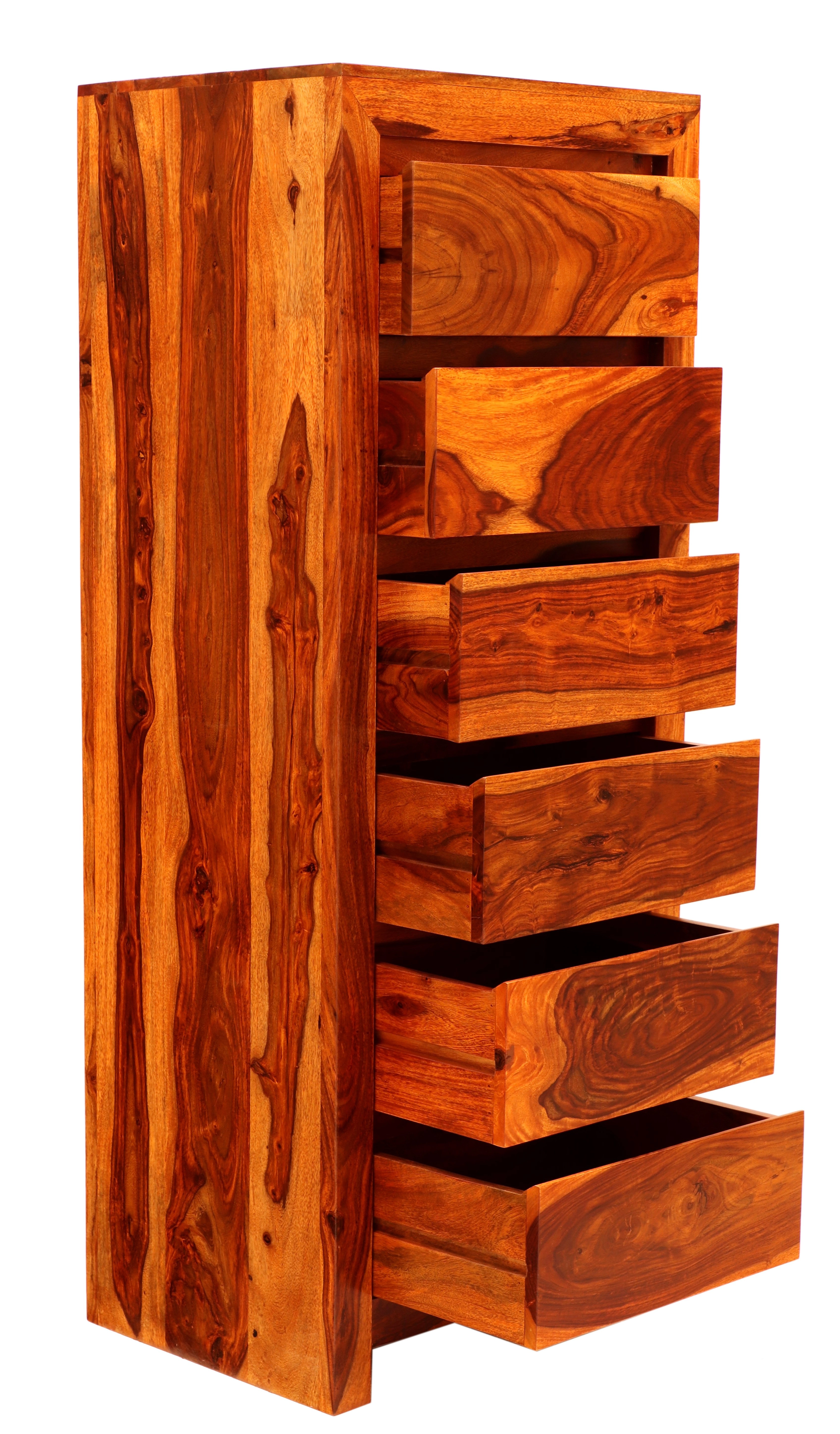 Komoda masiv z dřeva palisandr 60x40x150 cm je elegantním řešením pro váš předsíňový prostor. Tento nádherný kus masivního nábytku je vyroben z kvalitního palisandrového dřeva, které zajišťuje výjimečnou odolnost a dlouhou životnost. Palisandr, proslulý svým krásným žilkováním a teplými odstíny, přinese do vašeho interiéru kousek exotična a zároveň dodá místnosti útulný charakter. Komoda masiv je nejen esteticky přitažlivá, ale také praktická. Je vybavena šesti prostornými zásuvkami o rozměrech 45,5x37x14 cm, které nabízejí dostatek úložného prostoru pro všechny vaše potřeby.
