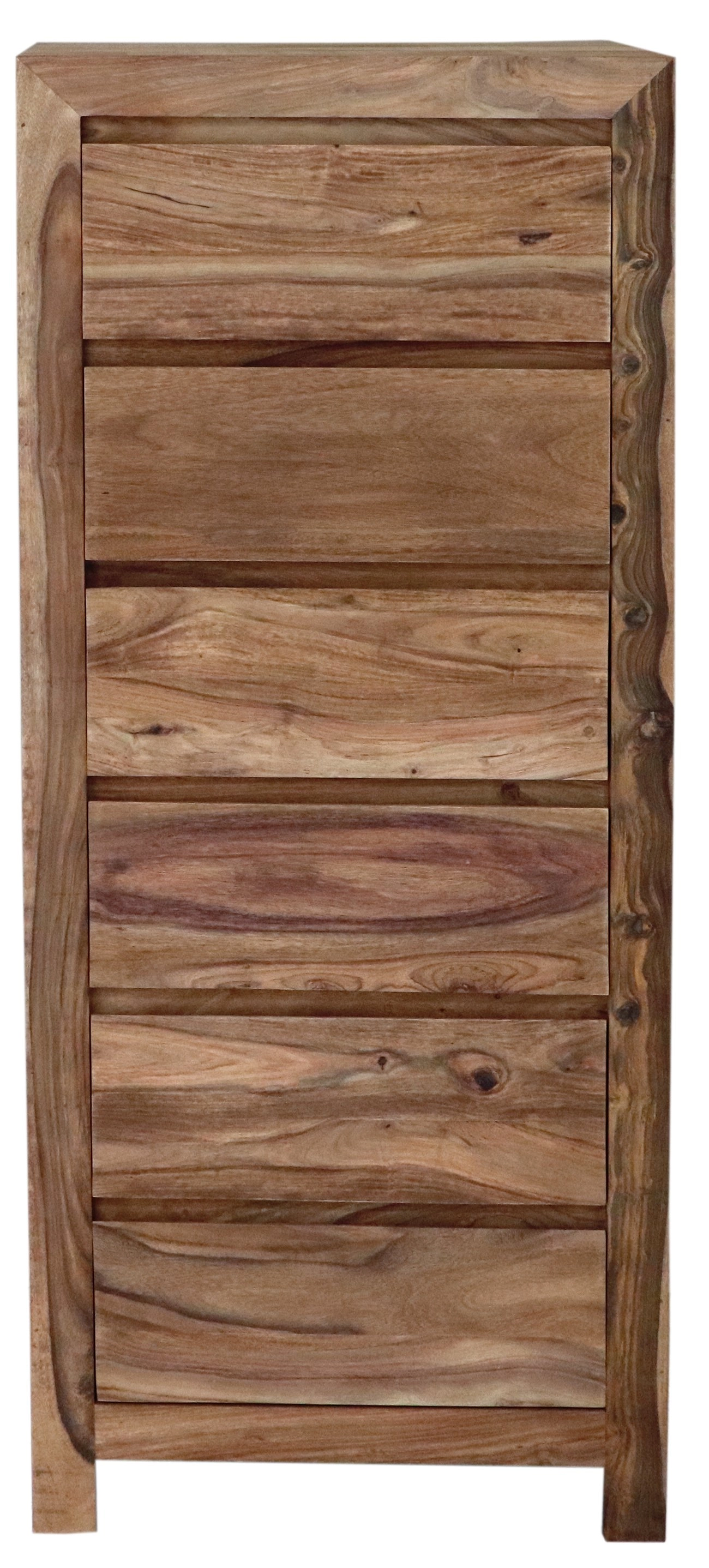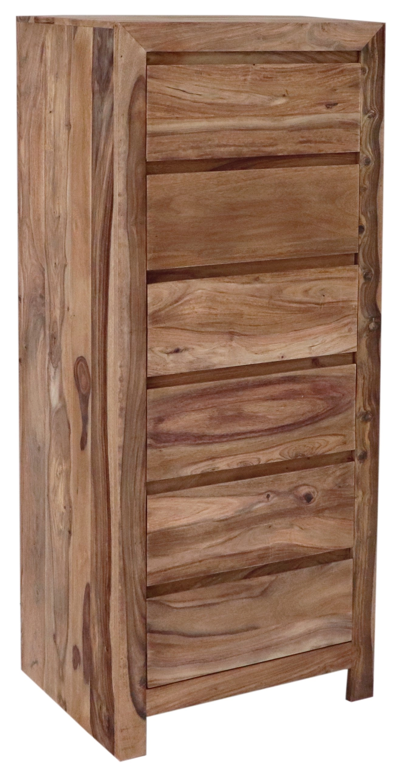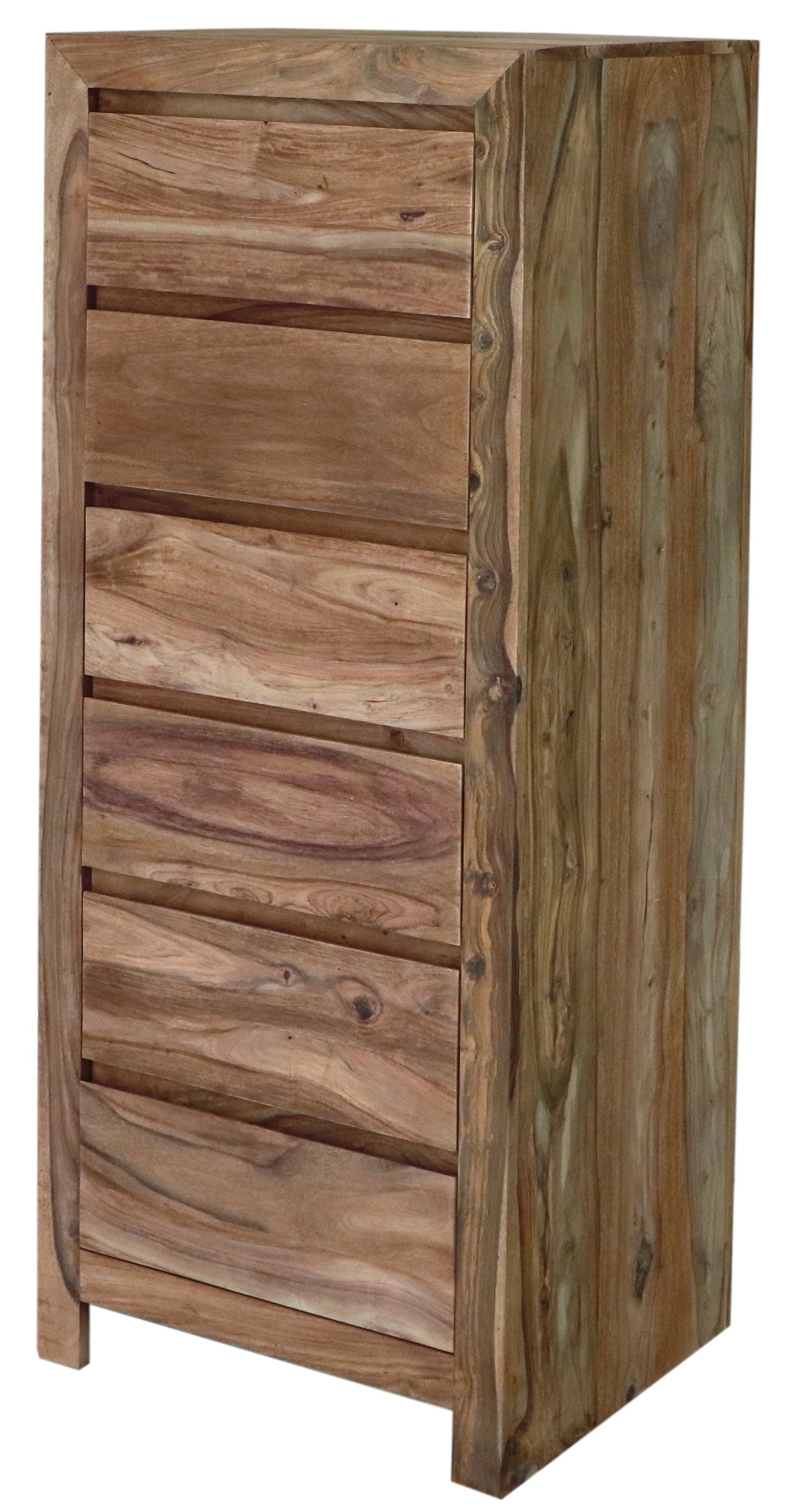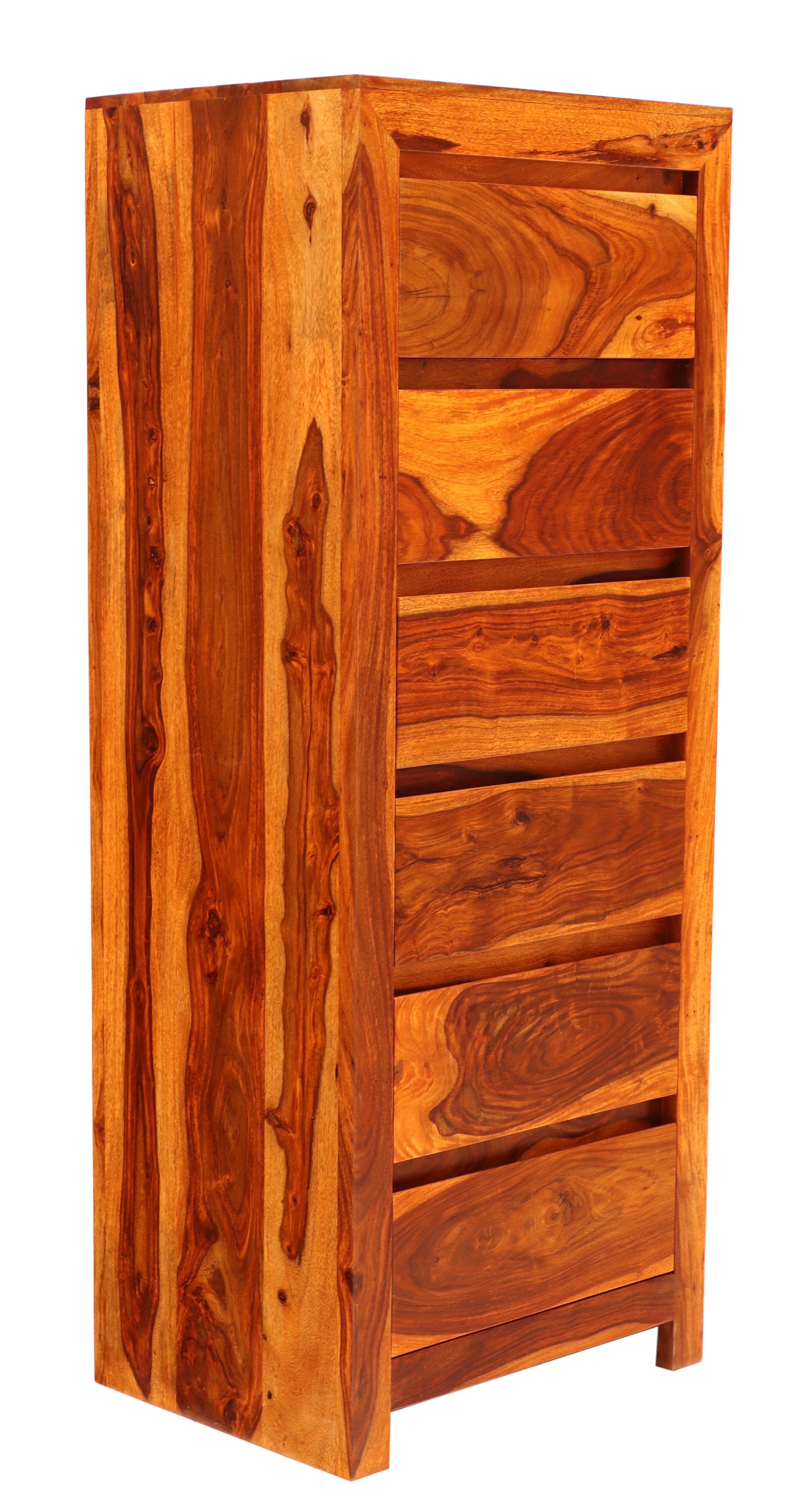 Komoda masiv z dřeva palisandr 60x40x150 cm je elegantním řešením pro váš předsíňový prostor. Tento nádherný kus masivního nábytku je vyroben z kvalitního palisandrového dřeva, které zajišťuje výjimečnou odolnost a dlouhou životnost. Palisandr, proslulý svým krásným žilkováním a teplými odstíny, přinese do vašeho interiéru kousek exotična a zároveň dodá místnosti útulný charakter. Komoda masiv je nejen esteticky přitažlivá, ale také praktická. Je vybavena šesti prostornými zásuvkami o rozměrech 45,5x37x14 cm, které nabízejí dostatek úložného prostoru pro všechny vaše potřeby.