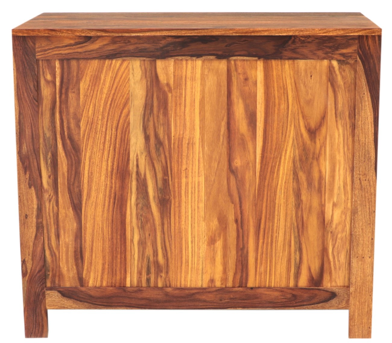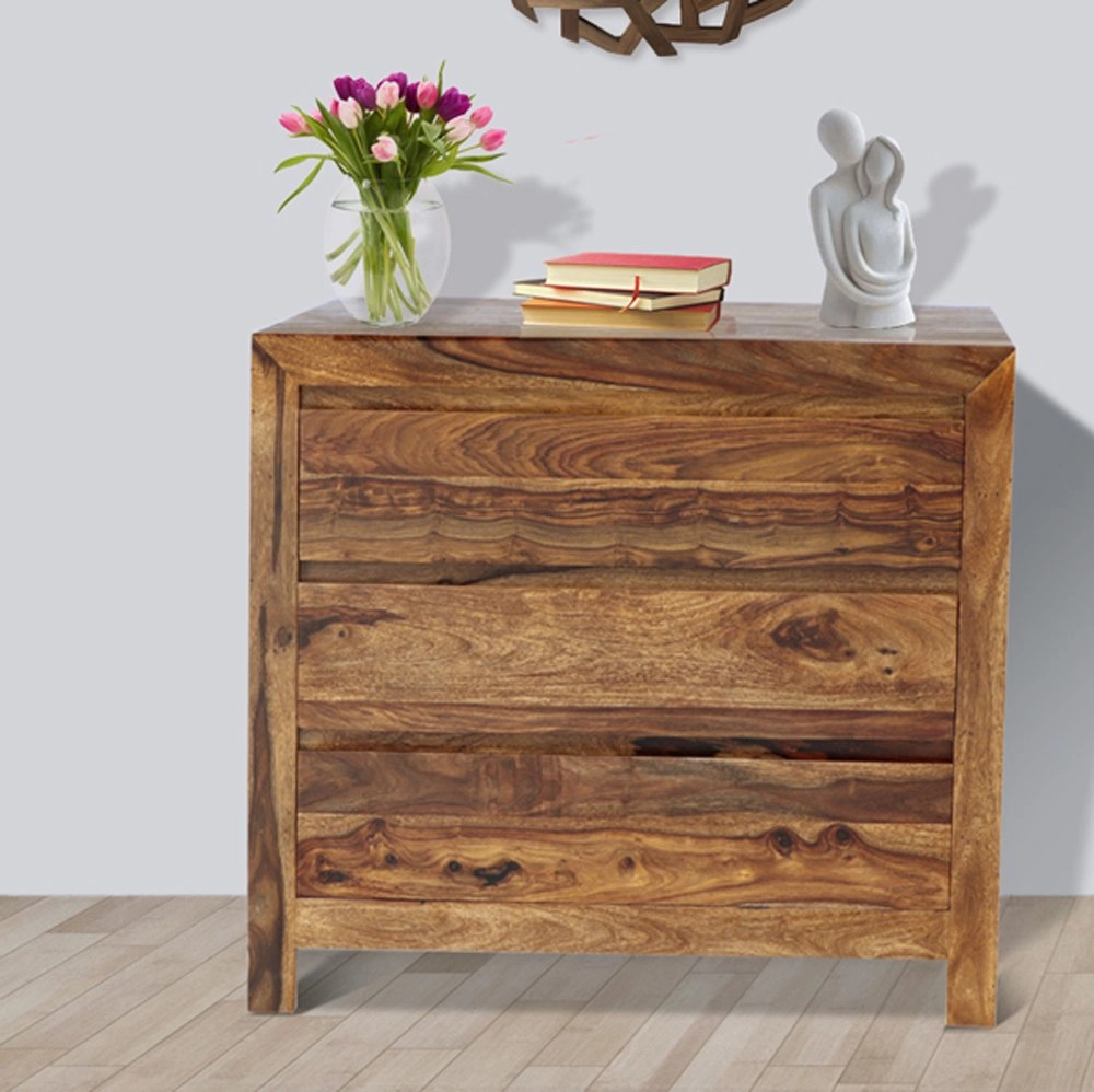 Objevte krásu a funkčnost naší komody z masivu, která přinese do vaší předsíně kousek přírody a elegance. Tato komoda z dřeva palisandru, která pochází z Indie, je skvělým příkladem kvalitního dřevěného nábytku. Se svou robustní konstrukcí a rozměry 90 cm na šířku, 45 cm na hloubku a 80 cm na výšku nabízí dostatek úložného prostoru ve třech prostorných zásuvkách pro vaše potřebné předměty. Komoda z dřeva je ideální volbou pro ty, kteří hledají nejen praktický, ale také esteticky příjemný kousek nábytku pro svou předsíň.