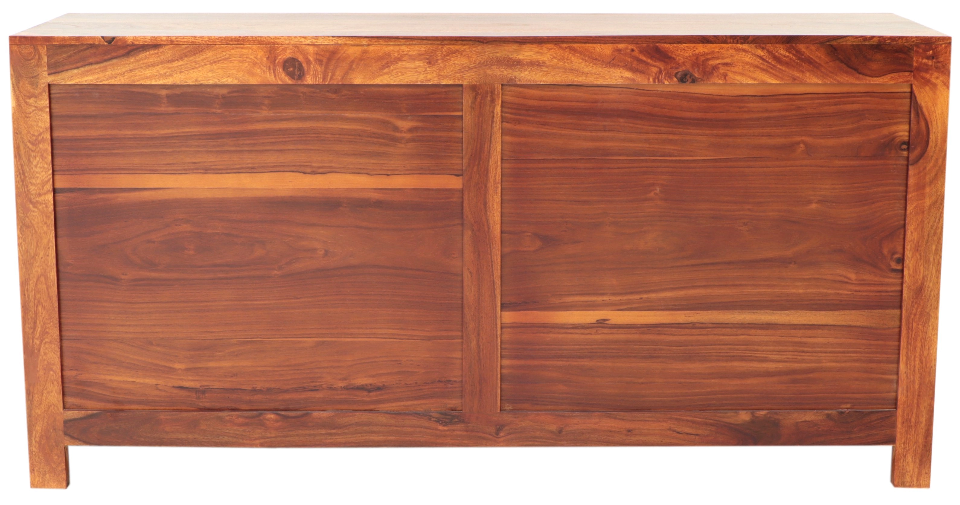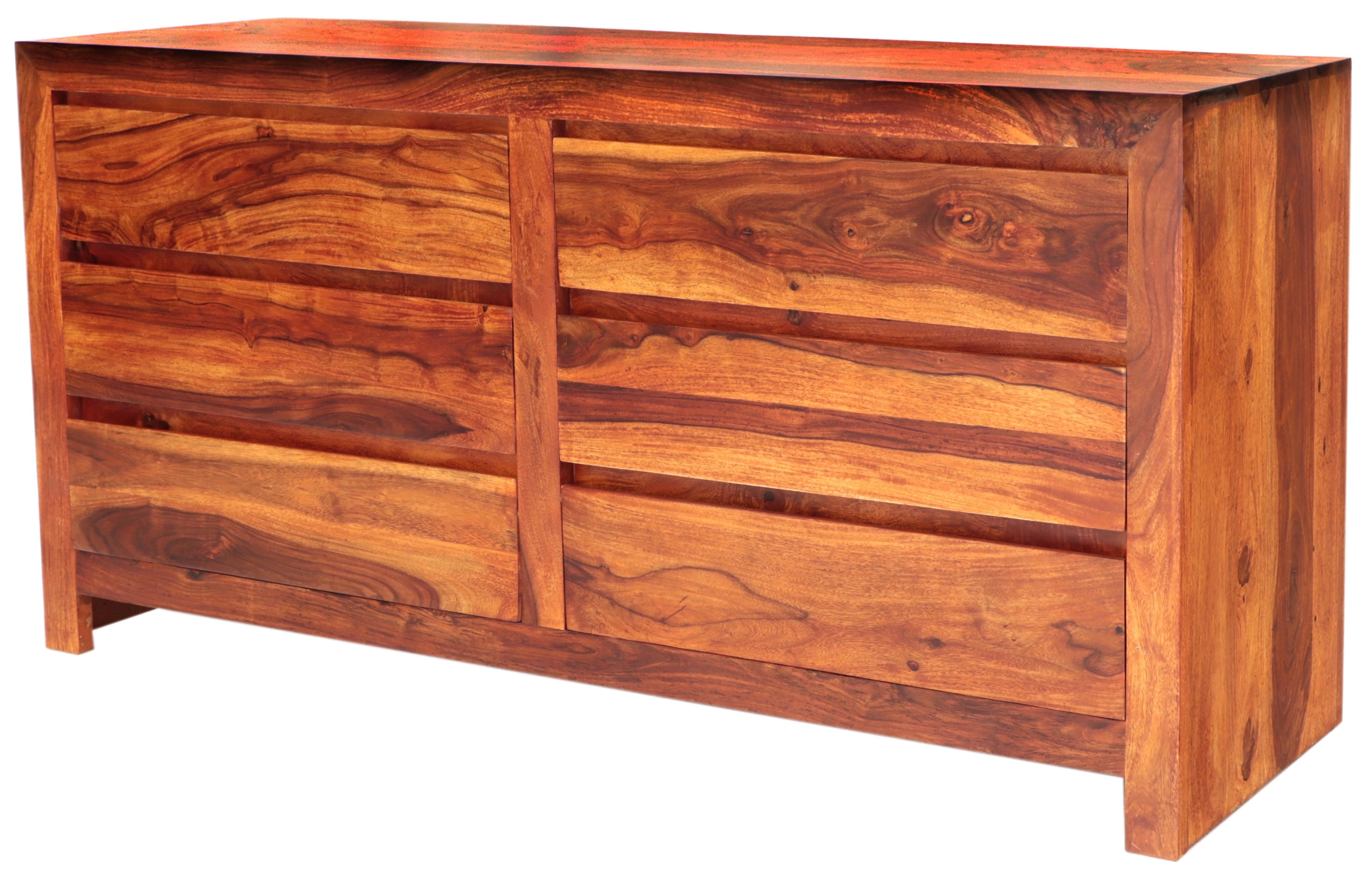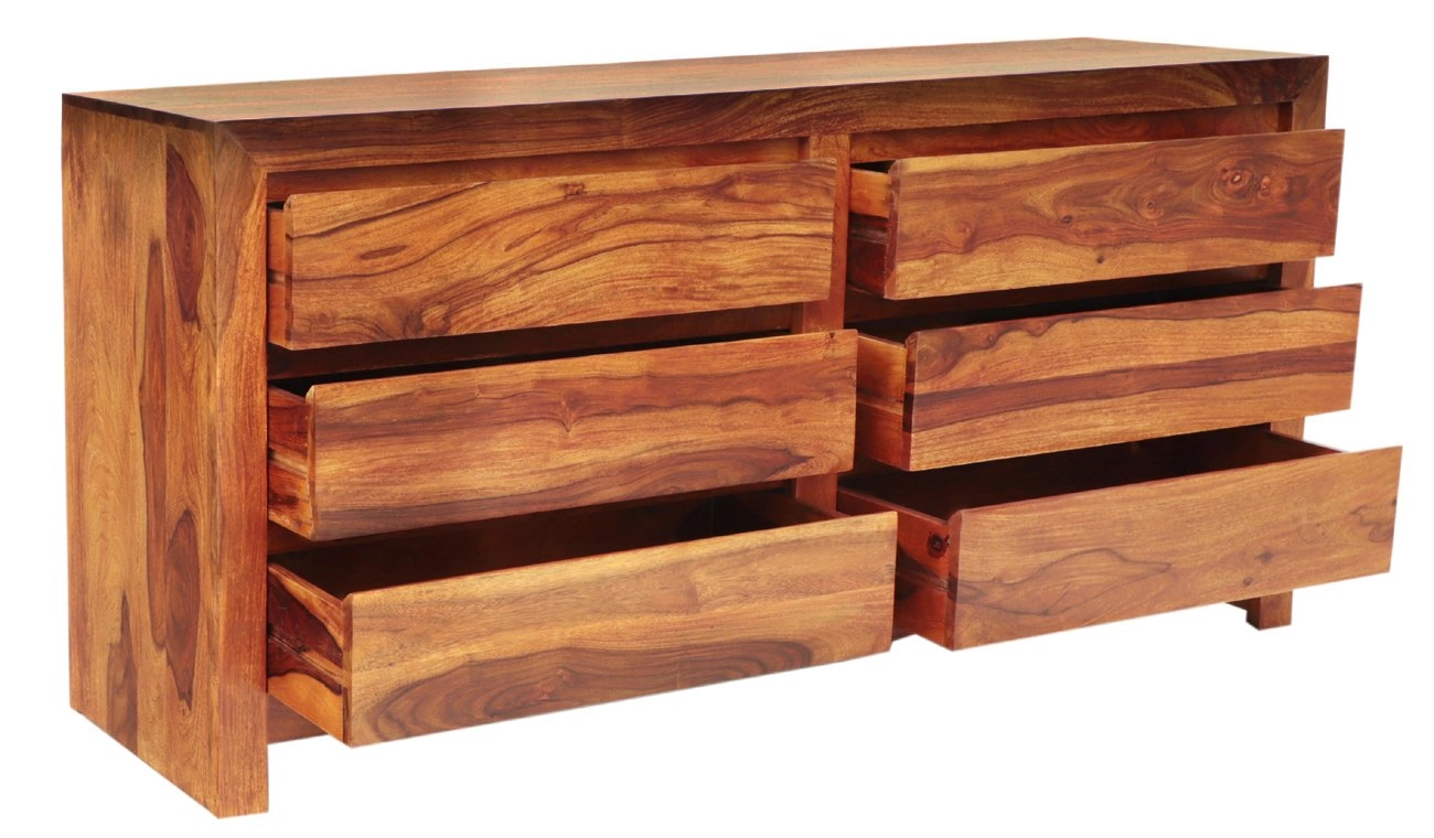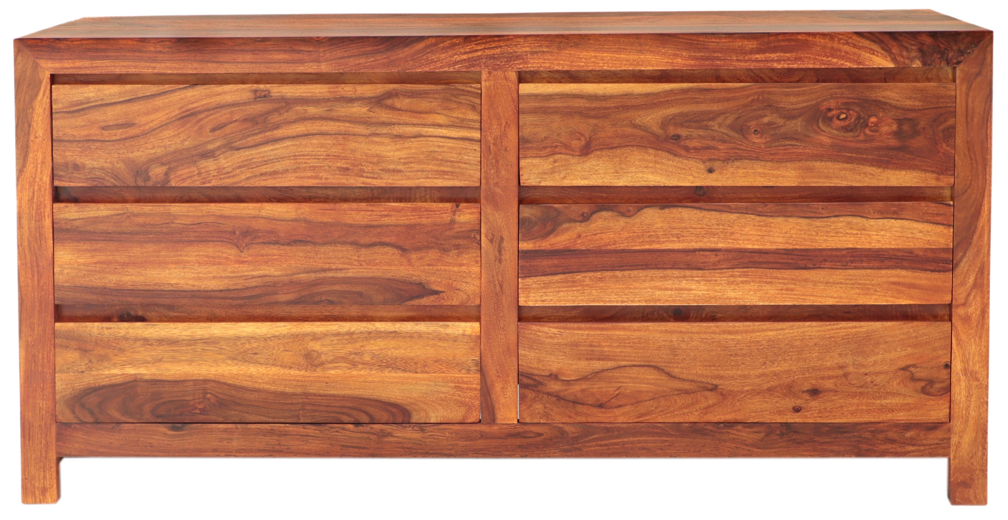 Tato elegantní komoda se šuplíky z masivu palisandr, původem z Indie, je dokonalým doplňkem do vaší jídelny. S rozměry 160x45x80 cm nabízí dostatek úložného prostoru díky šesti prostorným zásuvkám. Indický nábytek je proslulý svou unikátní výrobou, která kombinuje tradiční řemeslné postupy s moderním designem. Palisandr, ze kterého je tato komoda zhotovena, je vysoce ceněný dřevěný materiál známý svou odolností, jemnou texturou a výraznými barvami. Komoda nejen skvěle organizuje váš jídelní prostor, ale také přináší do místnosti dotek exotického stylu a elegance.