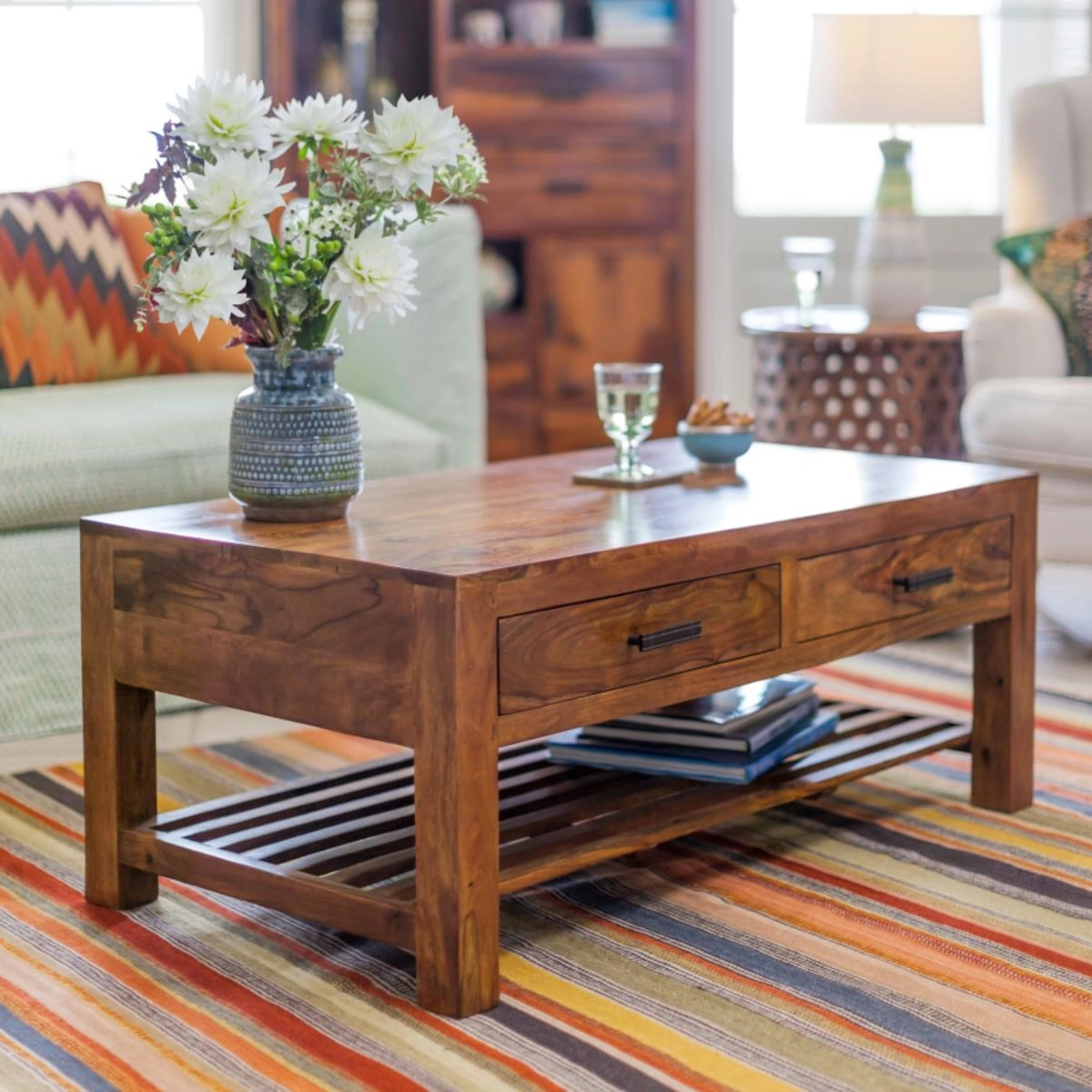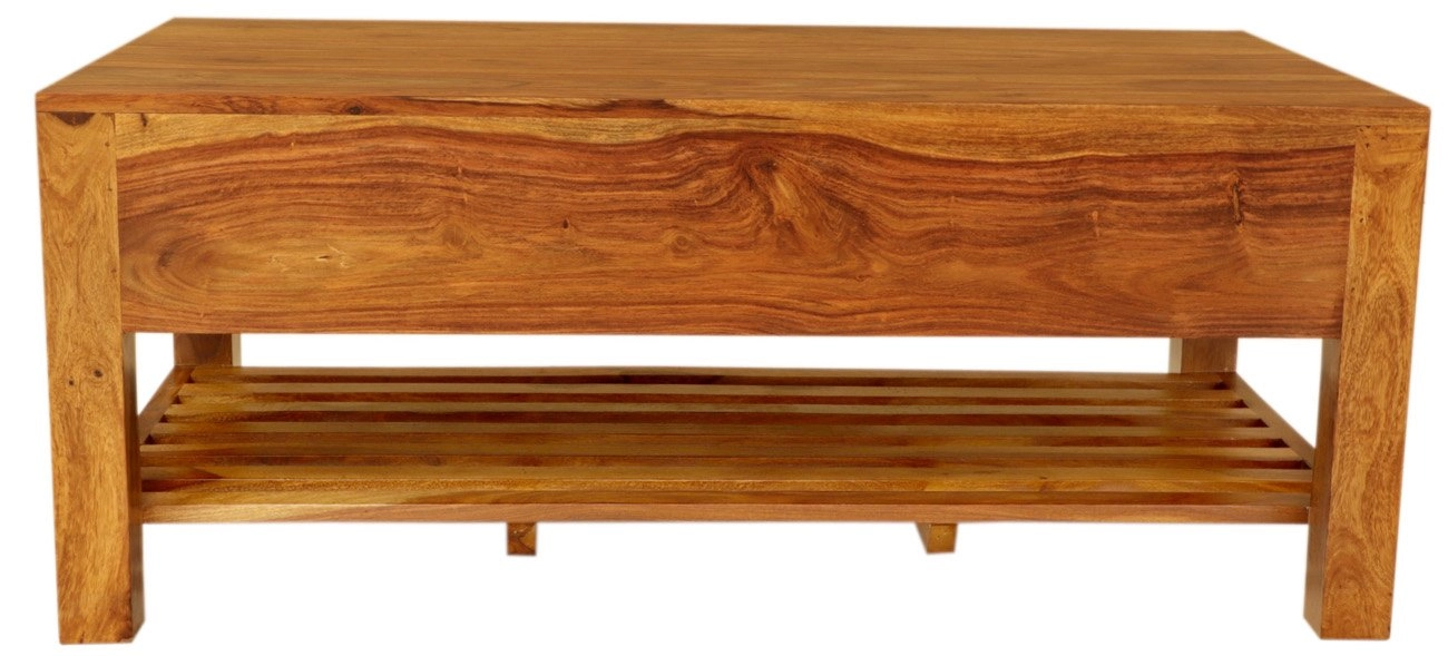 Palisandr je dřevo známé pro svou pevnost, odolnost a mimořádnou estetiku, čímž jistě splní vaše očekávání od masivního nábytku. Váš nový dřevěný nábytek přinese do místnosti teplý přírodní tón a přinese kus indické řemeslné práce až k vám domů. K dokonalému sladění interiéru můžete k tomuto konferenčnímu stolku zvolit další kusy nábytku, jako jsou dřevěná knihovna, masivní jídelní stůl, komoda s úložnými prostory nebo elegantní TV stolek.