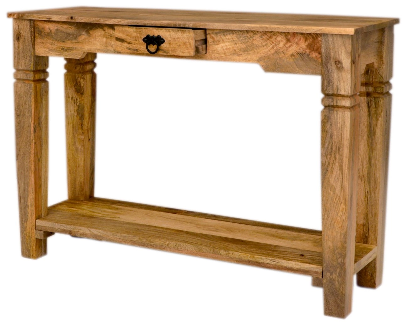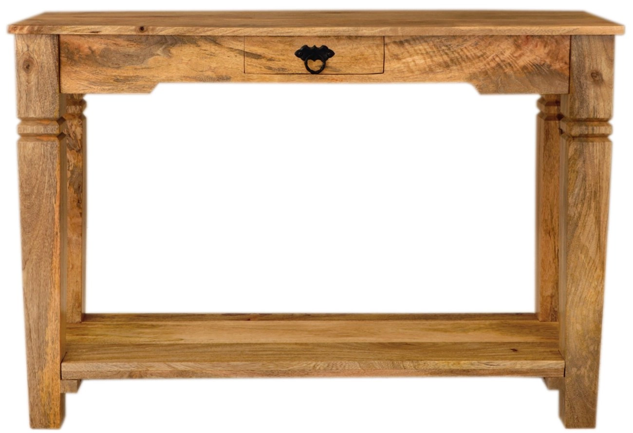 Objevte elegantní a funkční konzolový stolek dřevo z masivu indického manga, který se snadno přizpůsobí vašemu interiéru. Tento nádherný kus nábytku z masivu, s rozměry 110 cm na šířku, 35 cm na hloubku a 76 cm na výšku, nabízí nejen estetiku, ale také praktické využití. Je vybaven jedním šuplíkem a policí, které poskytují dostatek prostoru pro uspořádání vašich dekorací, osobních věcí či kosmetiky. Konzolový stolek je ideálním řešením pro ty, kdo hledají malý odkládací stolek do předsíně nebo sofistikovaný kosmetický stůl do ložnice. Původ tohoto elegantního kusu nábytku sahá do Indie, kde byl ručně vyroben z masivního dřeva manga. Tato exotická dřevina je známá svou trvanlivostí a krásnou strukturou, která dodává stolku unikátní vzhled a zajišťuje dlouhověkost. Konzolový stolek dřevo je skvělou volbou pro každý domov, kde se klade důraz na kvalitu a styl.