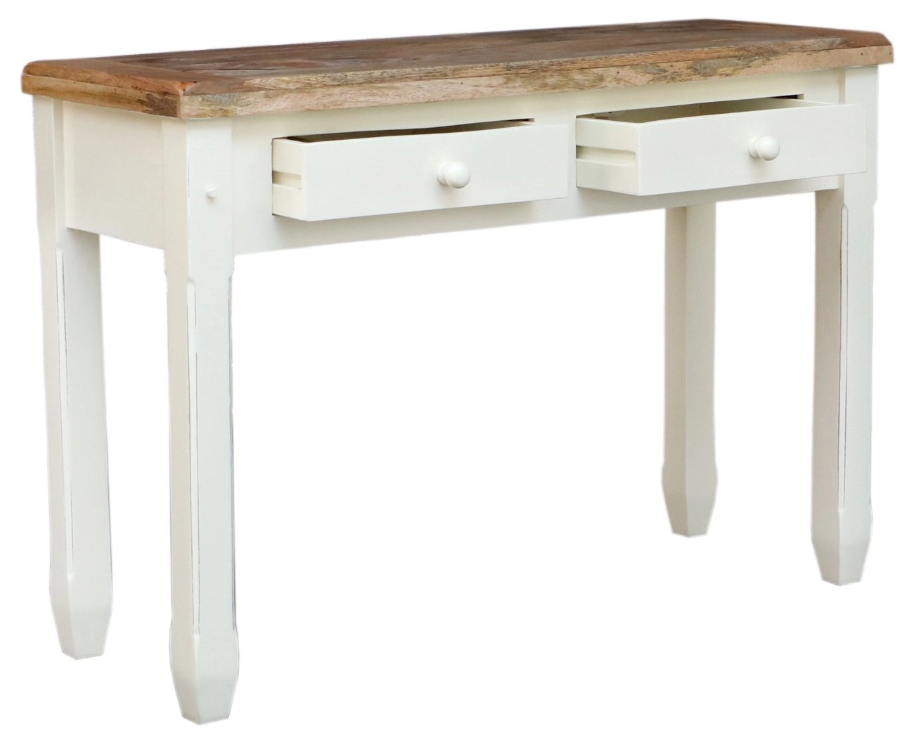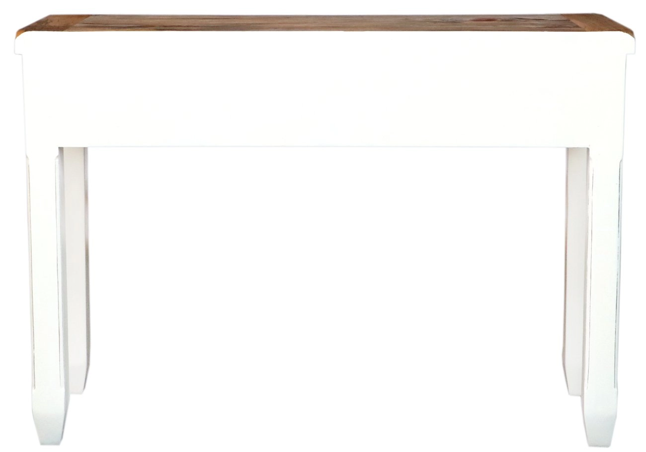 Objevte nádherný konzolový stolek z dřeva mango 110x76x40, který se stane skvostem vaší domácnosti. Tento exkluzivní kus nábytku je vyroben z masivního indického manga a nabízí jedinečnou kombinaci robustnosti a elegance. Díky svým rozměrům a stylovému designu je tento konzolový stolek z masivu ideální volbou, ať už ho umístíte do předsíně, ložnice, nebo kuchyně. Jeho venkovský styl je zdůrazněn bílou barvou v kombinaci s přirozeným dekorem dřeva, což dodává stolku nadčasový vzhled.