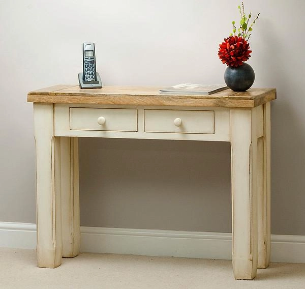 Konzolový stolek z dřeva mango má praktické šuplíky, které poskytnou dostatek úložného prostoru pro vaše kosmetické potřeby, kancelářské vybavení nebo drobné kuchyňské náčiní. Skvěle poslouží jako malý odkládací stolek, ale také jako stylový toaletní stolek ve vaší ložnici. Původ výrobku z exotické Indie přináší do vašeho domova dotek vzdálených krajů a přináší příběh o dovednostech místních řemeslníků.