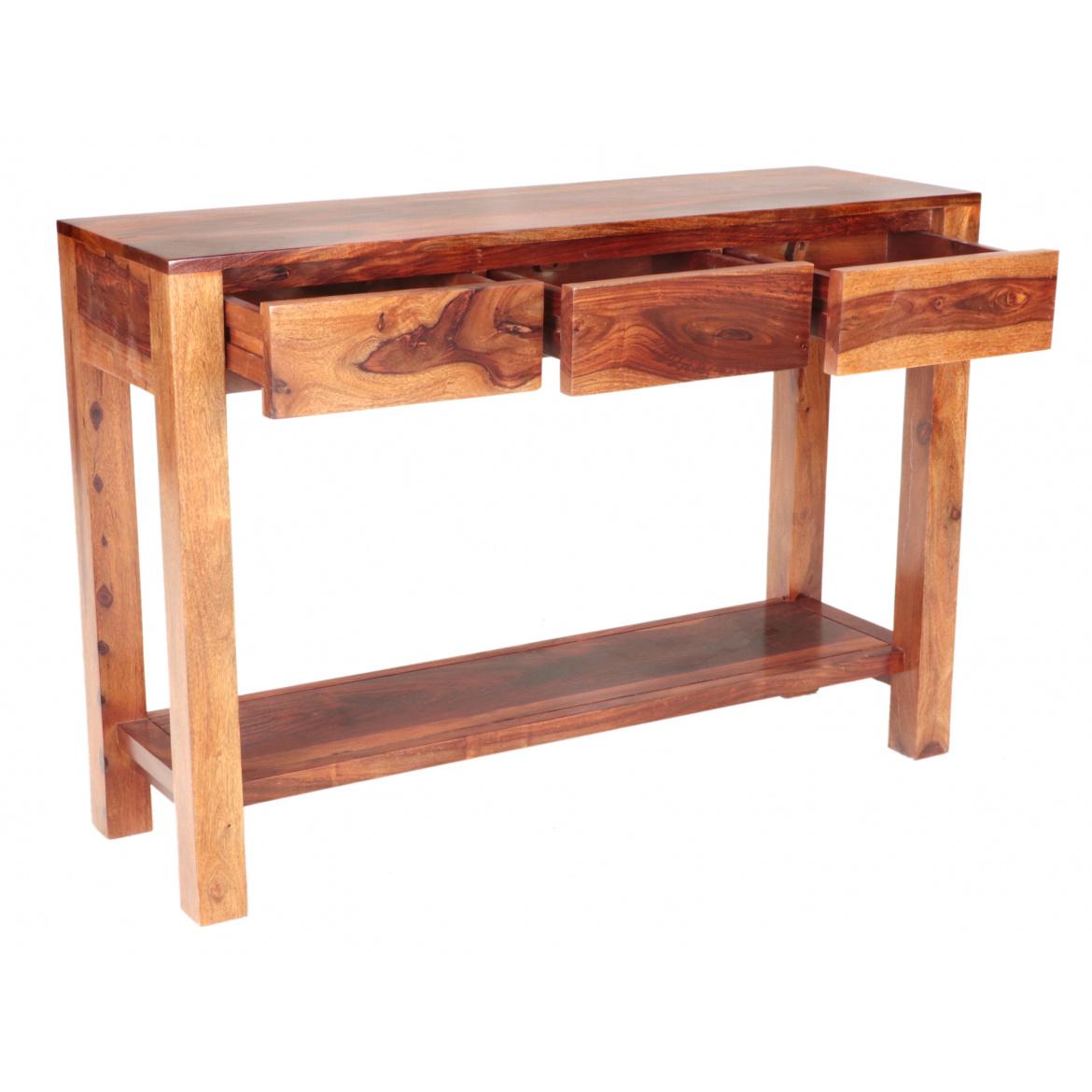 Der Konsolentisch Gani verfügt über 3 Schubladen. Er ist aus hochwertigem massivem Palisanderholz gefertigt.