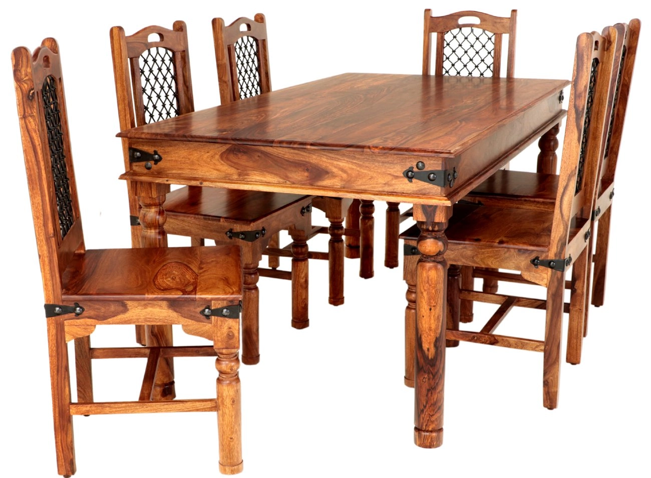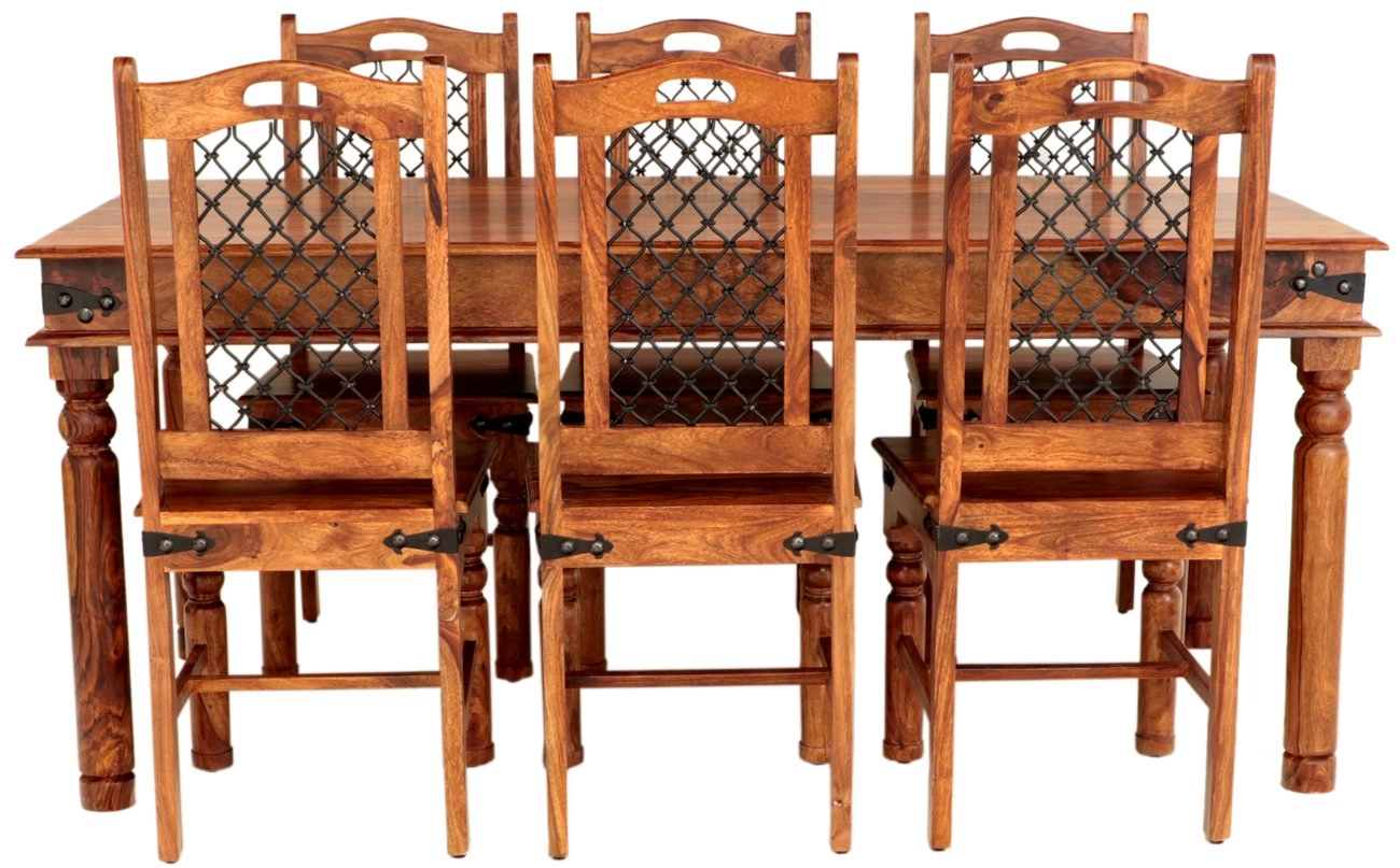 Do vaší jídelny vnášíme eleganci a vytříbený styl s naším jídelním setem pro 6 osob z masivu palisandr. Tento exkluzivní nábytek z kolekce JALI je ukázkou vynikajícího řemeslného zpracování a vysoké kvality, kterou nabízí pouze masivní dřevo z Indie. Jídelní set z masivu je ideální volbou, pokud hledáte kombinaci estetické krásy a praktické funkčnosti. Masivní palisandr se pyšní svou pevností a odolností, což zaručuje dlouhou životnost, a s dozvukem exotického původu přináší do vašeho domova atmosféru vzdálených krajů.