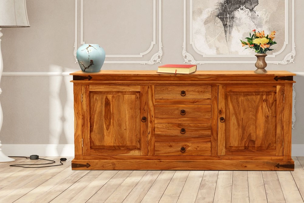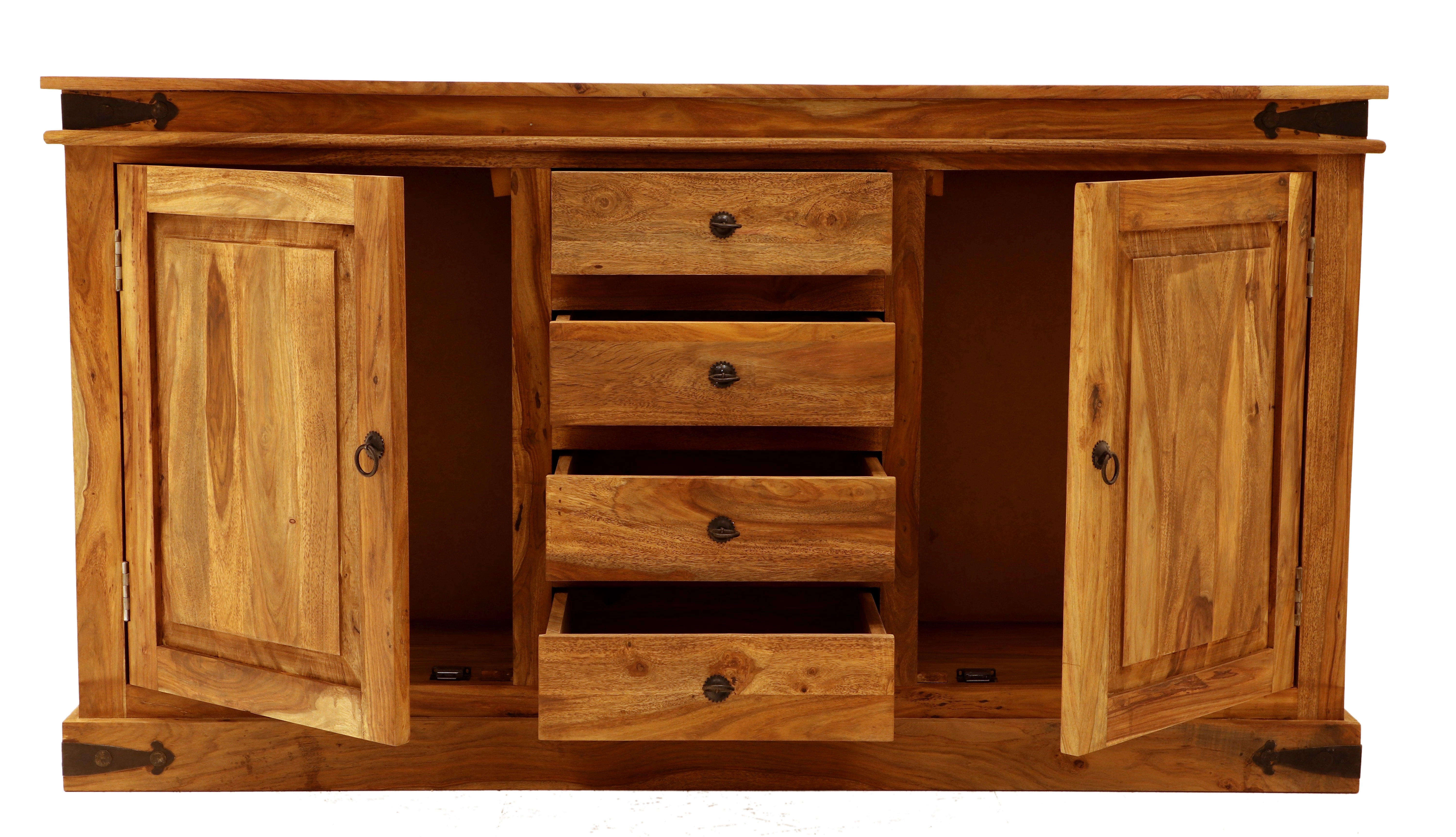 Představujeme vám nádhernou kuchyňskou komodu z masivu palisandr, která se stane skvělým doplňkem vaší domácnosti. Tato komoda, pocházející z Indie, je vyrobena z kvalitního palisandrového dřeva a vyznačuje se skutečně masivní konstrukcí. S šířkou 160 cm, hloubkou 45 cm a výškou 90 cm je ideálním řešením pro ty, kteří hledají spojení funkčnosti a estetiky v kuchyni. Naše kuchyňská komoda nabízí čtyři prostorné zásuvky a dvoje dvířka, které poskytnou dostatek úložného prostoru pro kuchyňské potřeby, jako jsou nádobí, příbory či kuchyňské pomůcky.