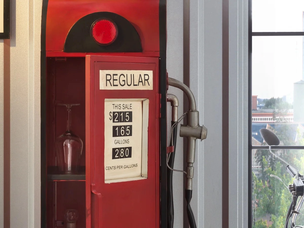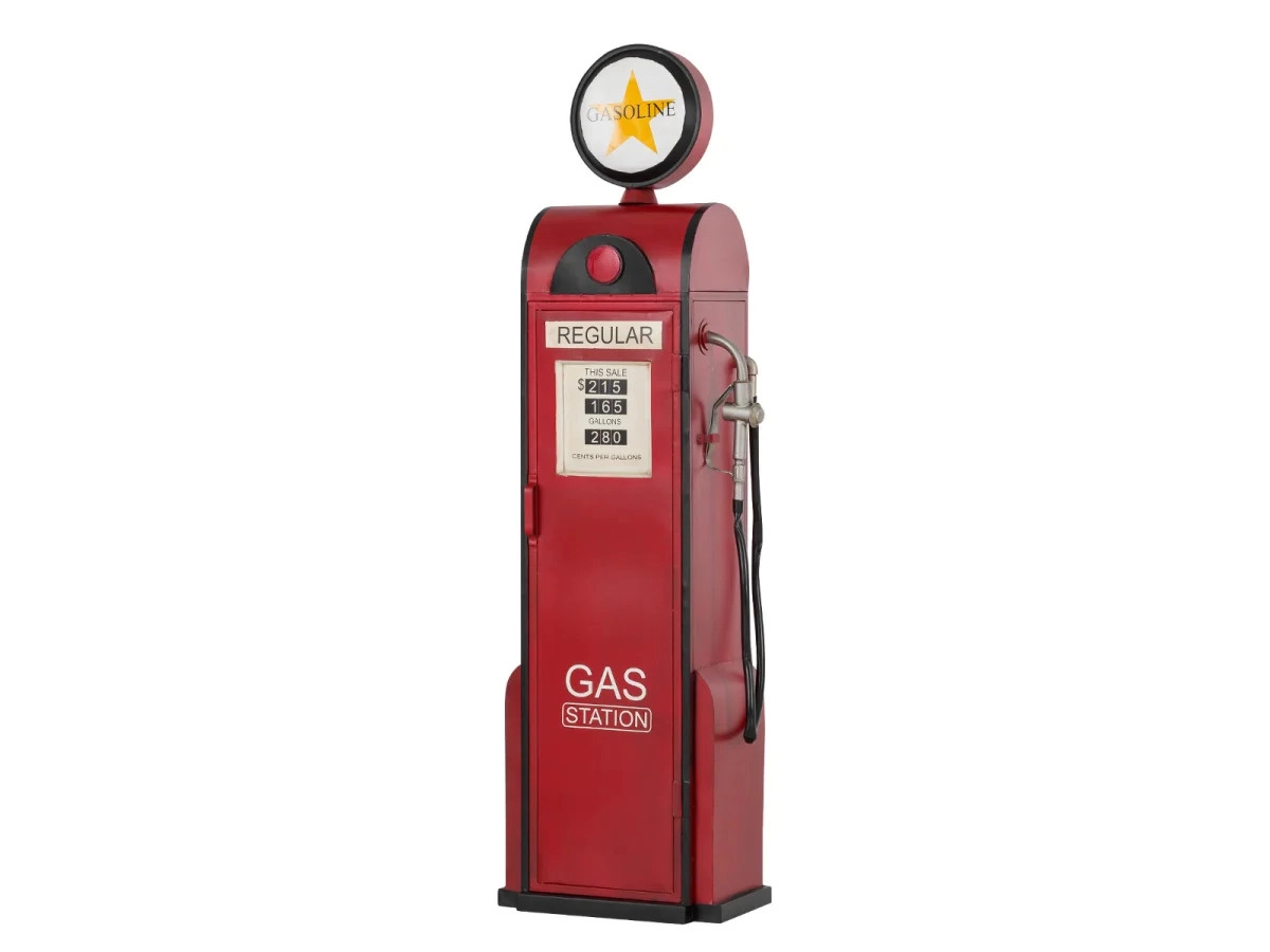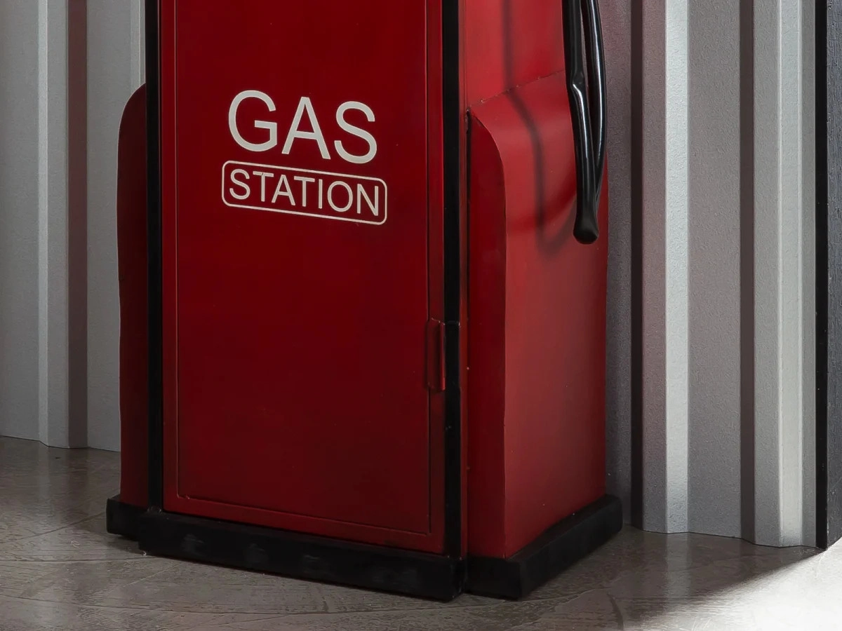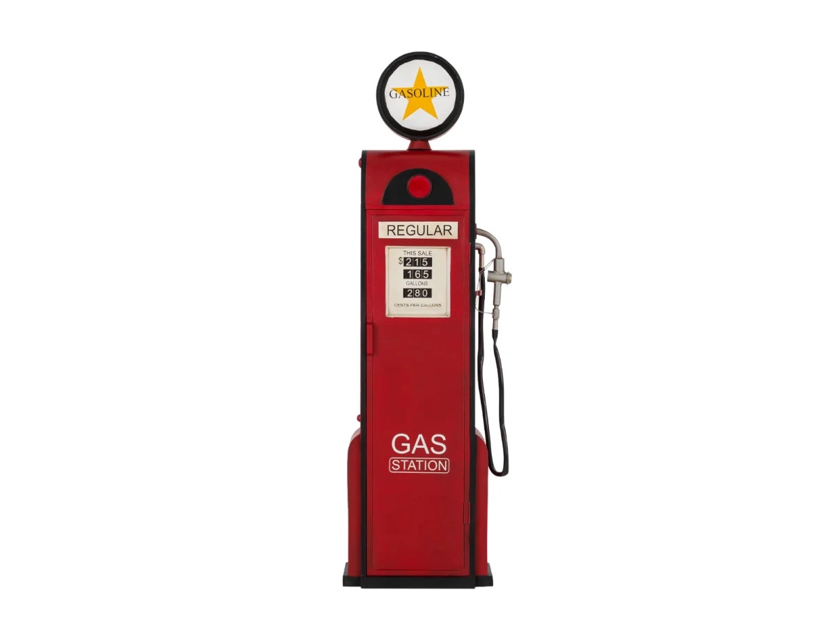Objednejte si tuto unikátní lakovanou barovou polici ve tvaru plynového čerpadla, která dodá šmrnc každé jídelně či vinotéce. Kovová konstrukce v sytě červeném odstínu s rozměry 50×33×195 cm je nejen praktická, ale stane se i stylovým doplňkem vašeho interiéru.