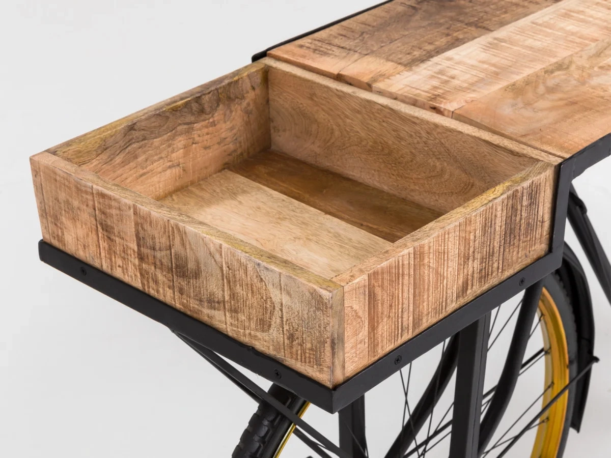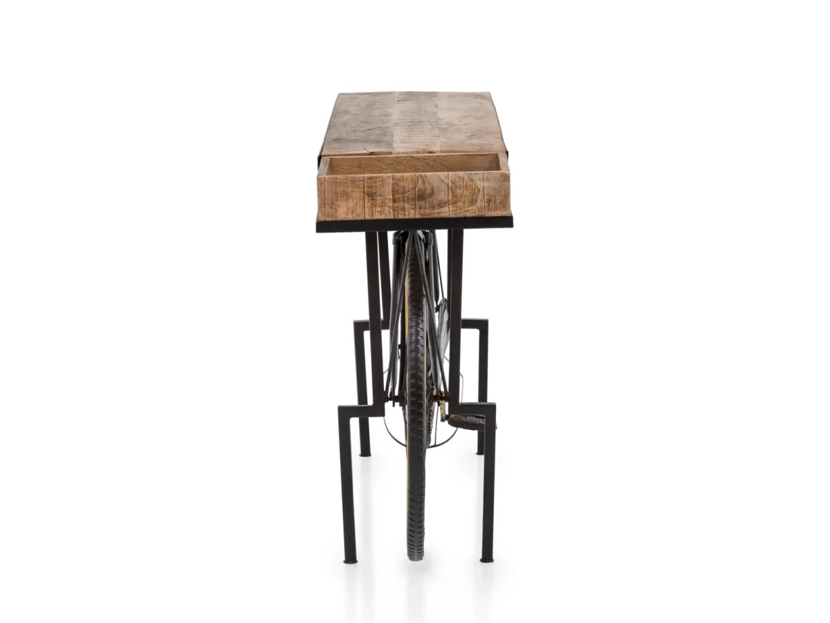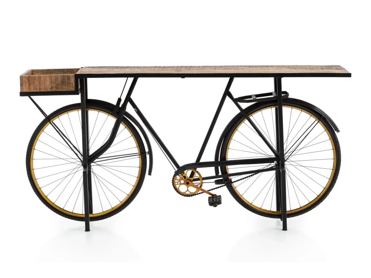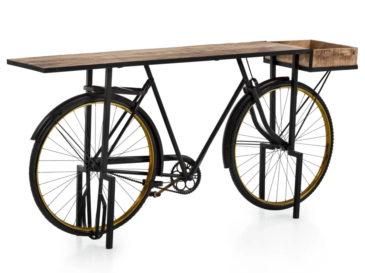 Eleganter und moderner Konsolentisch Bike, aus Metall gefertigt und mit schwarzem Lack versehen, ist das ideale Möbelstück, um Ihrem Wohnzimmer Pfiff zu verleihen. Mit den Abmessungen 185×45×90 cm bietet er ausreichend Platz für Ihre Dekorationen und täglichen Bedarfsgegenstände.