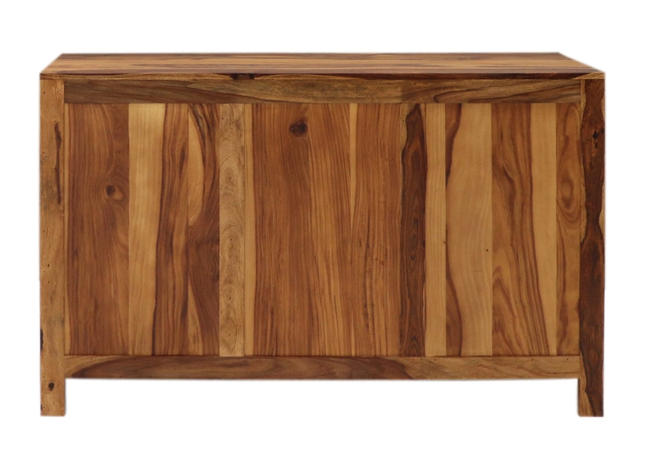 Luxuriöse Kommode aus Palisanderholz mit den Abmessungen 140x90x45 cm ist ein perfektes Beispiel für Eleganz und Funktionalität. Dieses Meisterwerk indischer Handwerkskunst wird nicht nur Ihren Vorgang verschönern, sondern bietet auch maximalen Platznutzen durch drei geräumige Schubladen und drei Türen. Die Kommode aus massivem Palisanderholz garantiert Langlebigkeit und Widerstandsfähigkeit, die den täglichen Gebrauch problemlos übersteht. Das exklusive Design wird durch die natürliche Holzmaserung verfeinert, die jedem Stück eine einzigartige Note verleiht. Diese luxuriöse Kommode ist die ideale Wahl für alle, die nicht nur ein praktisches Stück Möbel, sondern auch ein ästhetisches Erlebnis suchen.