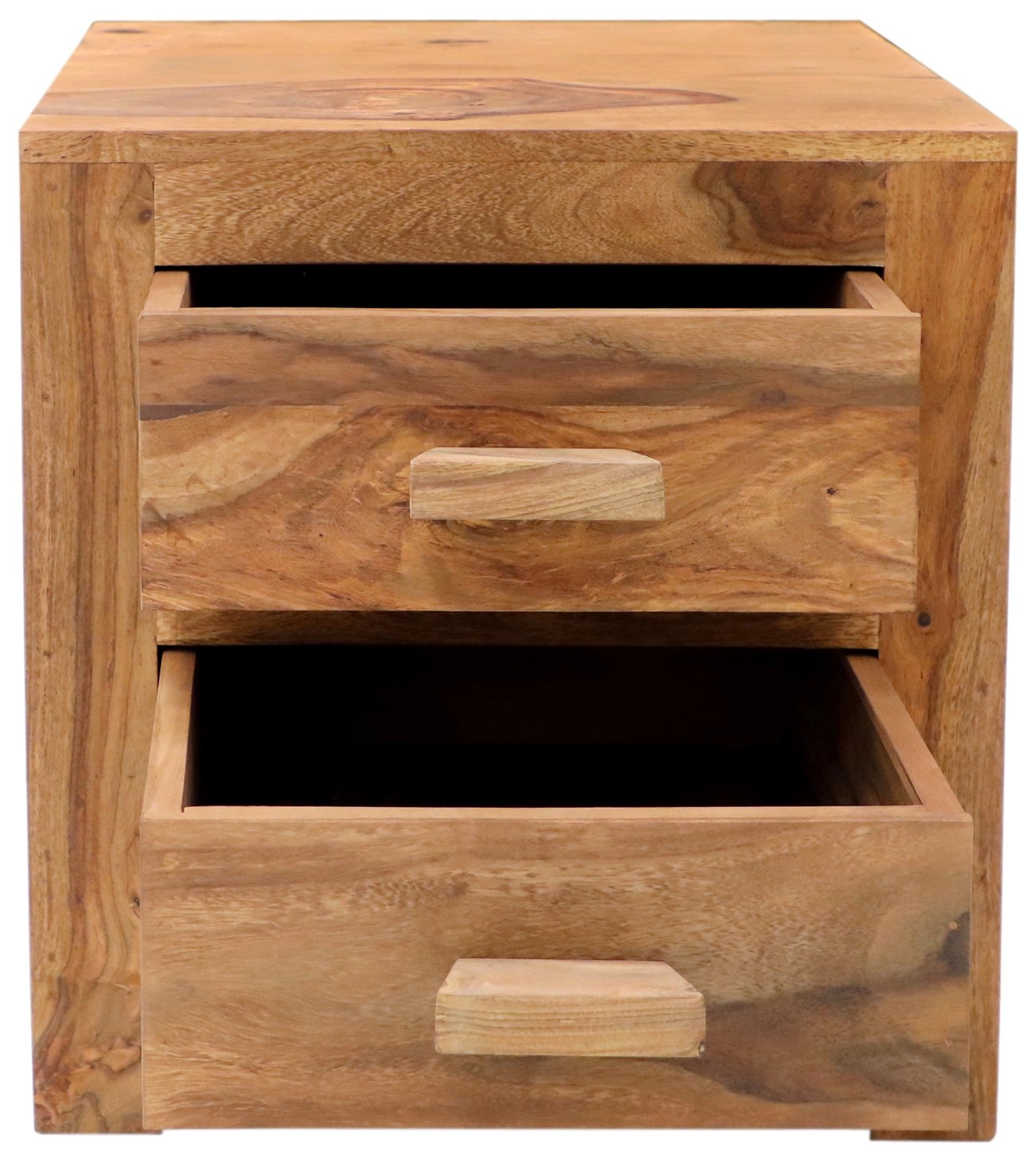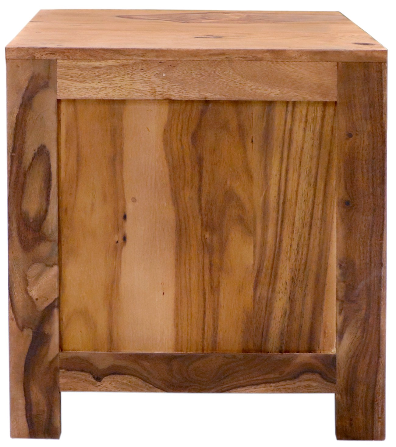 Vybaven dvěma praktickými zásuvkami, tento luxusní noční stolek poskytuje dostatek úložného prostoru pro vaše nezbytnosti, ať už jde o noční krém, knihu nebo osobní doplňky. Estetika a funkčnost jdou ruku v ruce s tímto výjimečným kouskem, který se stane srdcem vaší ložnice. Díky svému původu z Indie a řemeslnému zpracování každý stolek vypráví svůj vlastní příběh a dodává vašemu interiéru dotek exotiky a originality.