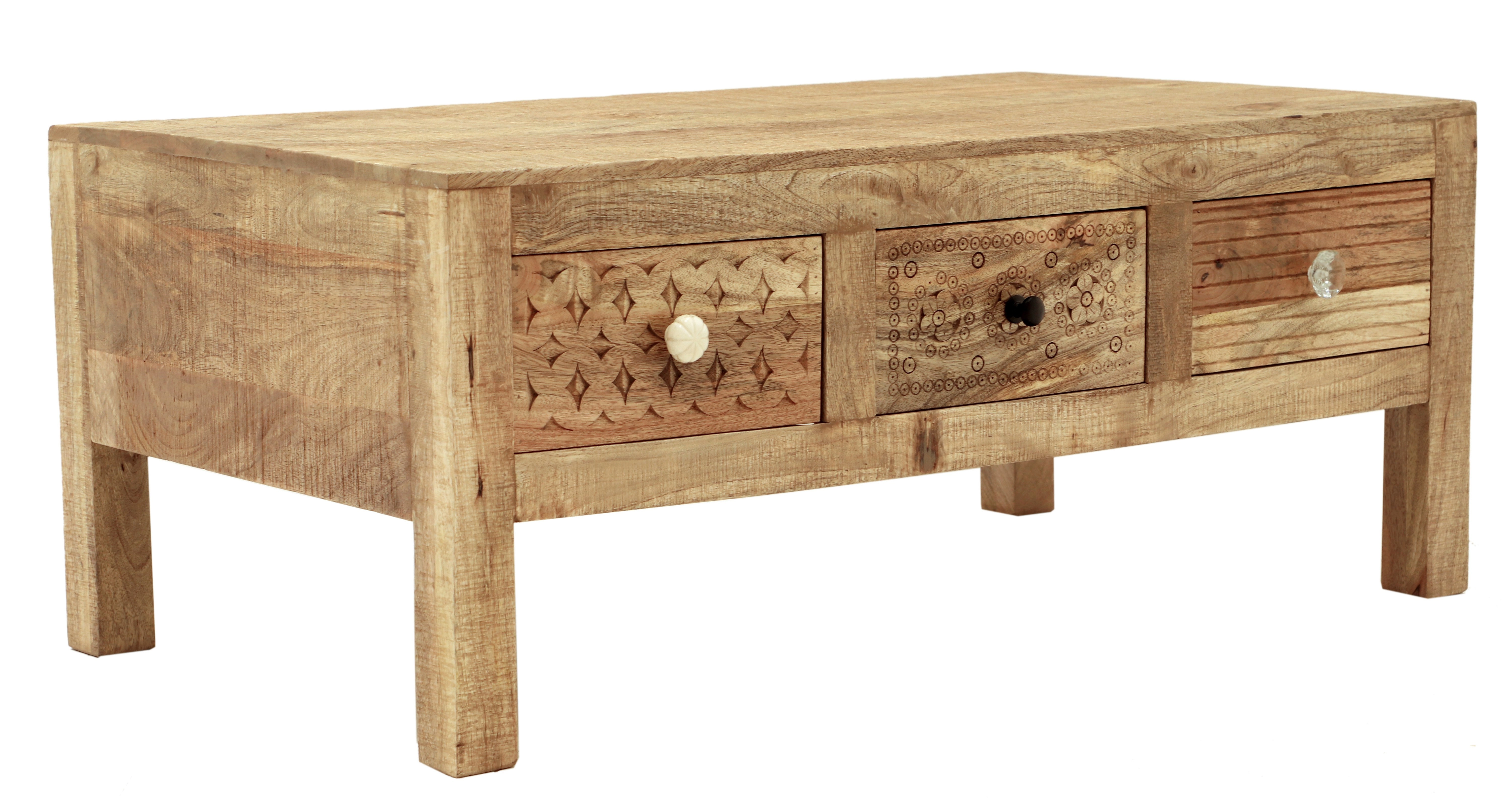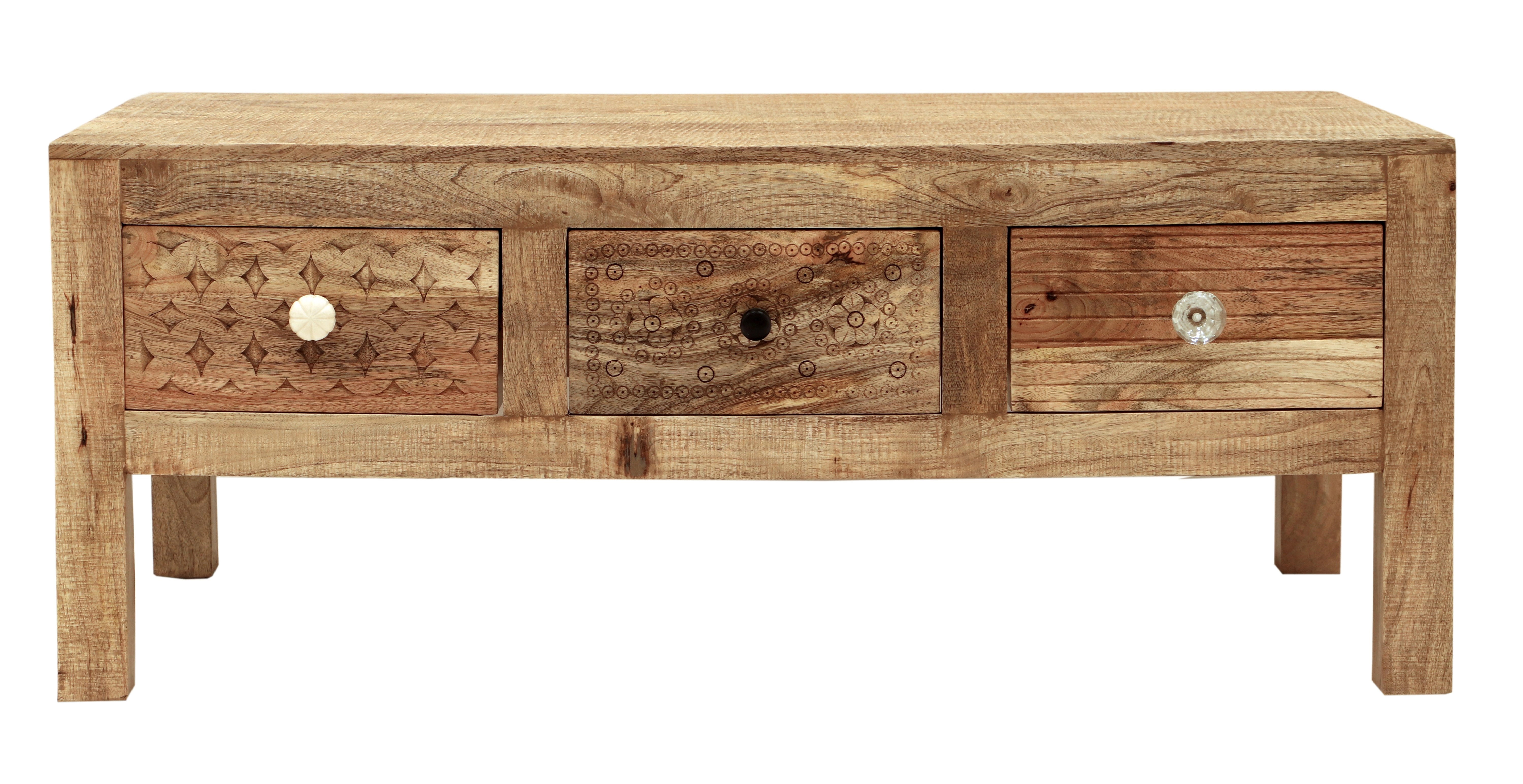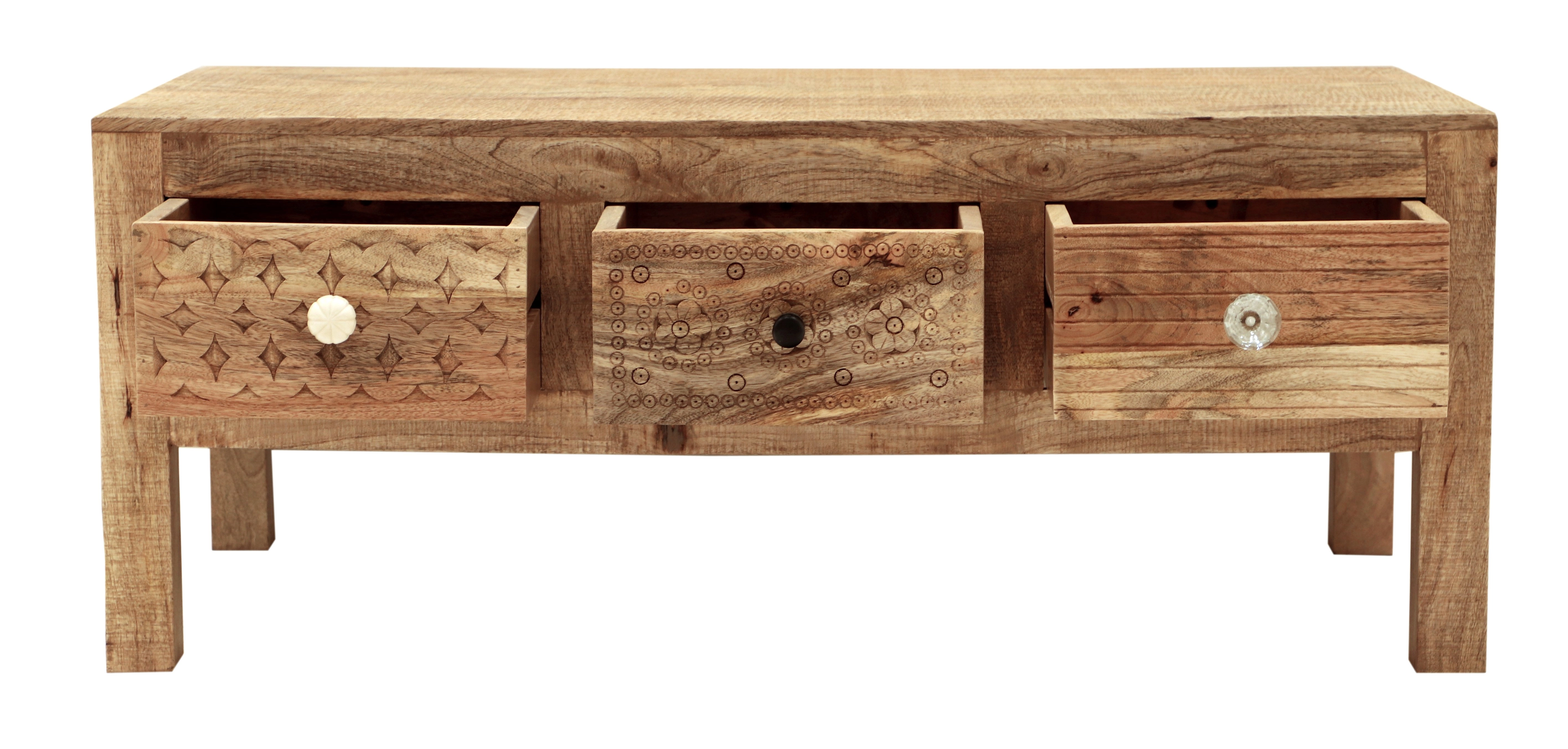 Praktické tři zásuvky poskytují dostatek úložného prostoru pro dokumenty, kancelářské potřeby či jiné nezbytnosti. Díky použití masivního dřeva manga je tento konferenční stůl pevný a odolný, což zaručuje jeho dlouhou životnost. Masivní indický nábytek nejen okouzlí svým vzhledem, ale také svou funkčností a precizním zpracováním.