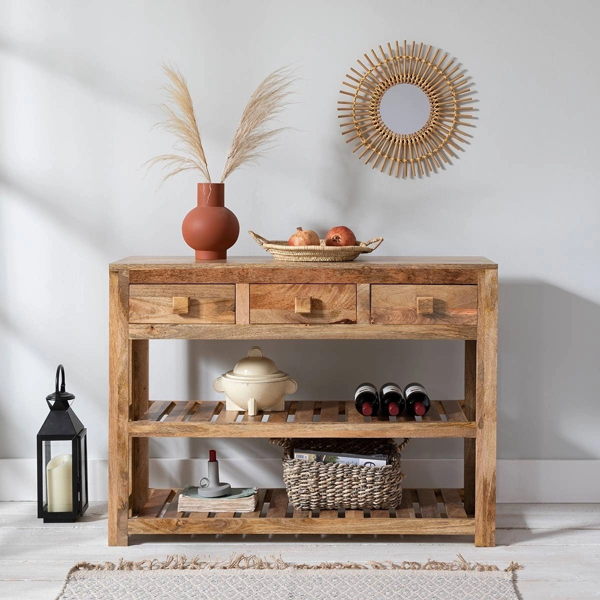 Jakmile si pořídíte tento konzolový stolek, často jej lidé doplňují i dalšími kusy nábytku ve stejném stylu. Oblíbené jsou například dřevěné police z manga, konferenční stolky z masivu, jídelní stoly, nebo robustní dřevěné komody. Tyto kousky navzájem ladí a vytvářejí harmonický celek plný exotického kouzla.