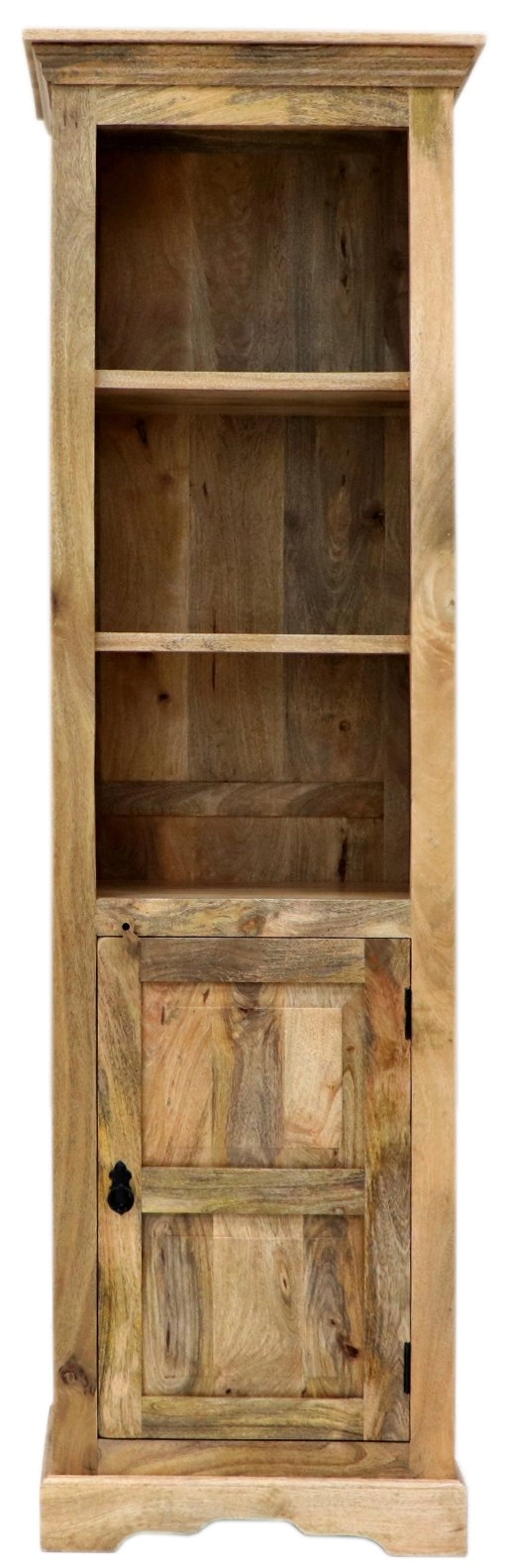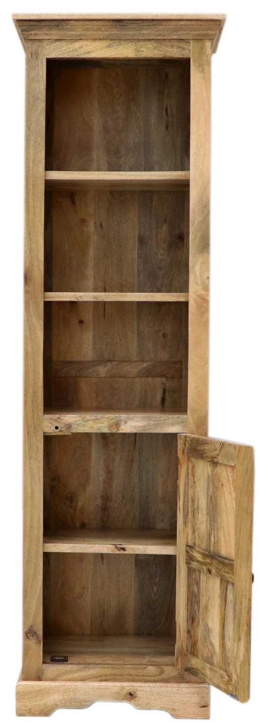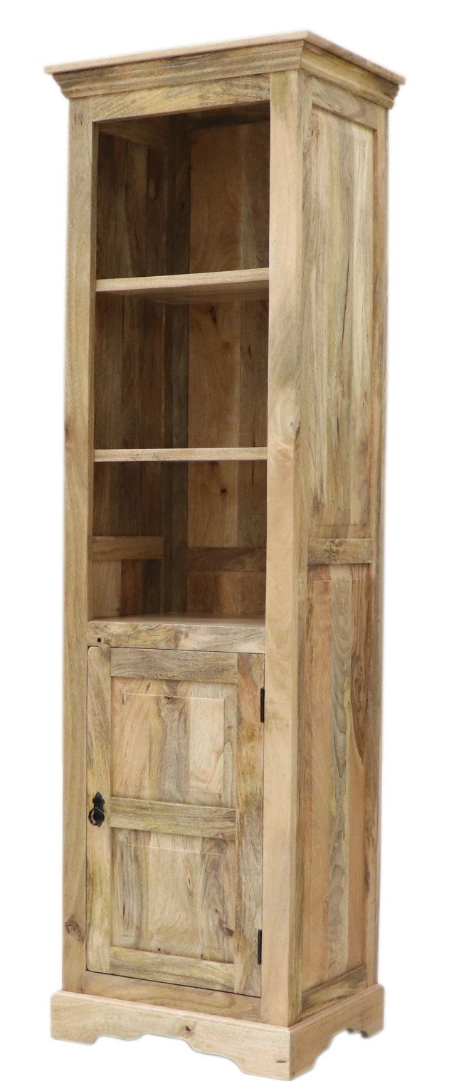 Naše knihovna o šířce 60 cm z masivu mango je ideálním řešením pro ty, kdo hledají jedinečný a zároveň funkční kousek nábytku pro svou domácí kancelář či obývací pokoj. Tato masivní knihovna vyrobená v Indii z vysoce kvalitního dřeva manga nabízí kombinaci estetického vzhledu a praktičnosti. S rozměry 60x200x45 cm poskytuje dostatečný úložný prostor v podobě tří otevřených polic a dvou polic, které se ukrývají za elegantními skříňovými dvířky. Přirozený vzhled dřeva umožňuje knize a dekorativním předmětům vyniknout a snadno zapadne do jakéhokoliv interiéru. Otevřené knihovny z masivu jsou v dnešní době oblíbenou volbou pro mnoho domácností, které chtějí kombinovat funkčnost s prvotřídním designem.