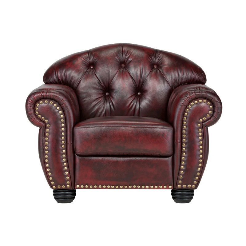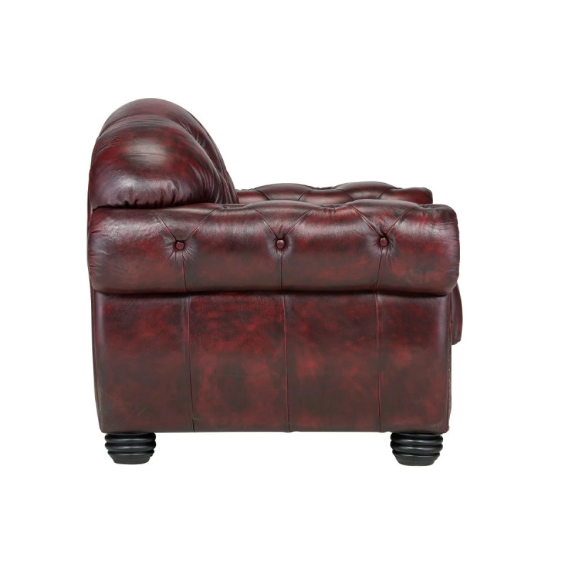 Ponořte se do elegance a nadčasovosti s masivním křeslem Chesterfield Hereford, které přináší do vašeho interiéru nádech luxusu a sofistikovanosti. Jeho jedinečný design, inspirovaný klasickými anglickými křesly, se skvěle hodí do různých typů prostorů – od moderních obývacích pokojů po stylové kanceláře. Červená pravá kůže, z níž je křeslo vyrobeno, nejenom že přitahuje pozornost, ale také dodává atmosféru tepla a pohodlí. S rozměry 112 cm na šířku, 96 cm na hloubku a 94 cm na výšku, nabízí dostatek prostoru pro relaxaci a opření se po náročném dni. Každý detail, od prošívání po elegantní zakřivení opěradla, byl pečlivě zpracován, aby zaručil nejen estetický dojem, ale také dlouhou životnost.