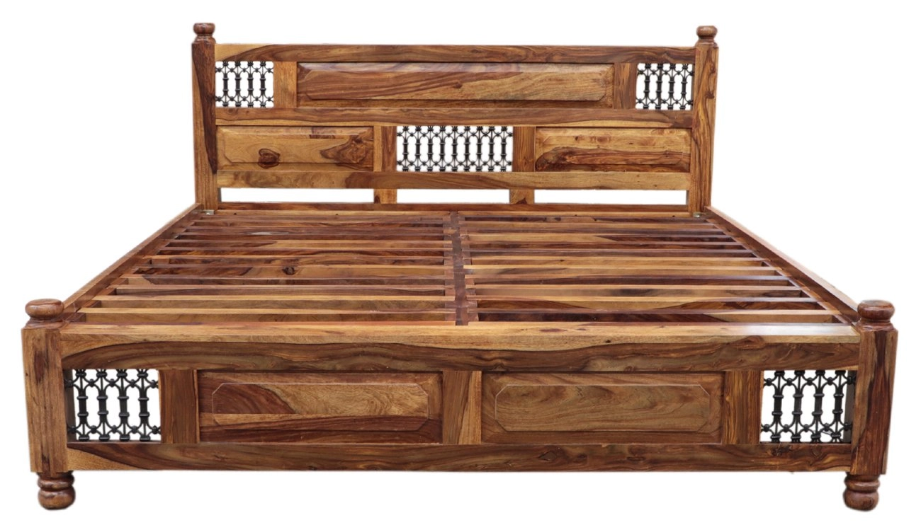 Indický nábytek je známý svým exotickým designem a trvanlivostí, což z něj činí investici na dlouhé roky. K masiv posteli je poskytován laťový rošt zdarma, a je určena pro matrace o rozměrech 160x200 cm.