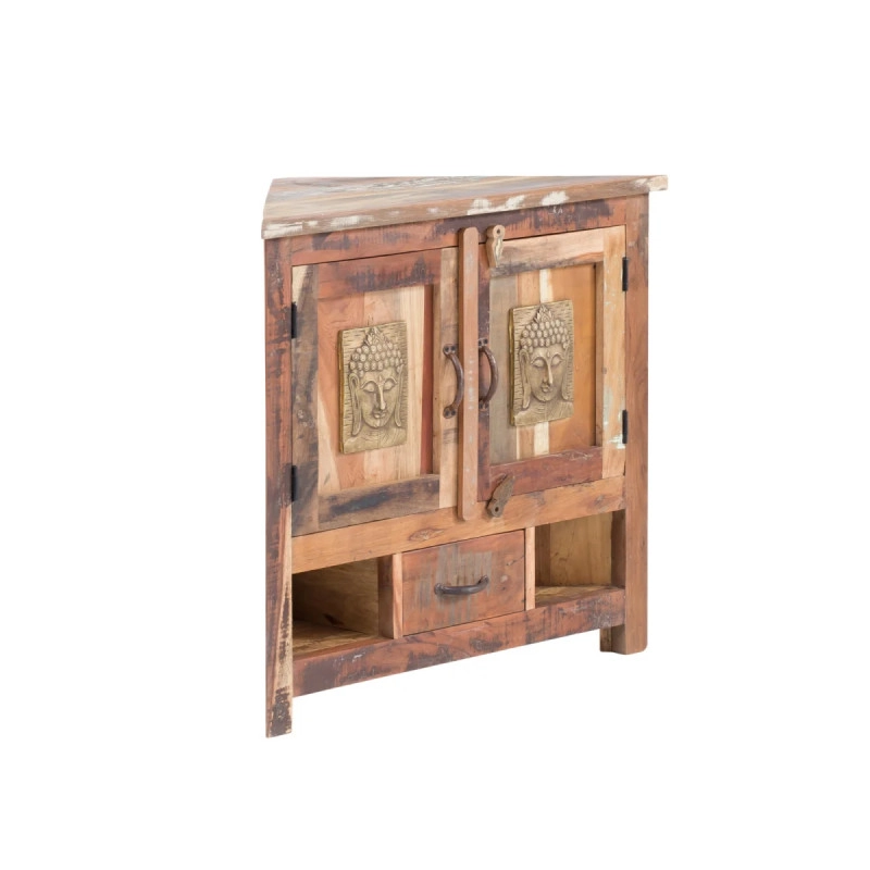 Masivní koupelnová rohová sestava Sumana z recyklovaného dřeva přináší do vaší koupelny spojení elegance, funkčnosti a ekologické odpovědnosti. Její unikátní design, který je skvělým příkladem moderního skandinávského stylu, se skvěle hodí do jakéhokoli interiéru. Tato sestava je vyrobena z pečlivě vybraného recyklovaného tvrdého dřeva, což zaručuje nejen vysokou kvalitu zpracování, ale také jedinečný vzhled s charakterem. Lakovaný povrch dodává kusu lesk a ochranu, čímž zajišťuje jeho dlouhou životnost a snadnou údržbu. Díky svému rohovému tvaru efektivně využijete i malé prostory, zatímco elegantní barvy a přírodní textury dřeva vnesou do vaší koupelny pocit útulnosti a harmonie.