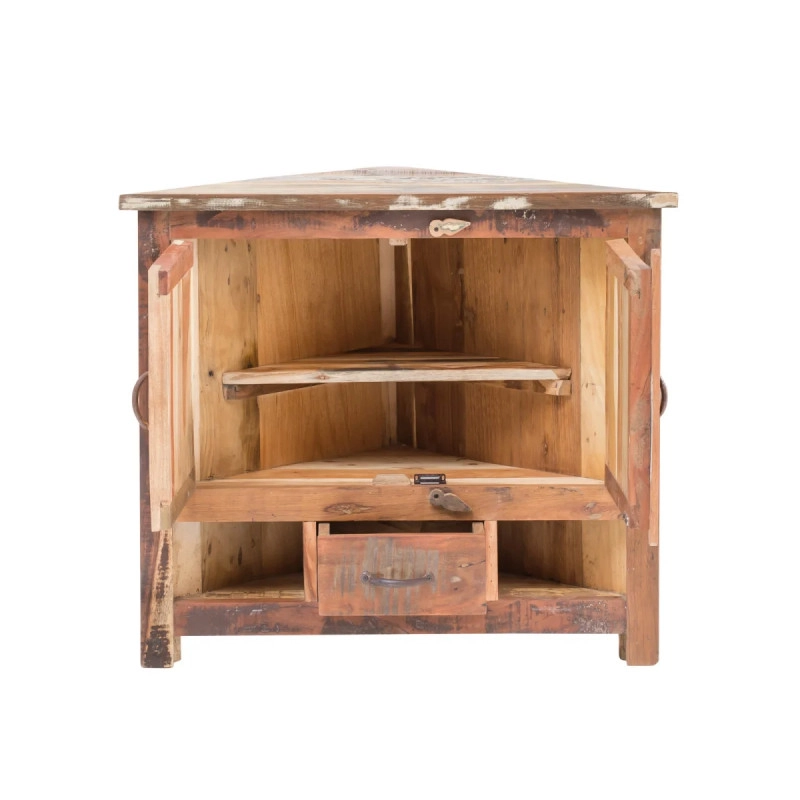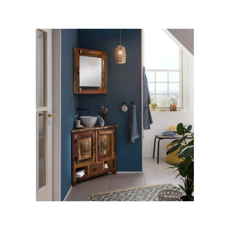 Zpříjemněte si každodenní rituály s koupelnovou rohovou sestavou Sumana, která je vyrobena z recyklovaného dřeva a ošetřena kvalitním lakem pro dlouhou životnost a snadnou údržbu. Tento šikovný kousek nábytku skvěle využije každý roh vaší koupelny a dodá jí rustikální, ale moderní vzhled.