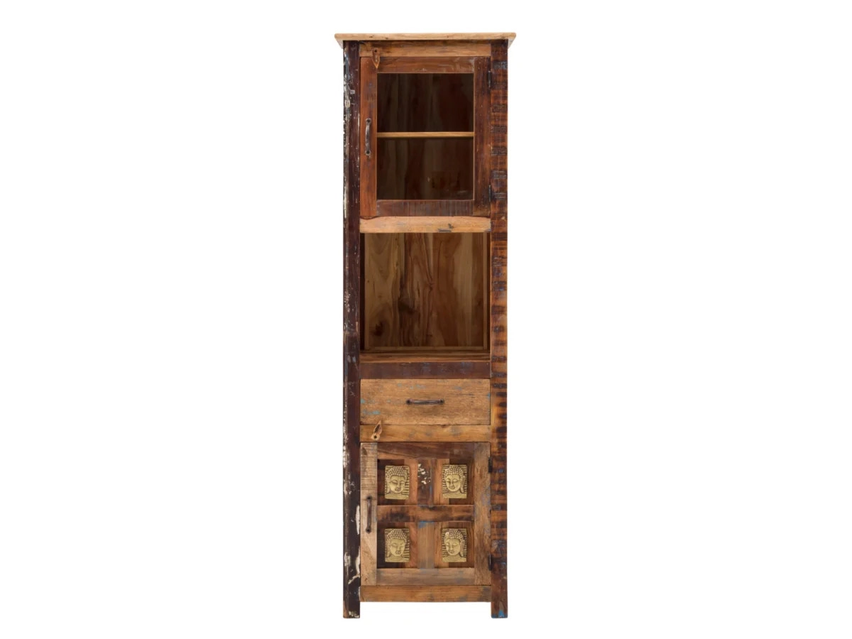 Objevte eleganci a praktičnost s vysokou koupelnovou skříňkou Sumana z recyklovaného dřeva. Tento stylový kus nábytku v hnědé barvě, s rozměry 50×40×180 cm a lakovaným povrchem, nabízí dostatek úložného prostoru a přinese do vaší koupelny teplý, přírodní vzhled.