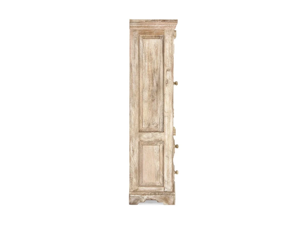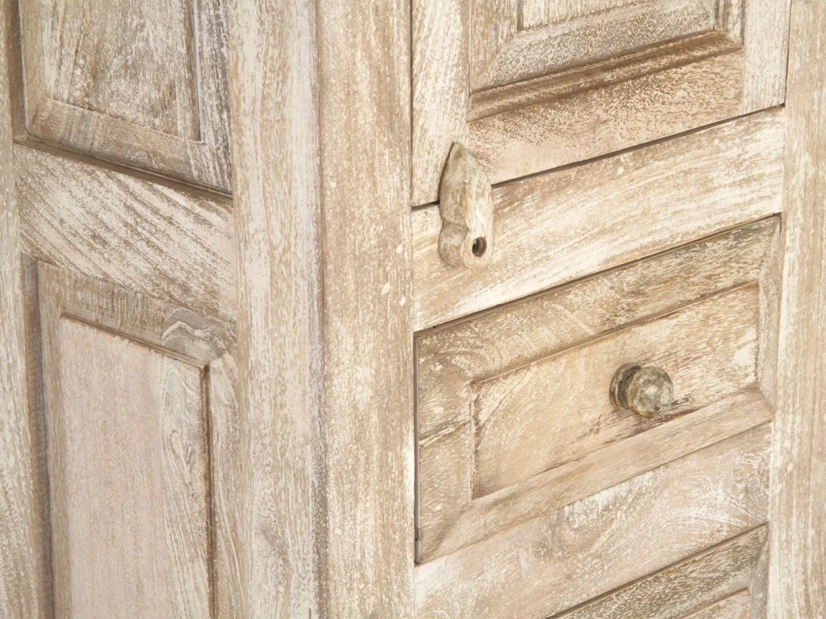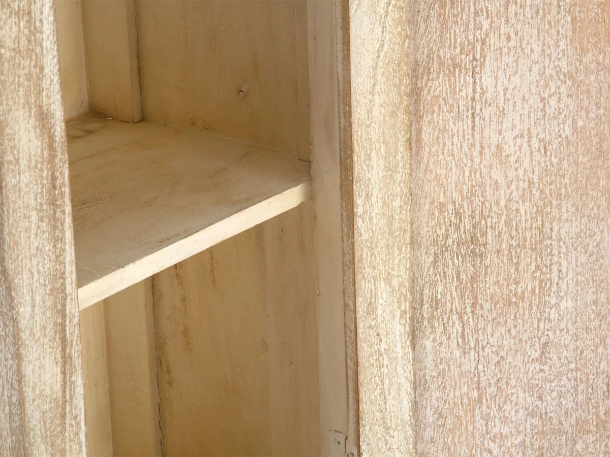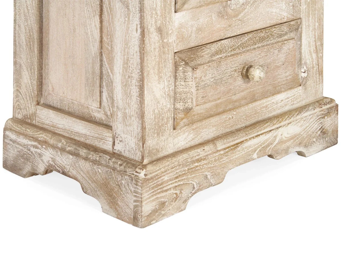 Masivní vysoká komoda do koupelny Patina z lakovaného mangového dřeva v přírodní barvě dodá vaší koupelně šmrnc i praktičnost. S rozměry 48×33×130 cm nabízí dostatek úložného prostoru, zatímco elegantní design zaujme na první pohled.