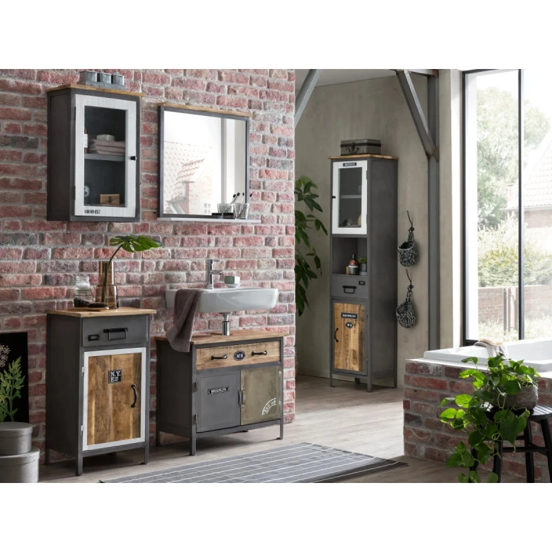 Hledáte do své koupelny kus nábytku, který nabídne nejen praktický úložný prostor, ale zároveň vnese do prostoru špetku přírodní elegance a industriálního šarmu? Masivní koupelňová skříňka Pinetown je přesně tím detailem, který promění běžnou místnost v místo s osobitým charakterem. Vyrobena z kvalitního mangového dřeva, které je proslulé svou pevností a jedinečnou kresbou, kombinuje tento model s kovovými prvky, jež dodávají celku moderní a zároveň robustní vzhled. Lakovaný povrch zajišťuje snadnou údržbu a ochranu proti vlhkosti, což je v koupelnovém prostředí nezbytností. Vícebarevné provedení přináší do interiéru hravost a hloubku, díky čemuž skříňka nejen plní funkci úložného prostoru, ale zároveň se stává estetickým akcentem.