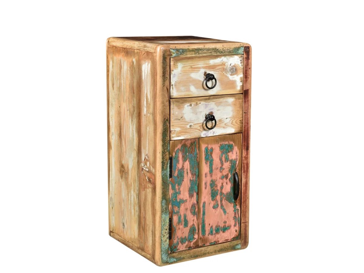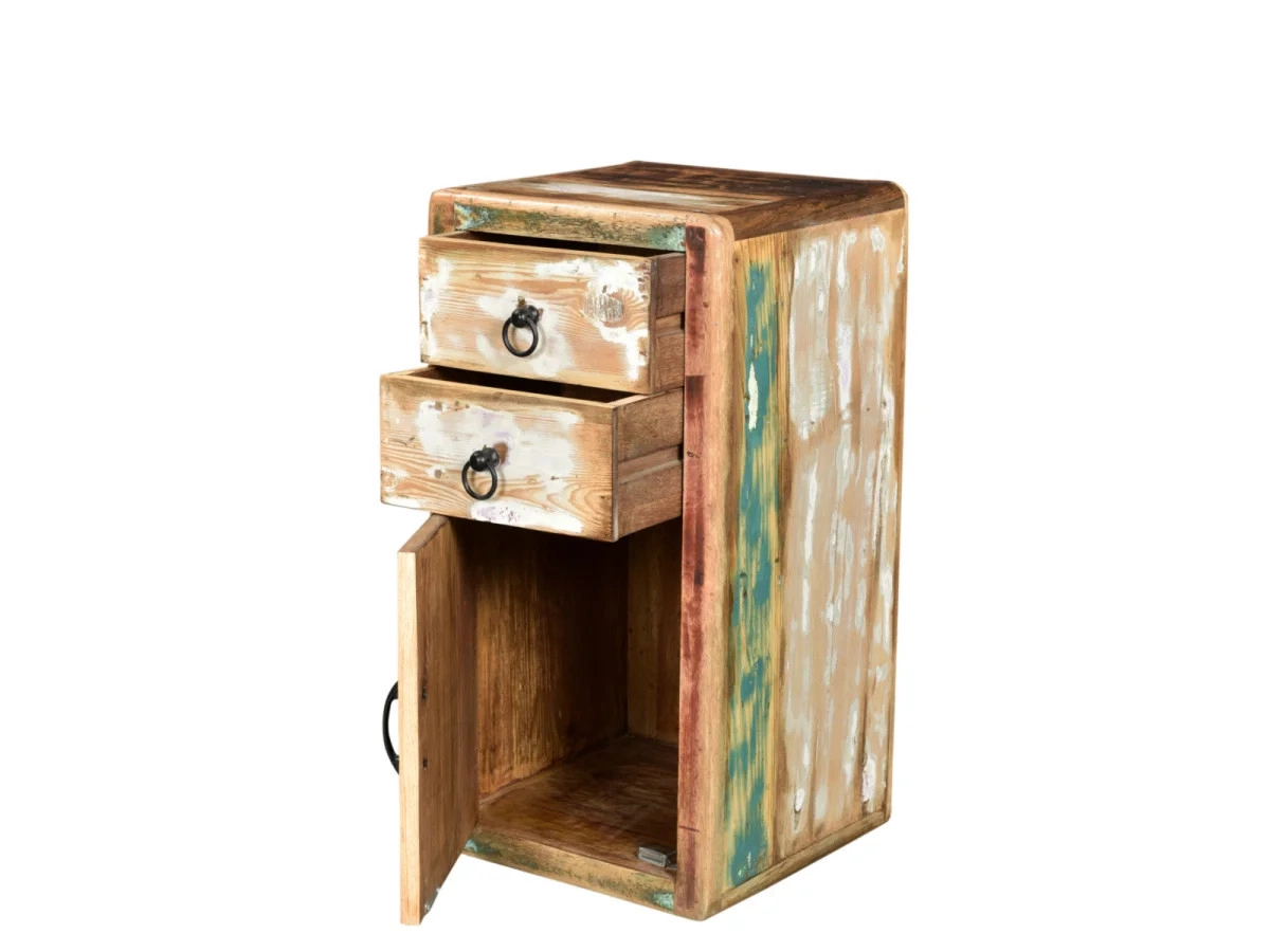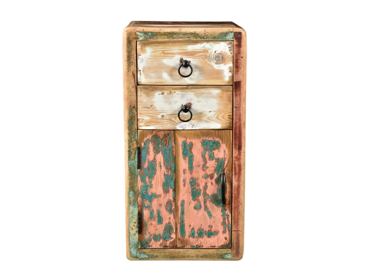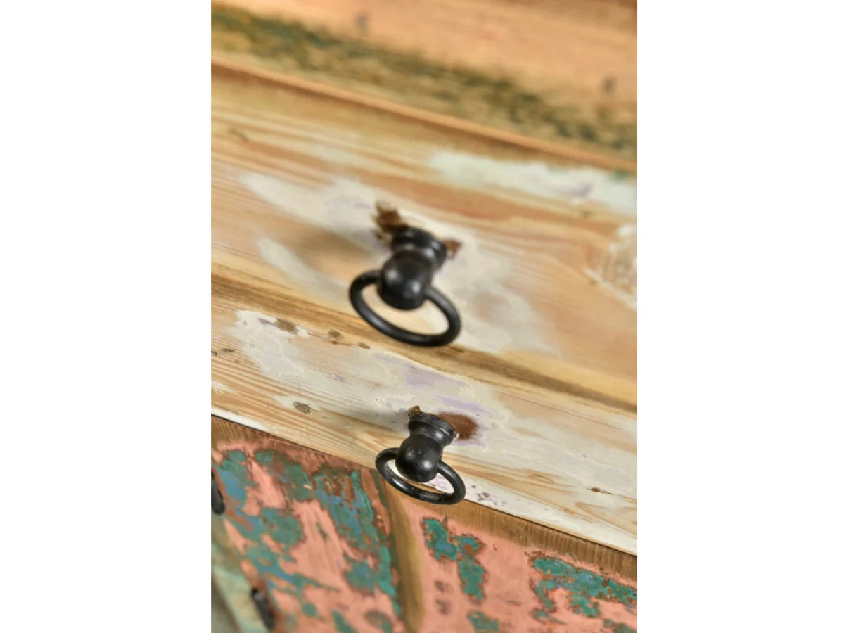 Přidejte šmrnc své koupelně s masivní spodní skříňkou Calcutta, vyrobenou z recyklovaného dřeva. Tento vícebarevný, lakovaný kousek o rozměrech 35×35×70 cm je nejen praktický, ale i stylový doplněk, který zaujme na první pohled.