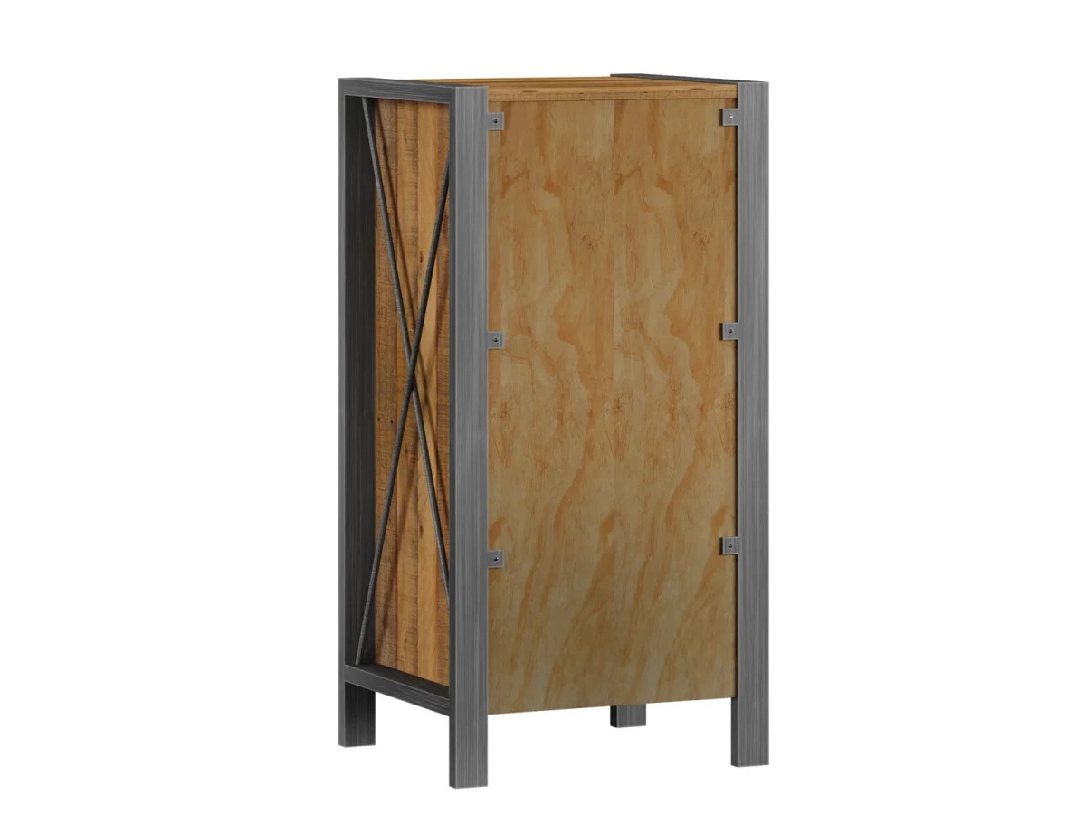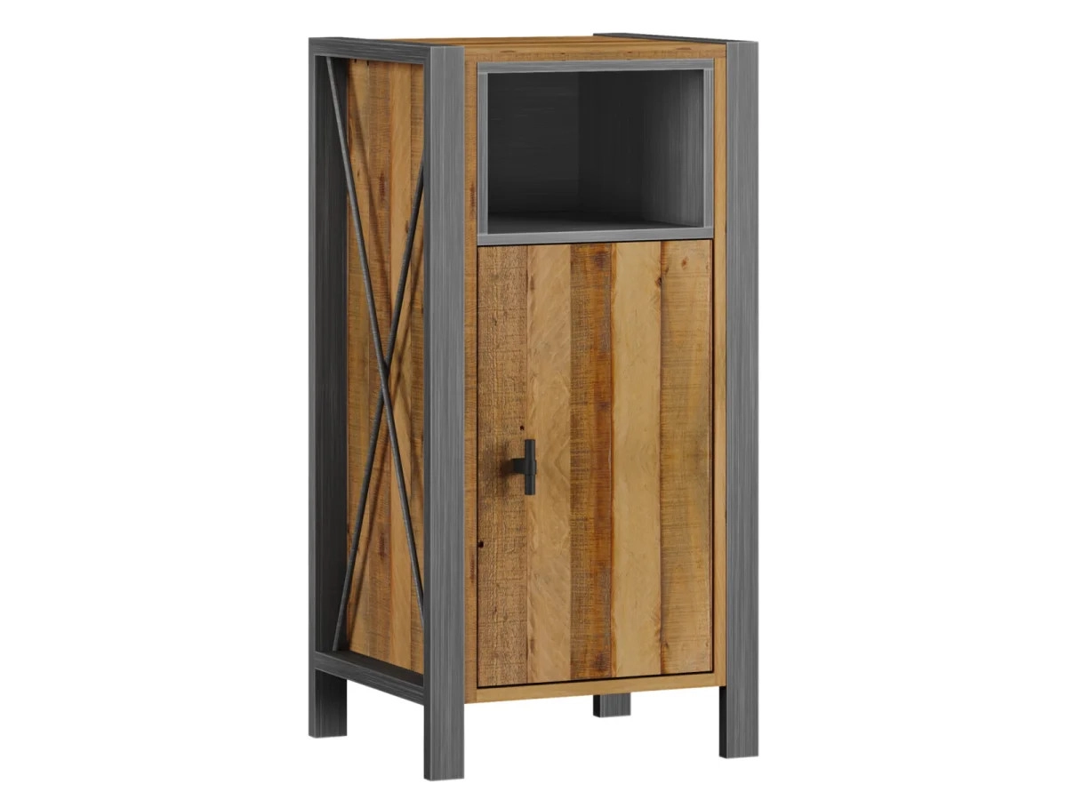 Masivní koupelnová spodní skříňka Detroit, vyrobená z recyklované borovice a kovu, je ideálním řešením pro stylovou a udržitelnou koupelnu. S lakovaným hnědým povrchem dodá vašemu prostoru teplý, přírodní vzhled a nabízí dostatek úložného prostoru díky svým kompaktním rozměrům 40 x 35 x 80 cm.