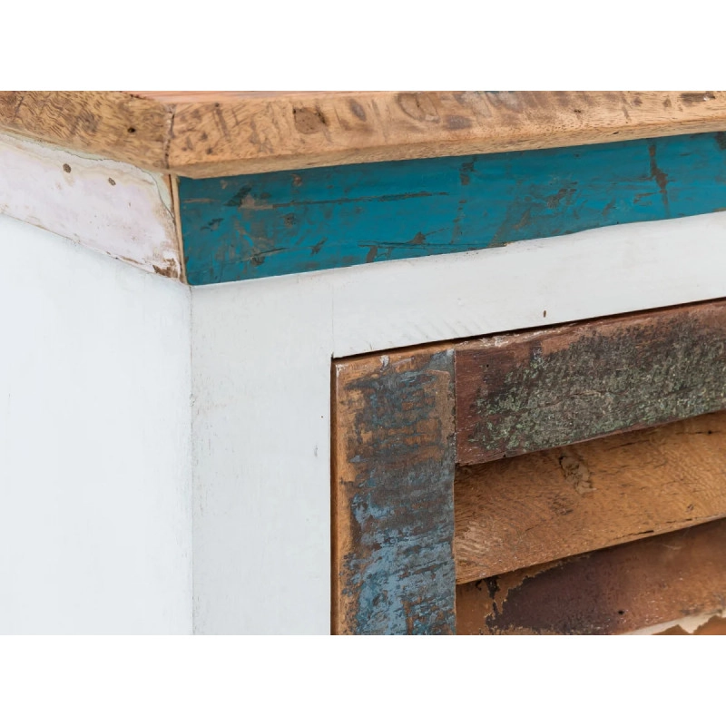 Máte rádi, když každý kousek nábytku ve vašem domově vypráví příběh? Masivní koupelnová nástěnná skříňka Perth, vyrobená z recyklovaného dřeva, je nejen šetrná k životnímu prostředí, ale i nápaditá ve svém designu. Každý kus dřeva byl pečlivě vybrán a zpracován, aby vznikl unikátní produkt s vlastní historií. Lakovaný povrch ve svěžích odstínech bílé a barevných detailů dodává skříňce moderní vzhled, zatímco zachovává její rustikální charakter. Tato kombinace činí skříňku Perth ideální volbou pro ty, kdo hledají originální a funkční doplněk do své koupelny.