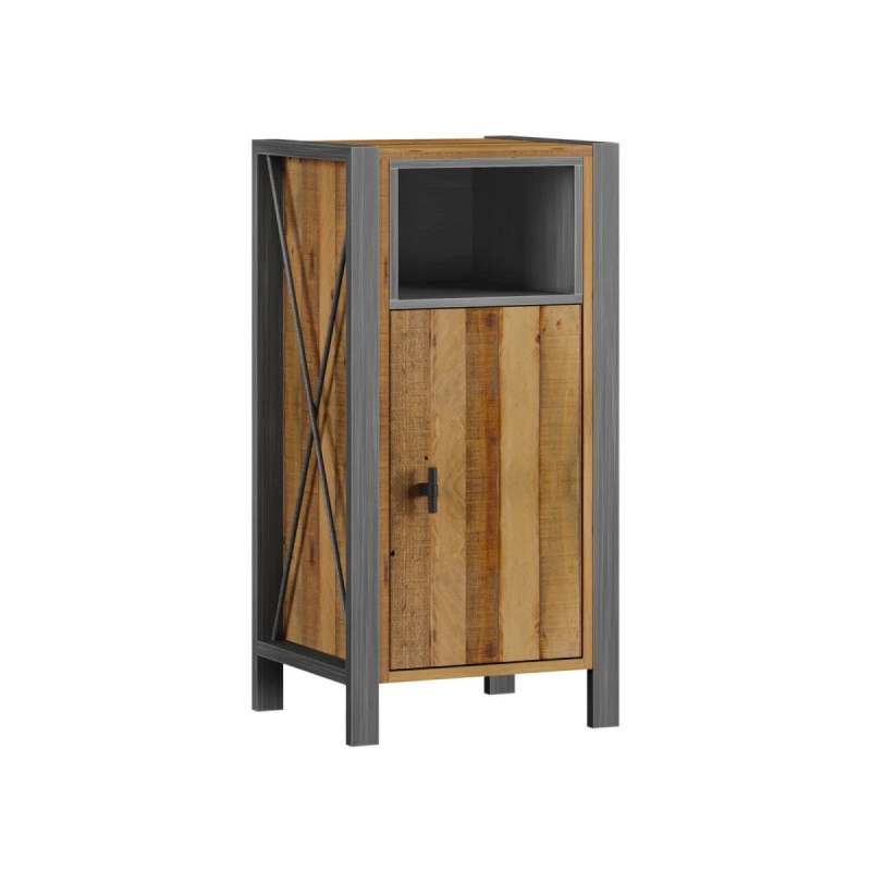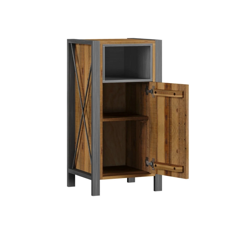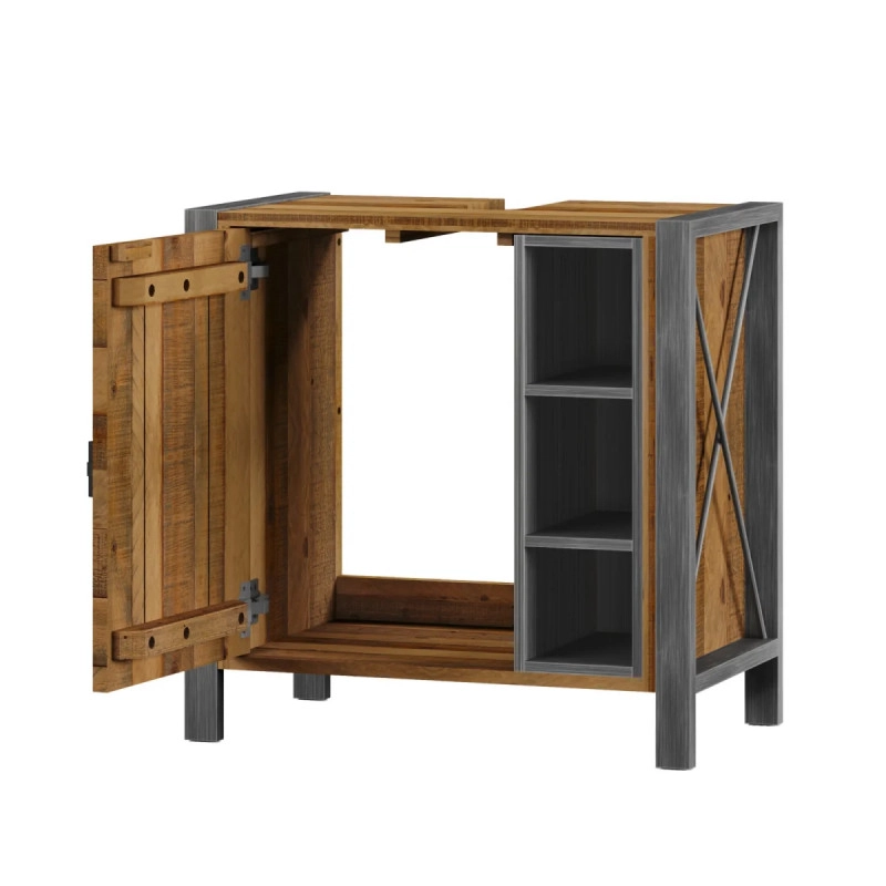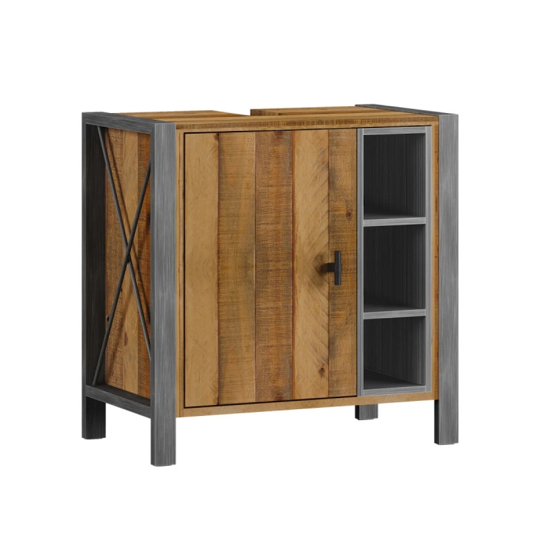 Každý detail této sestavy byl pečlivě zpracován tak, aby doplnil jak moderní, tak i tradičně zařízené interiéry. Masivní koupelnová sestava Detroit II není jen obyčejným úložným prostorem, ale stane se dominantním prvkem vaší koupelny, který upoutá pozornost každého, kdo ji navštíví. Spojení recyklovaného dřeva a kovu nejen že podtrhuje trend udržitelnosti, ale také přináší do koupelny kus přírody a robustnosti, který je v dnešní době velmi žádán.